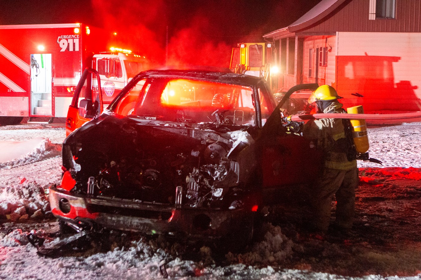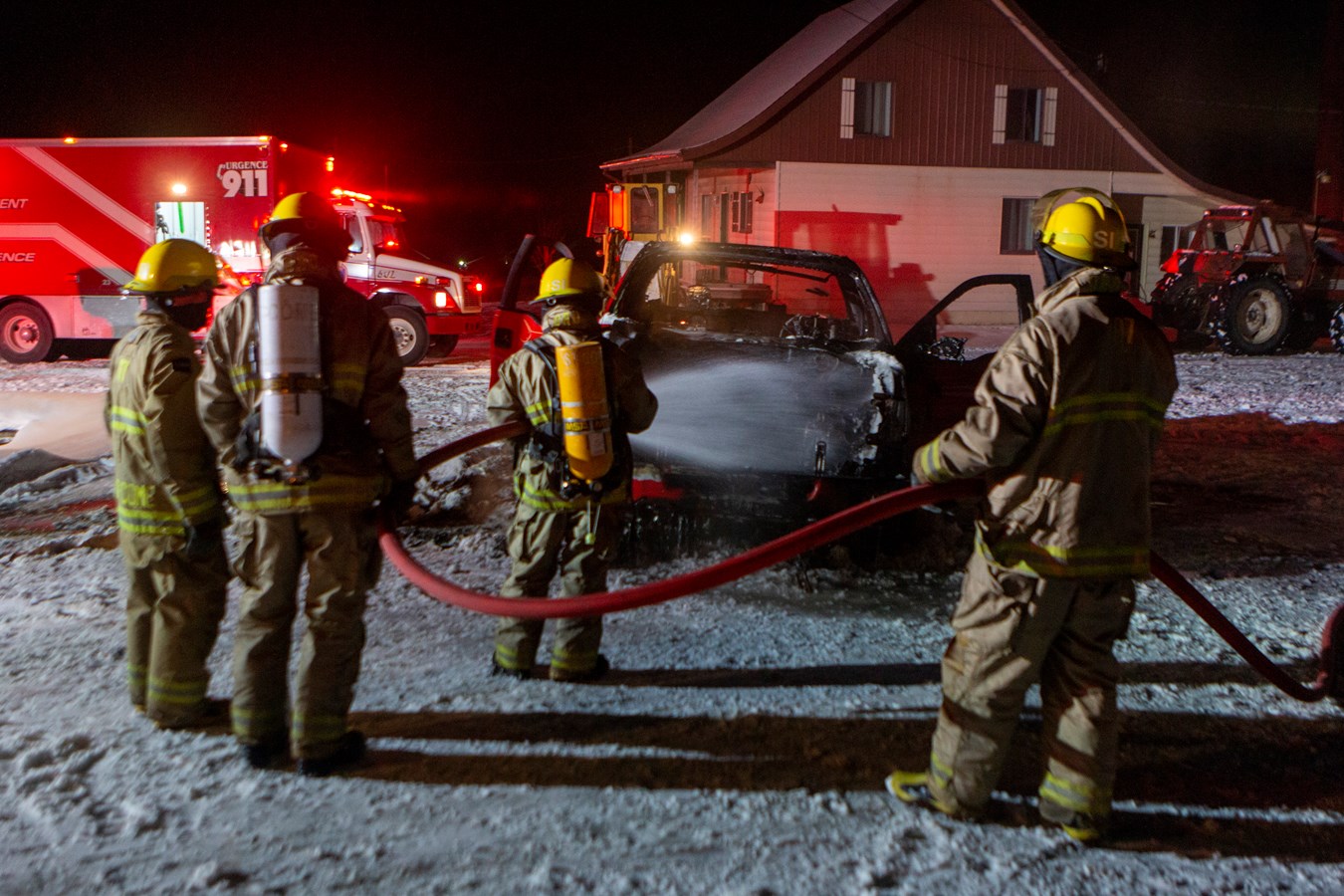 À l'arrivée des pompiers, le devant du véhicule était complètement enflammé. Ils sont donc intervenus.