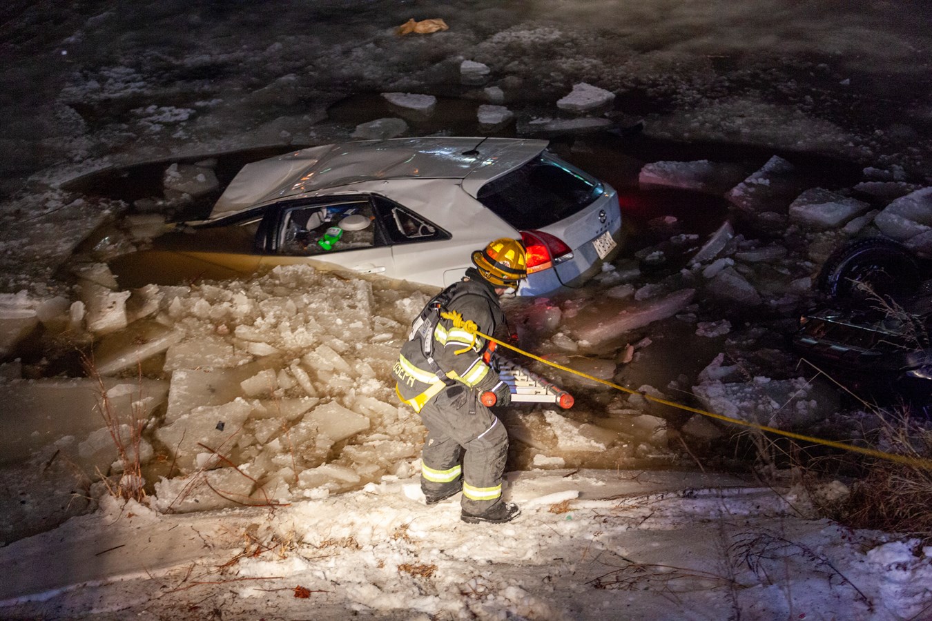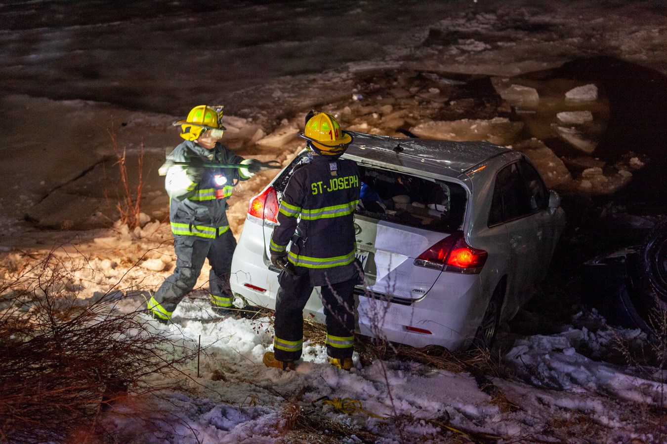 Selon l’agente de la Sûreté du Québec aux communications, le conducteur qui était sur l’avenue Lambert a perdu la maîtrise de son véhicule et a percuté une voiture stationnée. Suite à l’impact, ils se sont retrouvés dans la rivière.