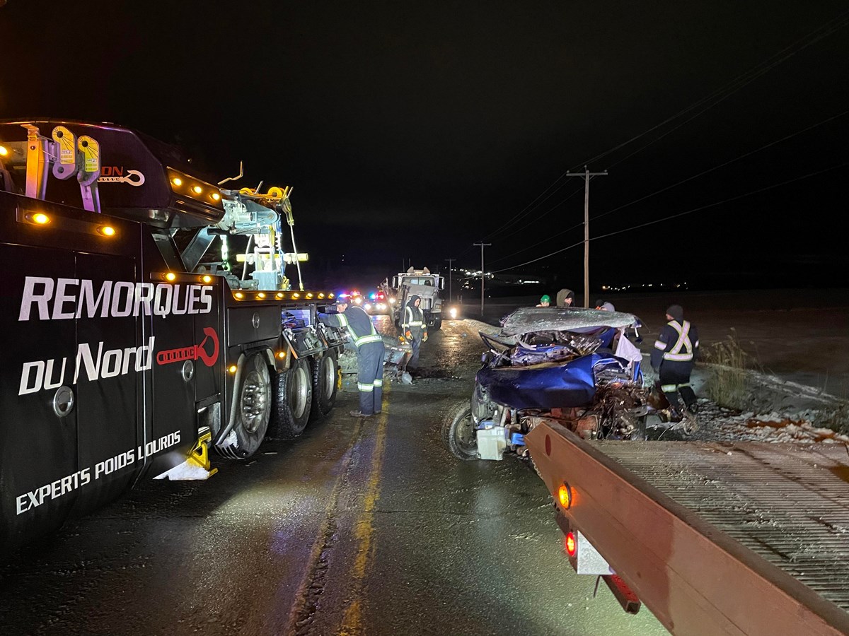 Un véhicule qui circulait en direction de Vallée-Jonction est entré en collision avec un chasse-neige qui roulait en sens inverse.