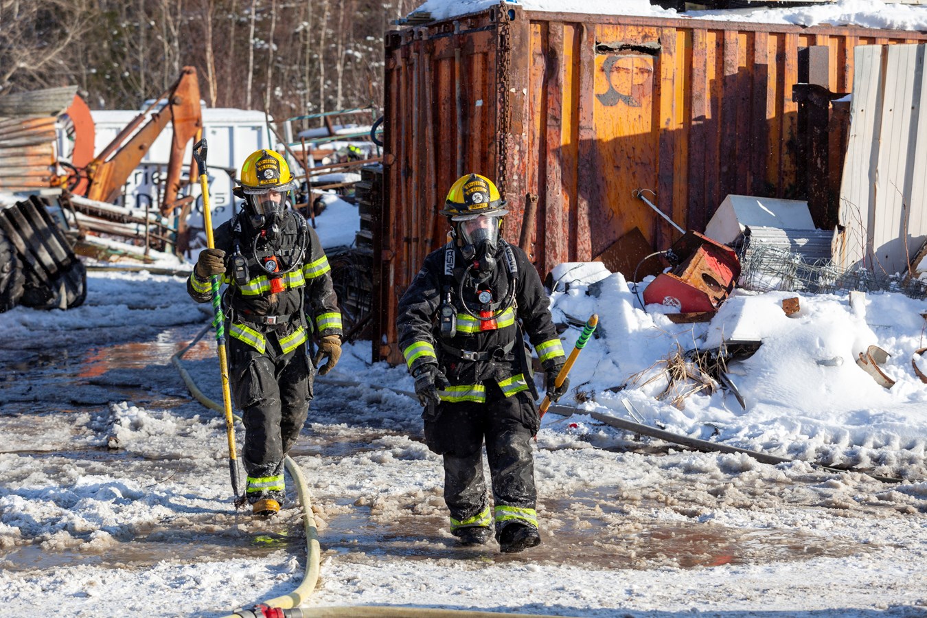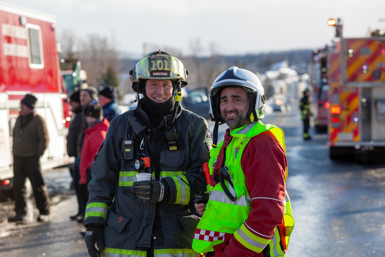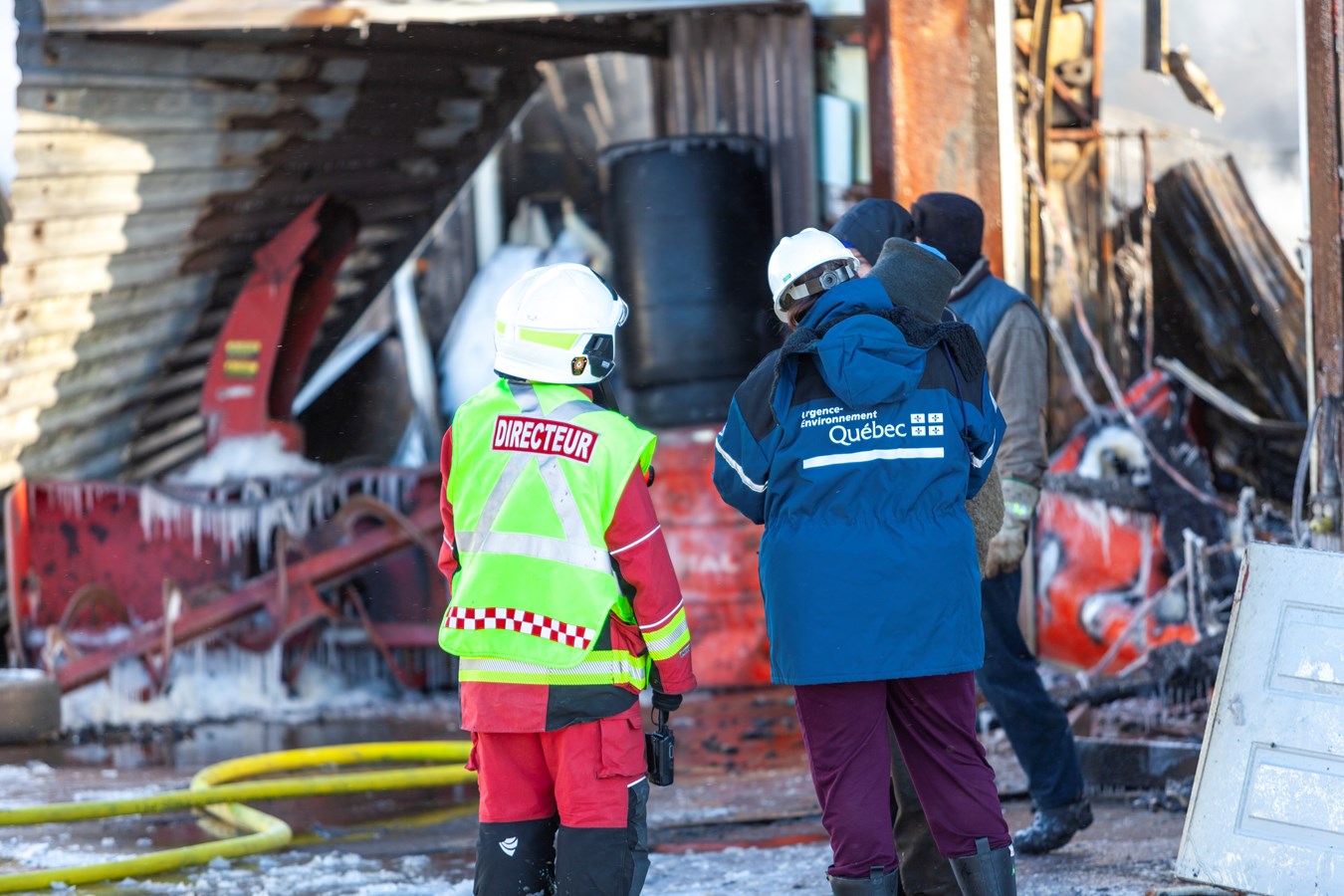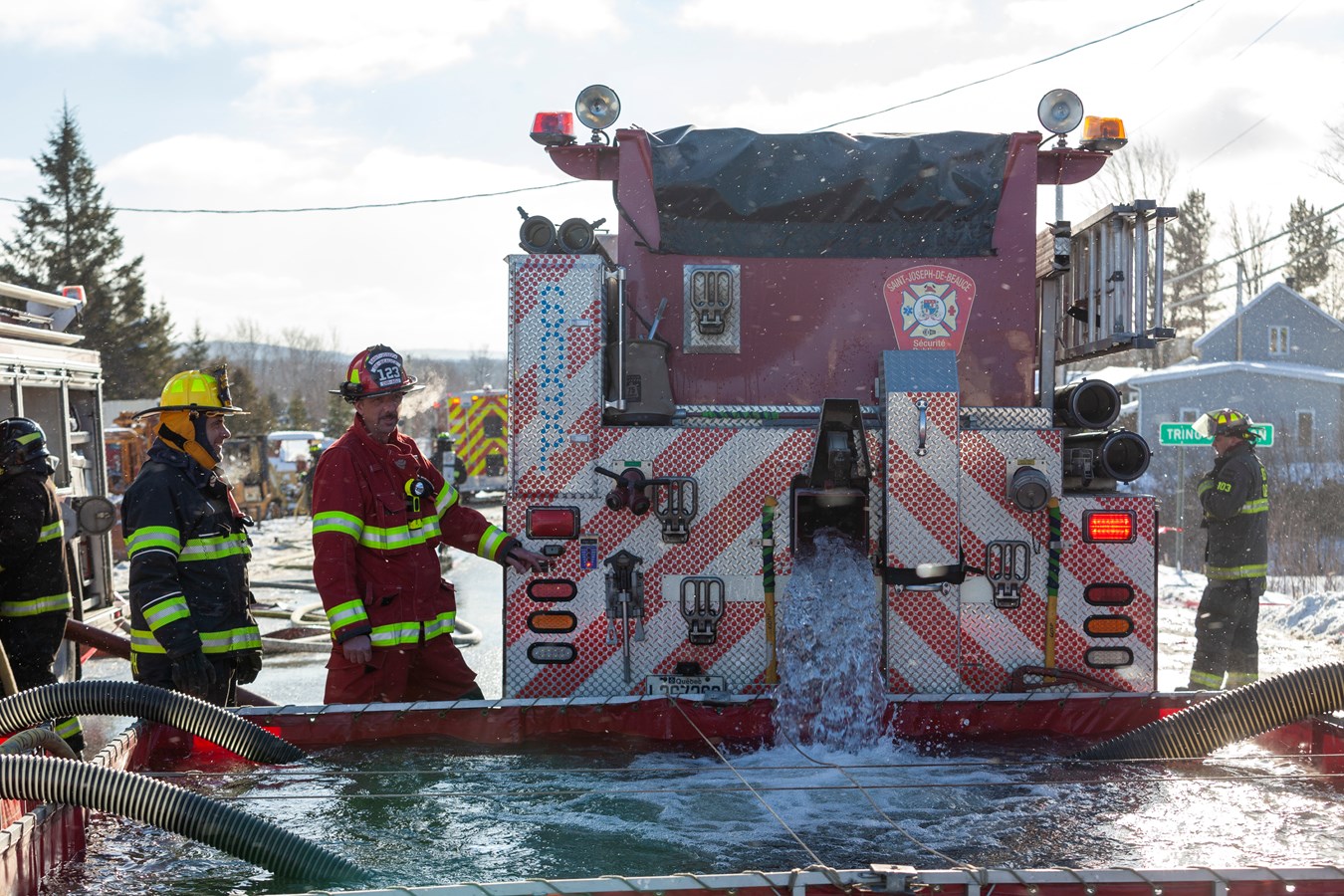 La régie intermunicipale du service de sécurité incendie (RISSI) de Saint-Frédéric est sur les lieux, avec l'entraide des pompiers d'East-Broughton et de Saint-Joseph-de-Beauce (avec un camion-citerne). Le service de sécurité incendie de Beauceville a également été demandé pour un ravitaillement en air respirable. Au total, 35 pompiers ont travaillé sur ce feu.