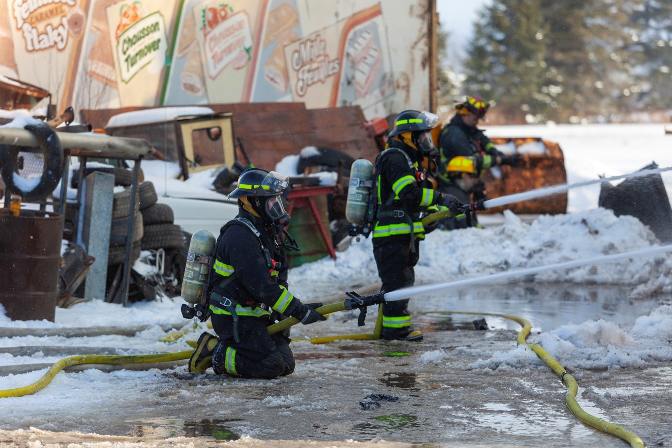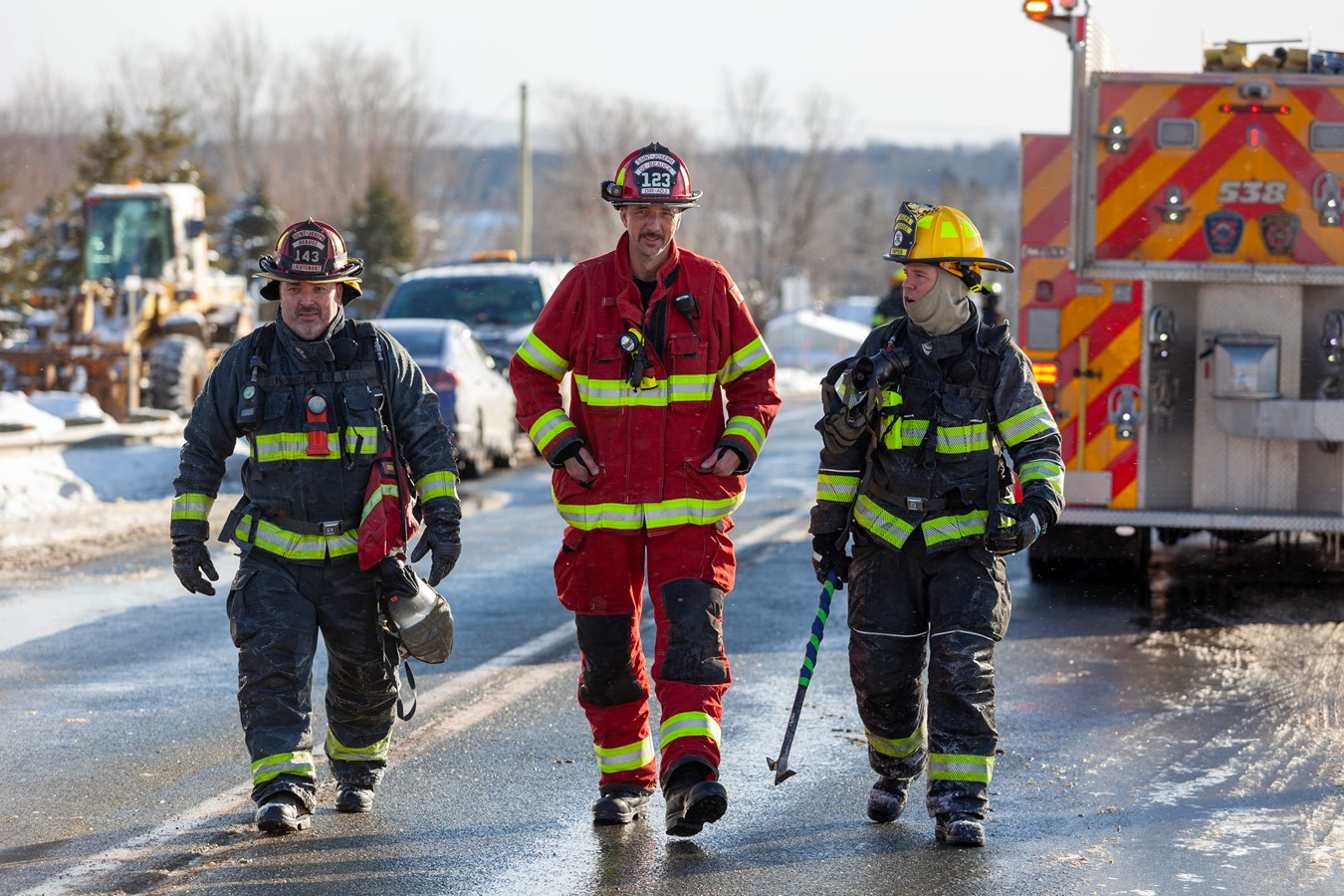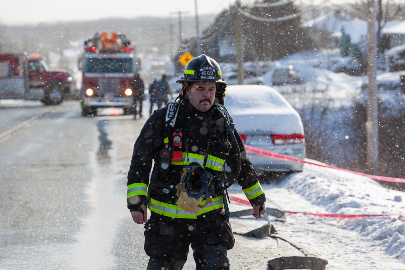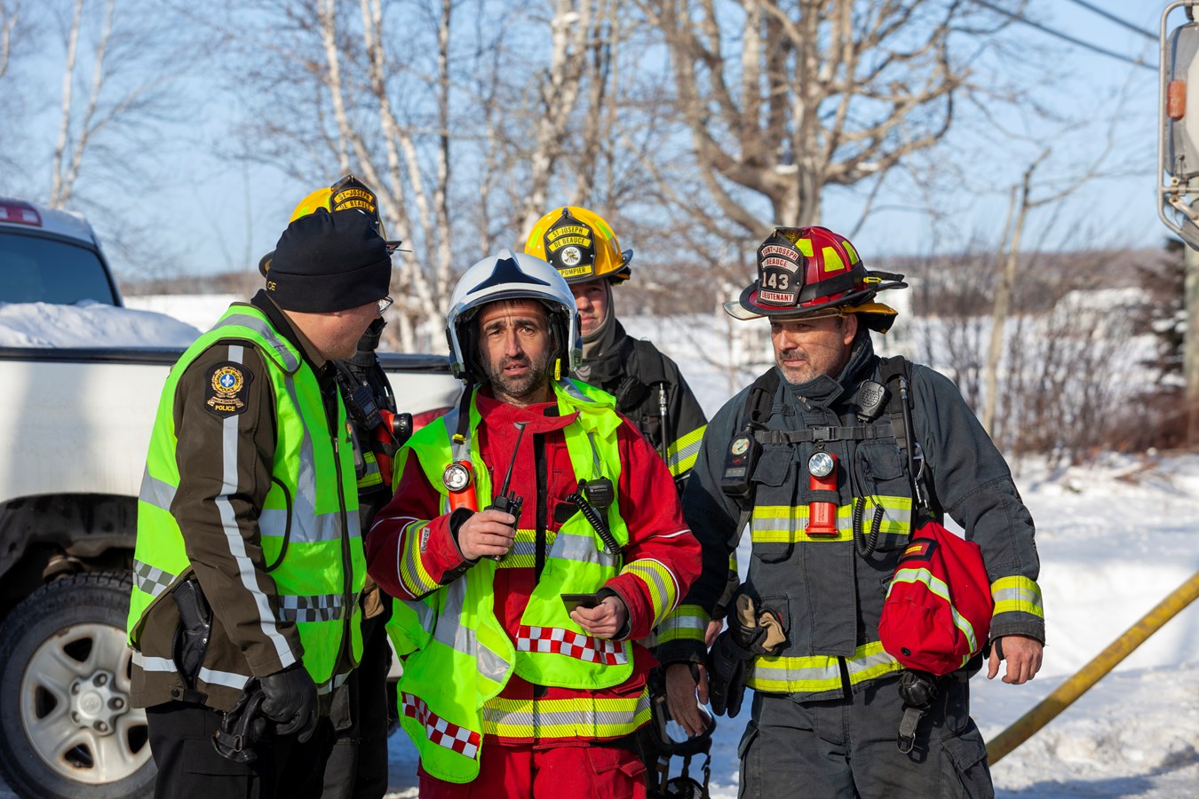 La régie intermunicipale du service de sécurité incendie (RISSI) de Saint-Frédéric est sur les lieux, avec l'entraide des pompiers d'East-Broughton et de Saint-Joseph-de-Beauce (avec un camion-citerne). Le service de sécurité incendie de Beauceville a également été demandé pour un ravitaillement en air respirable. Au total, 35 pompiers ont travaillé sur ce feu.