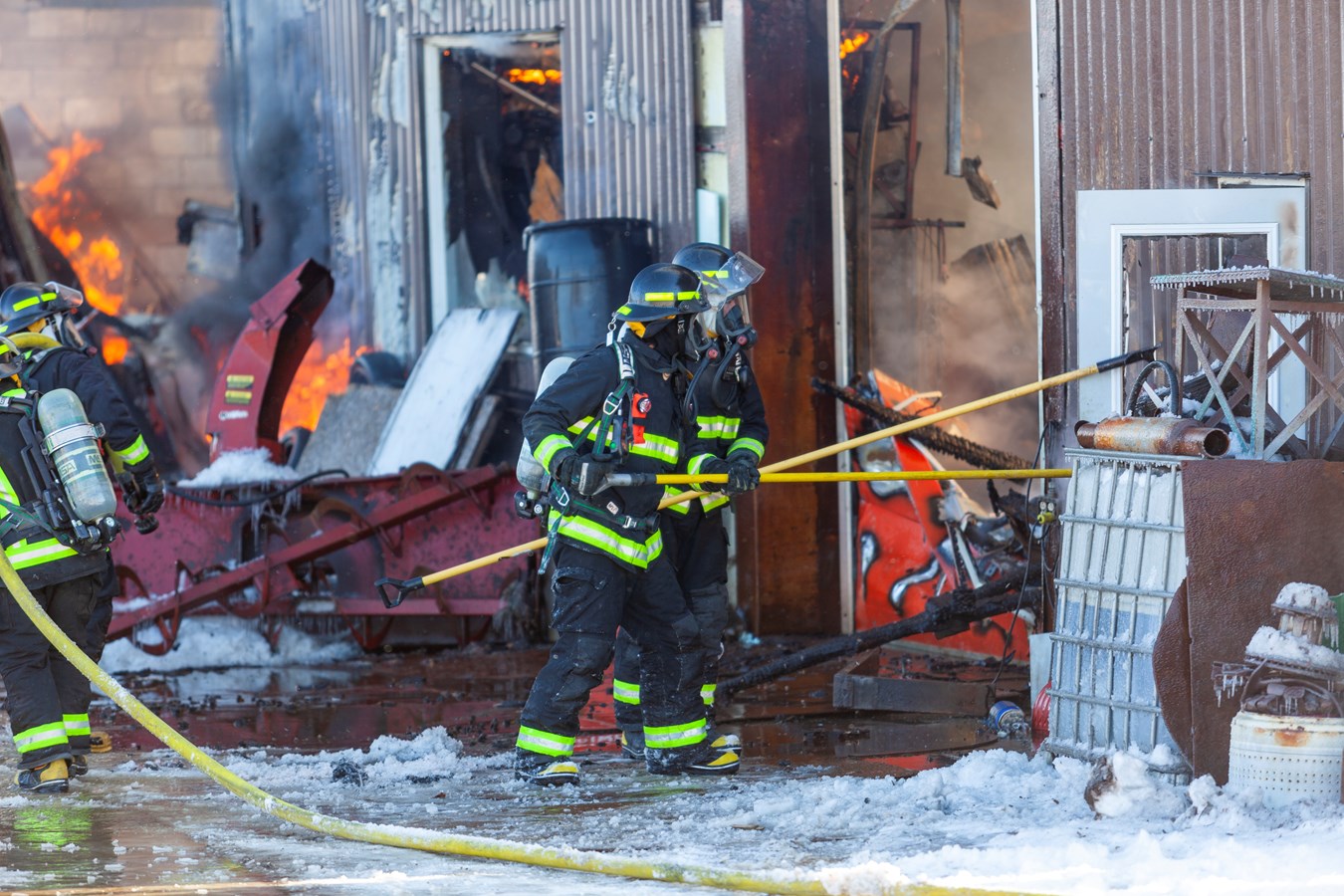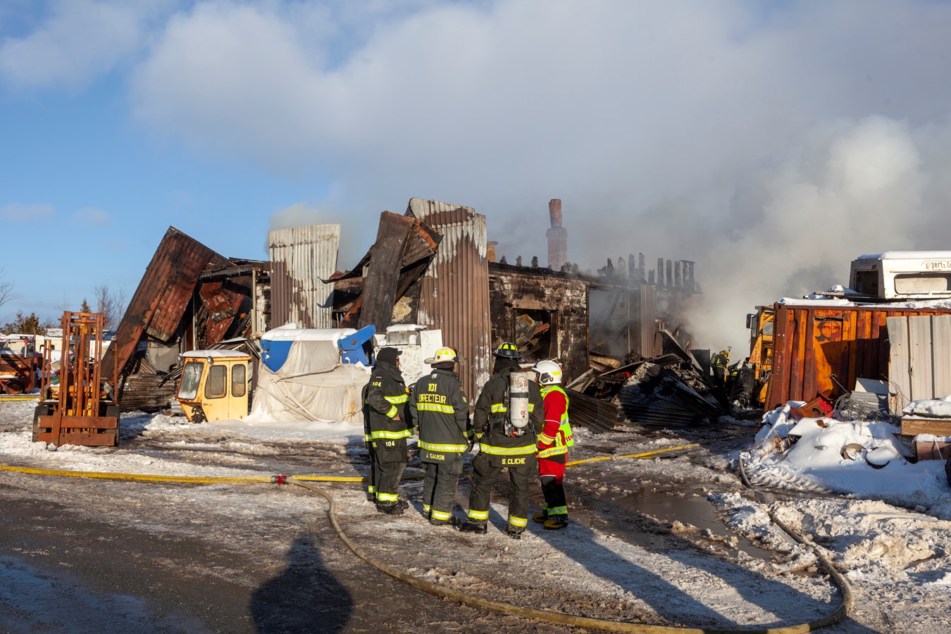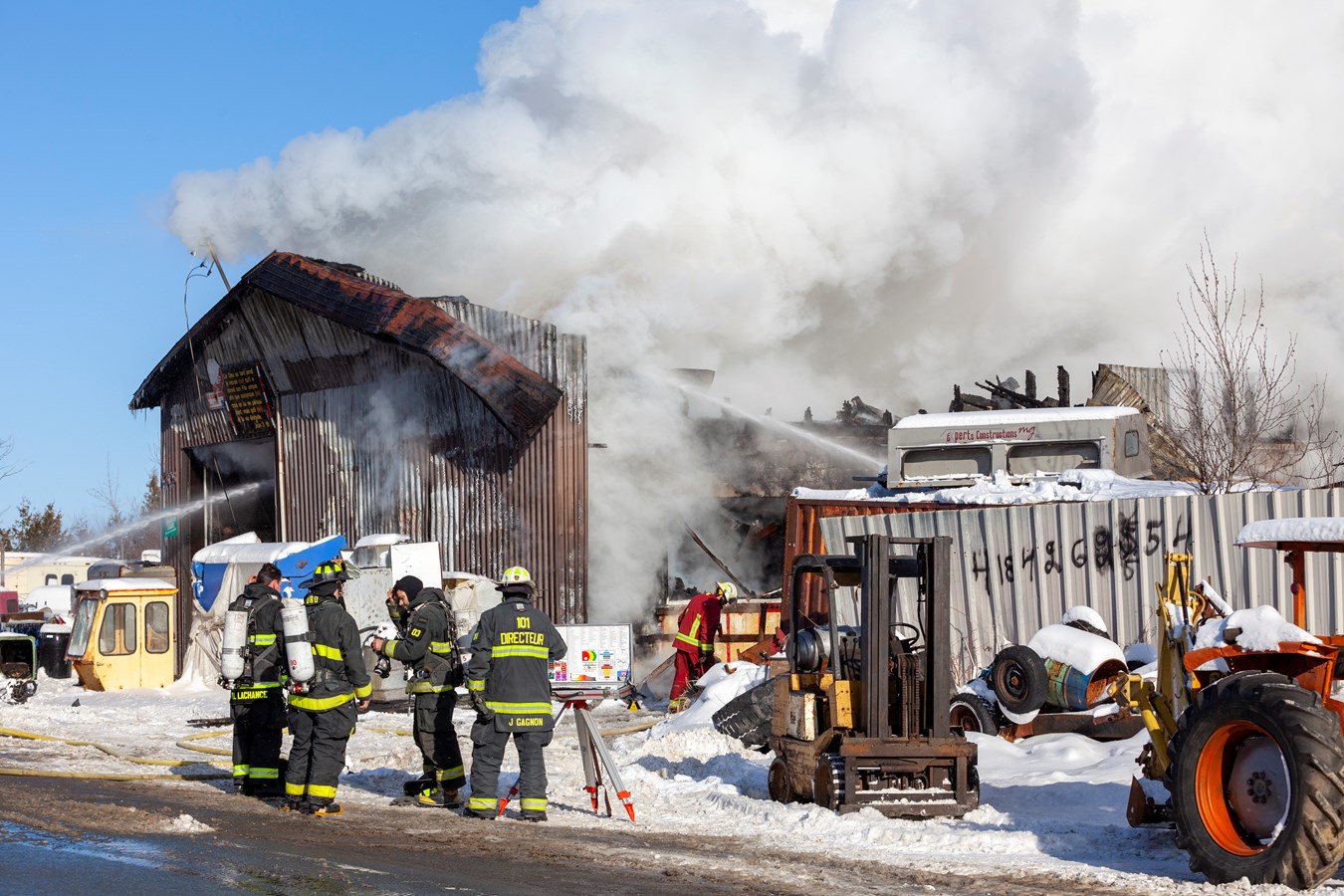 À l'arrivée des pompiers, une colonne de fumée était visible de loin et l'incendie était déjà éclaté. Cependant, ils n'ont pas pu intervenir correctement tout de suite en raison de la présence de bonbonnes de gaz dans le bâtiment (propane, acétylène, et autres). Les bonbonnes explosaient au fur et à mesure de la progression du feu. Ils ont donc dû intervenir de loin pour commencer, le temps de savoir où étaient les bouteilles et d'essayer de les refroidir. Urgence environnement c'est donc aussi déplacé.