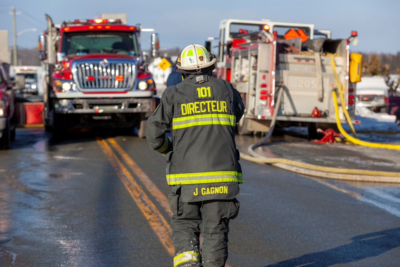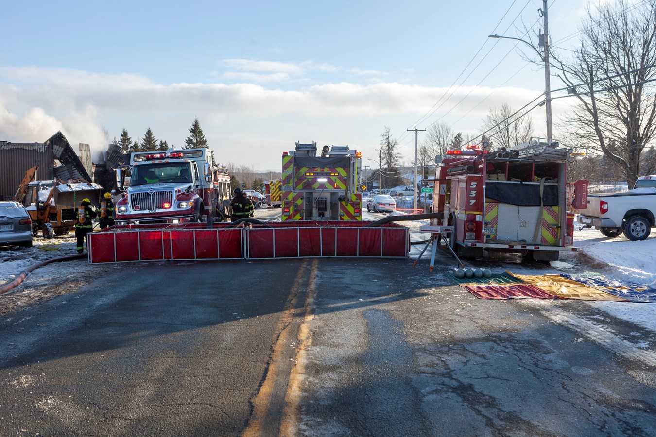 La Sûreté du Québec, en collaboration avec le ministère des Transports du Québec, a fermé la route à toute circulation. Elle n'a pas encore été rouverte, car les pompiers sont toujours sur place.