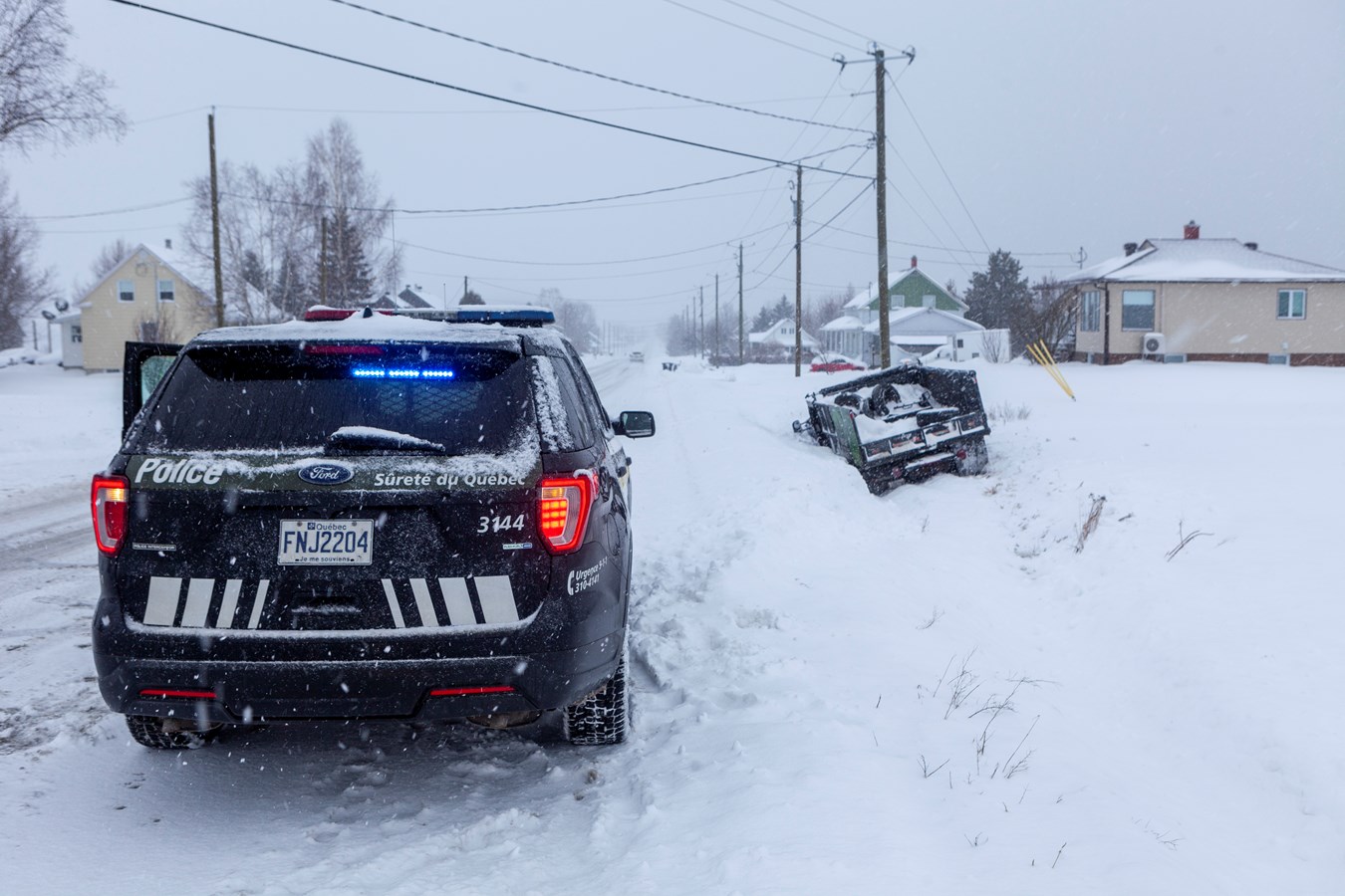 En raison de la chaussée enneigée de vendredi, une camionnette a fait une sortie de route vendredi vers 13 h 20 dans la 175e Rue à Saint-Georges. Il n’y a eu aucun blessé et le véhicule n’a subi que très peu de dommage. Il a été remorqué.