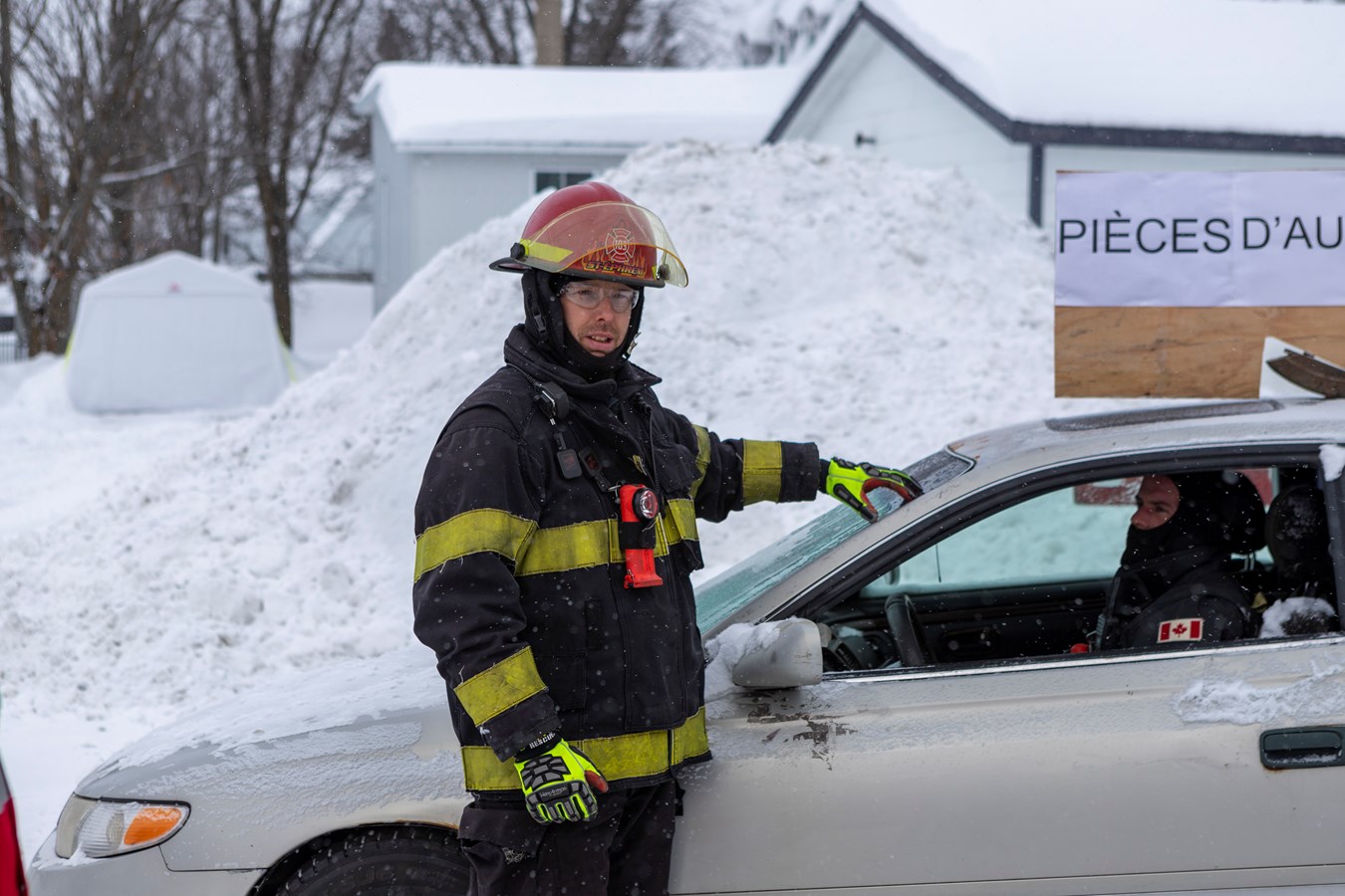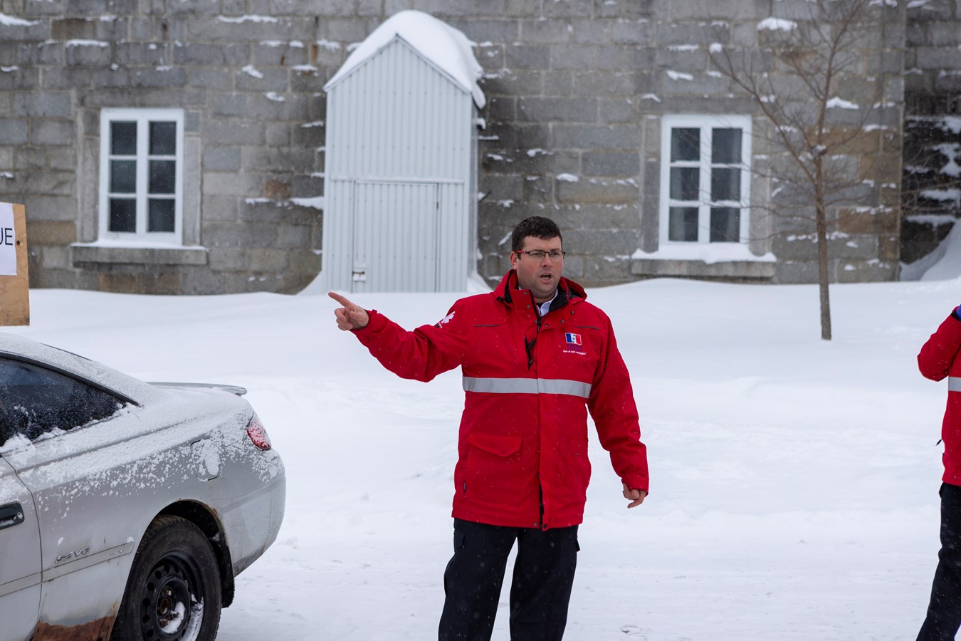 Le directeur-adjoint Jean-Philippe Longchamps expliquant les étapes de la désincarcération.