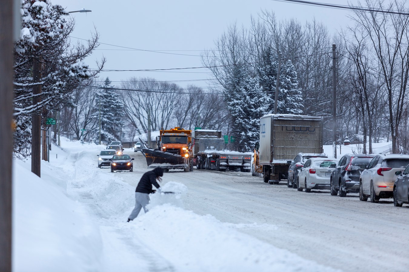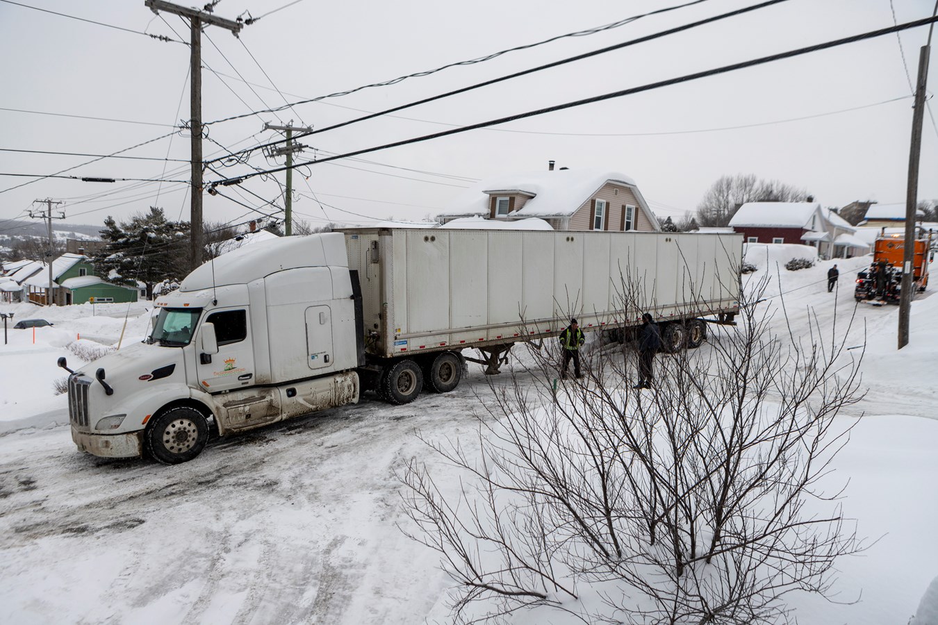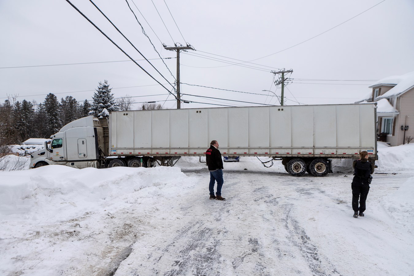 En milieu d’après-midi, un camion de 53 pieds s’est aventuré sur la 120e Rue à Saint-Georges, mais sous la chaussée glissante il n’a pas été en mesure de monter bloquant par le fait même toute la rue. Une remorqueuse pour les poids lourds a été nécessaire. La Sûreté du Québec lui a remis un constat d’infraction, car il est interdit de prendre cette rue pour les véhicules poids lourds. L’opération de remorquage a pris une trentaine de minutes.
