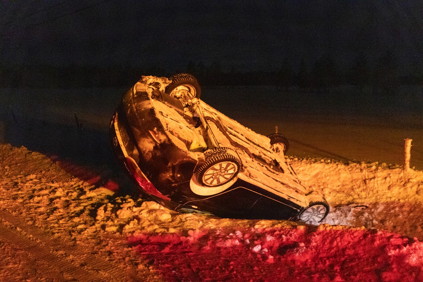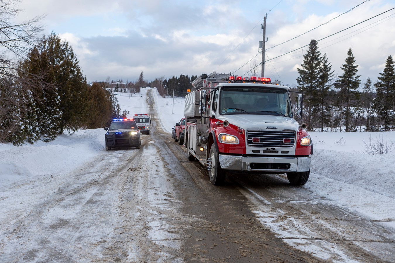 D'abord, tôt dans la nuit de vendredi à samedi, vers 3 h 30 du matin, les services d'urgences se sont rendus sur la 68e rue Sud à Saint-Georges. Sur place, se trouvaient donc les policiers de la MRC Beauce-Sartigan, qu'une ambulance et l'équipe de sauvetage et de désincarcération du groupe Cambi ainsi que le service de sécurité incendie (SSI) de Saint-Georges.