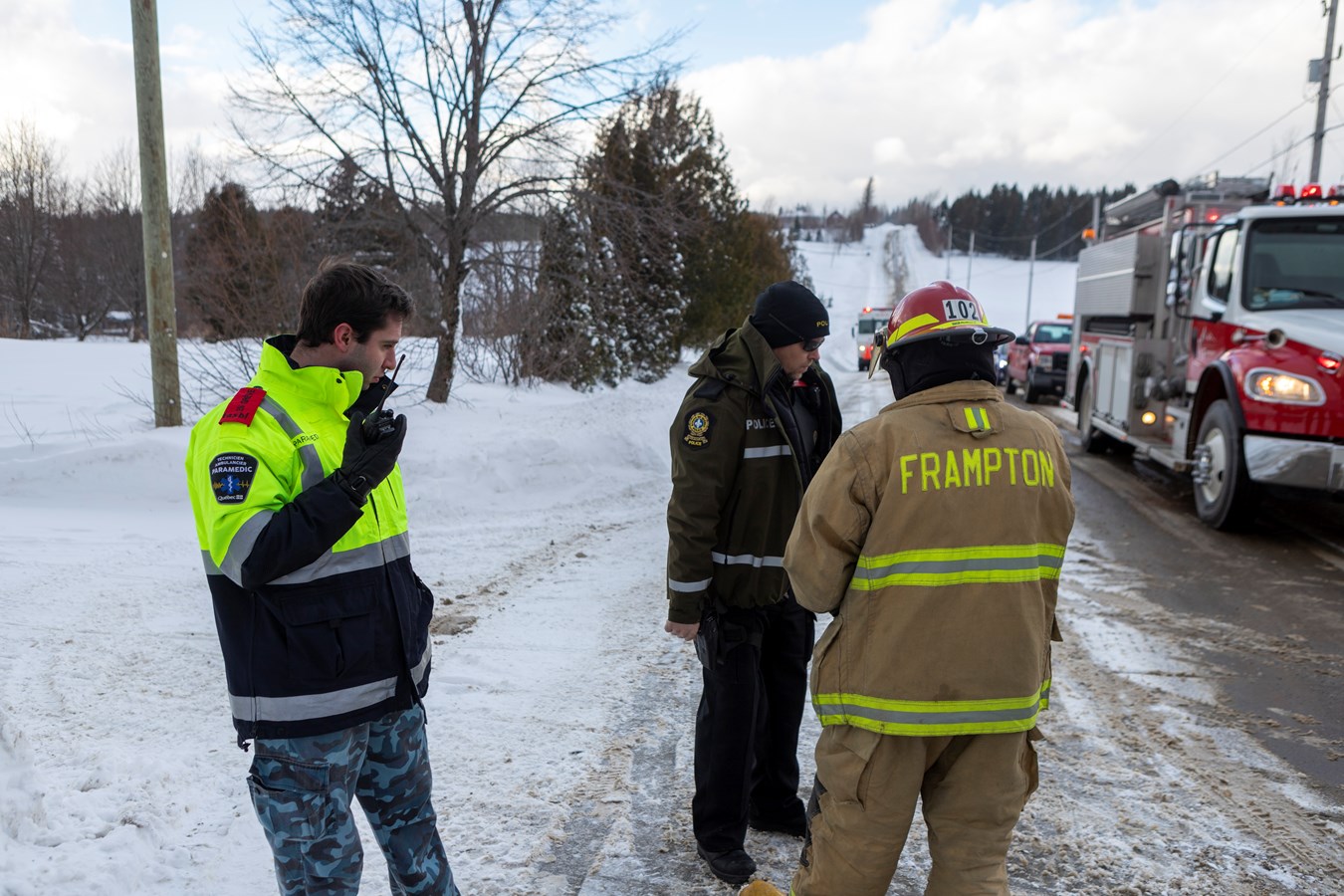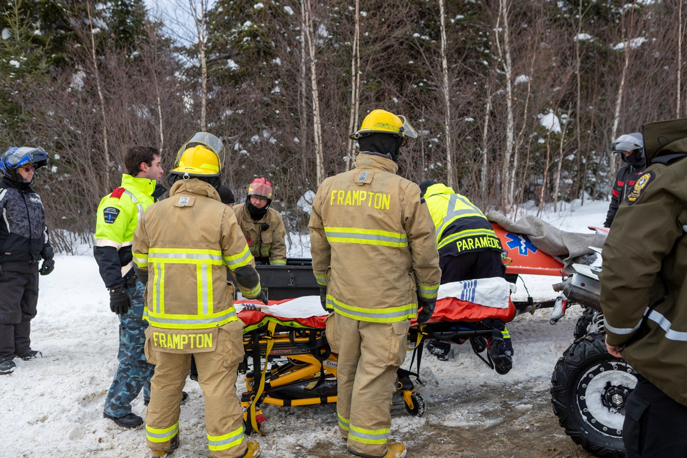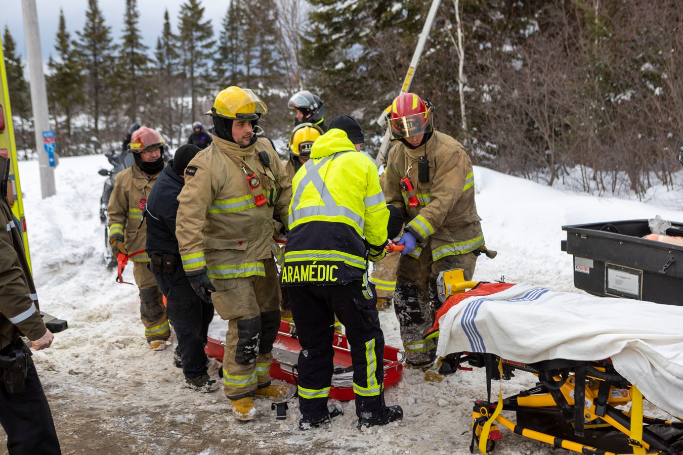 Par la suite, toujours samedi vers 14 h 30, le service ambulancier du groupe Cambi, le SSI de Frampton et les policiers de la MRC Nouvelle-Beauce ont été appelés sur le 2e rang à Frampton pour un accident de motoneige dans le sentier fédéré 75.