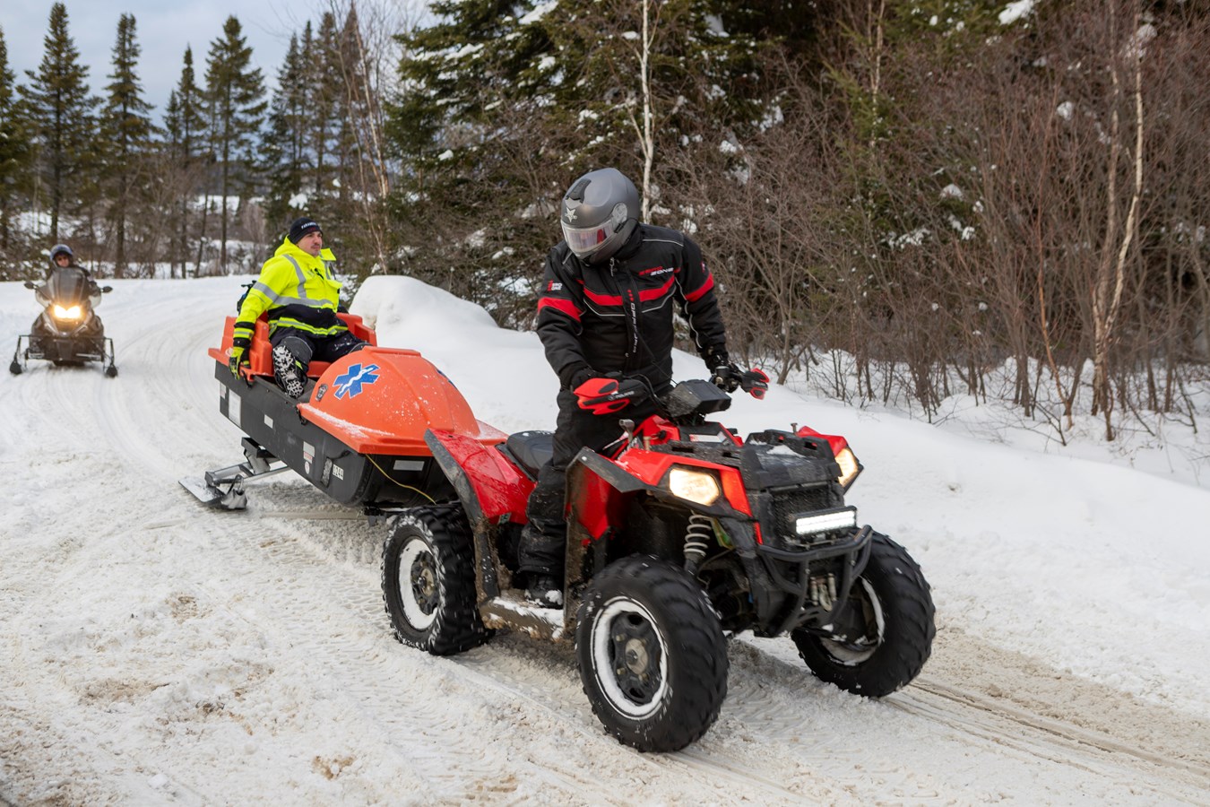 La victime était non accessible à un kilomètre donc le SSI a utilisé un VTT avec la civière-traineau pour l'évacuer. La femme de 30 ans a ensuite été transportée au centre hospitalier de Lévis pour des blessures mineures au bas du corps.