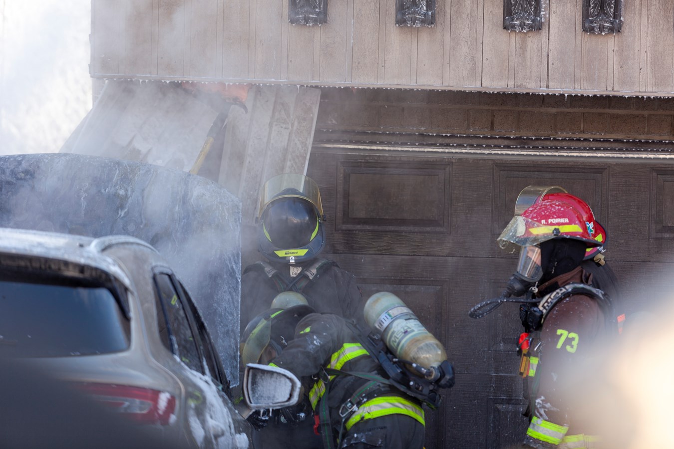 Après avoir procédé à l'extinction de l'incendie, ils ont vérifié qu'il n'y avait bien aucune propagation à la maison et ont ventilé les lieux à l'aide d'un ventilateur à pression positive. De la fumée était entrée, mais personne n'a été incommodé.