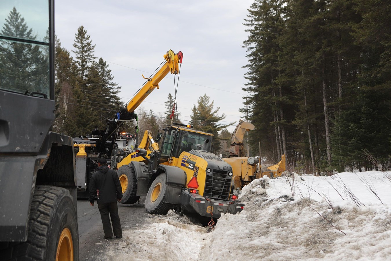 Un chargeur sur pneus a fait une sortie de route sur la route 204 entre Saint-Georges et Saint-Martin, à la hauteur de la 93e rue, vers 13 h ce mercredi.