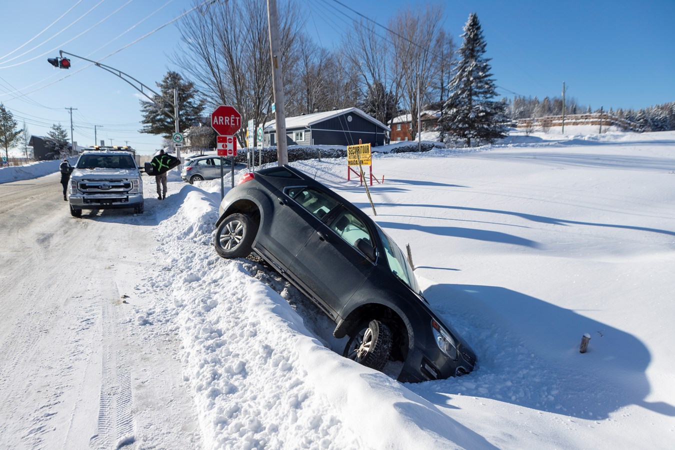 Un véhicule a effectué une sortie de route ce matin vers 8 h 30, à l'intersection du chemin Royal et de la 30e rue à Notre-Dame-des-Pins.