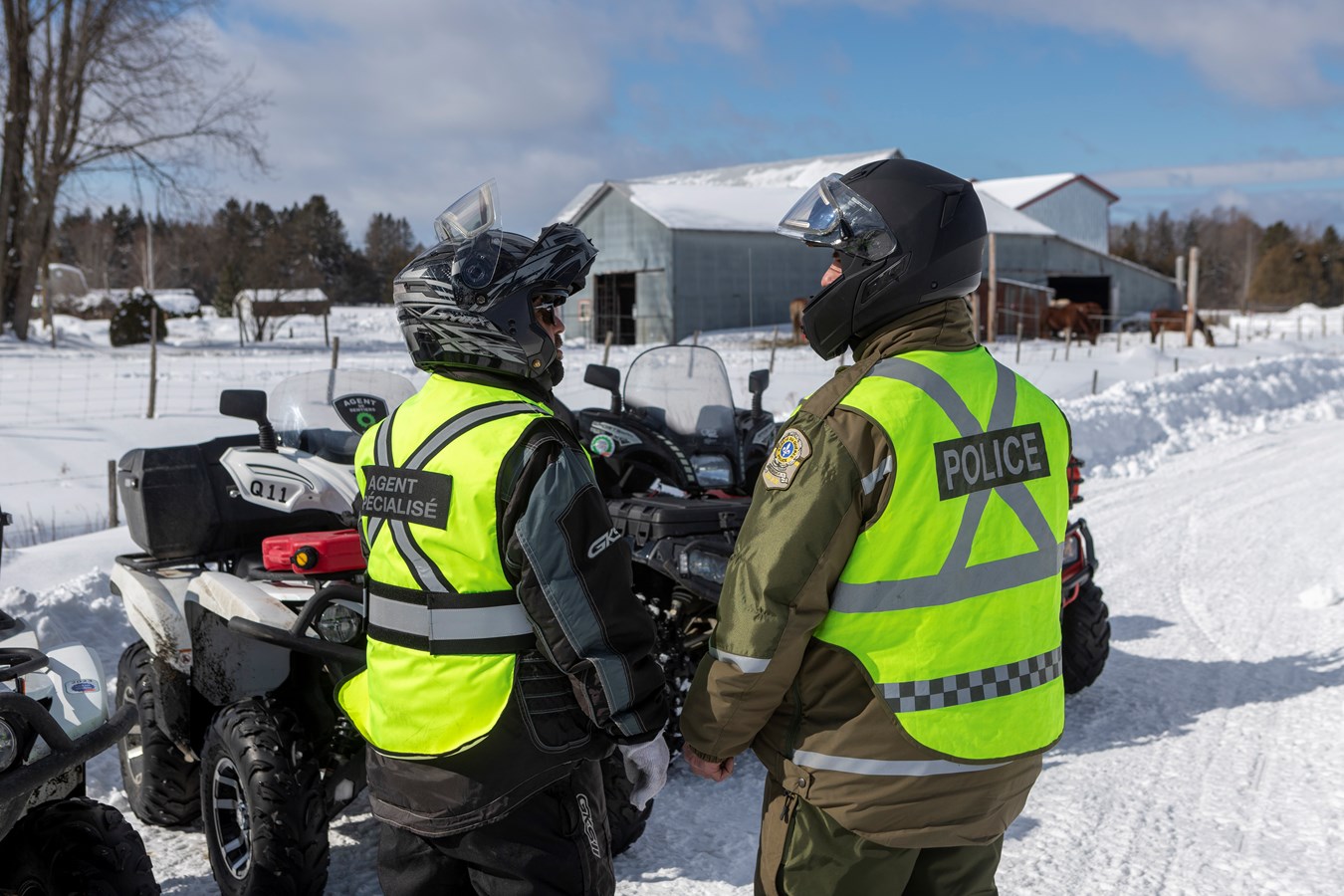 Étaient présents 14 motoneigistes et 4 quadistes de la Sûreté du Québec. Les policiers impliqués ont été appuyés par de nombreux agents de surveillance de sentiers de la Fédération des clubs de motoneigistes du Québec, de la Fédération québécoise des clubs quads, ainsi que des agents des clubs locaux affiliés aux deux fédérations.