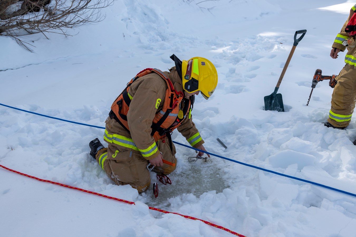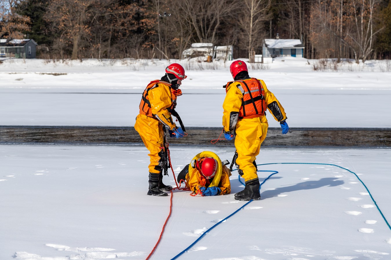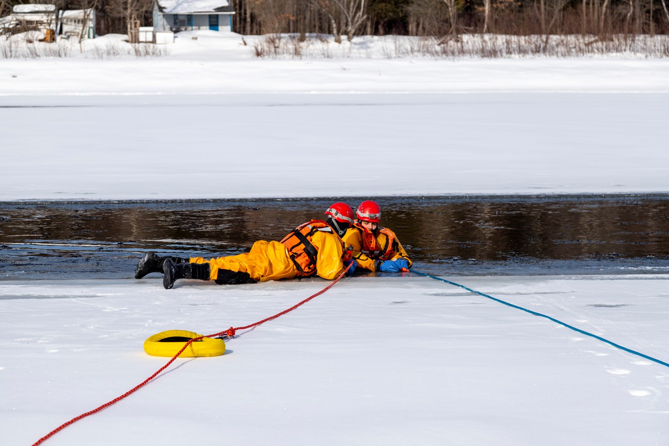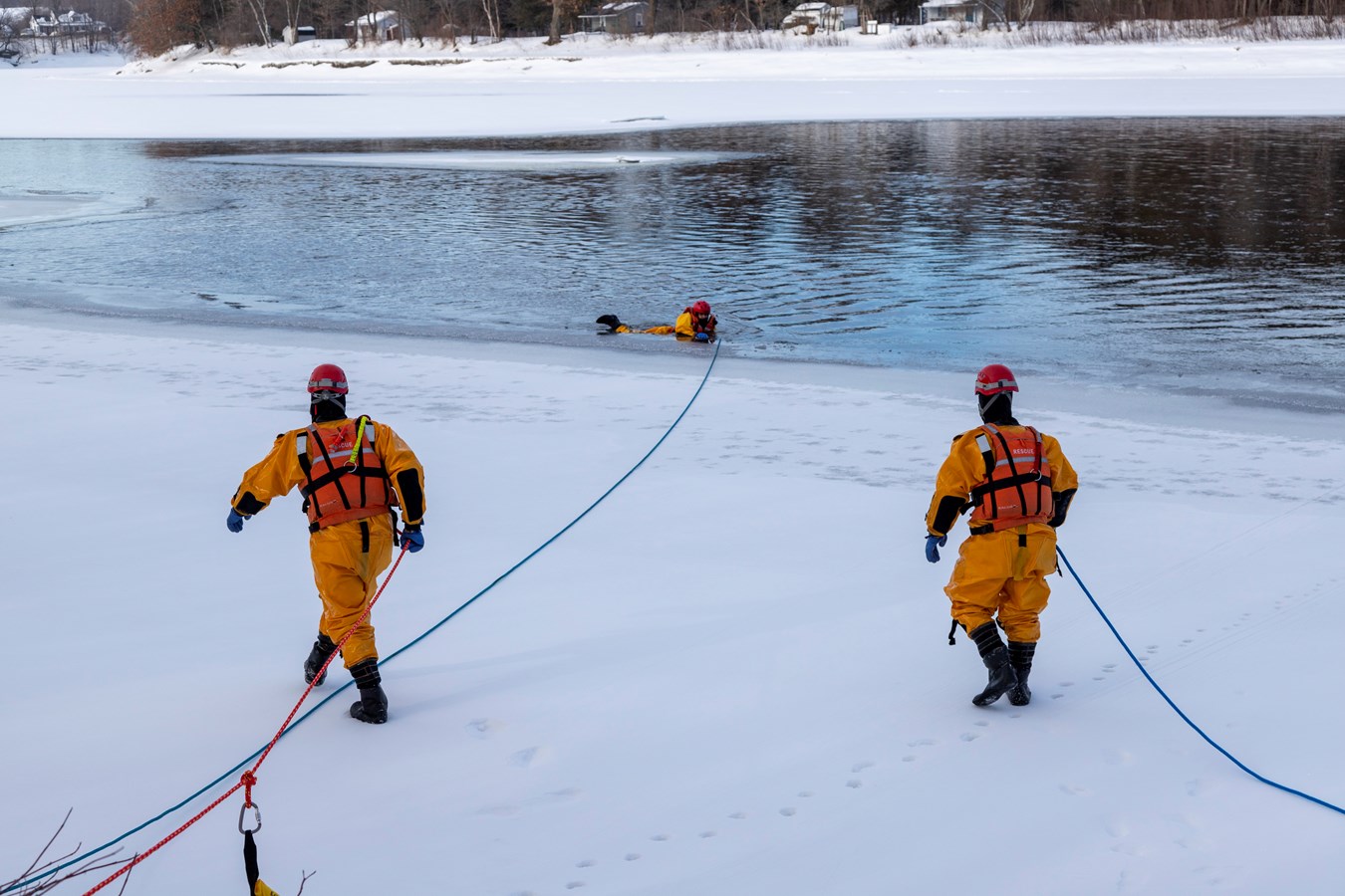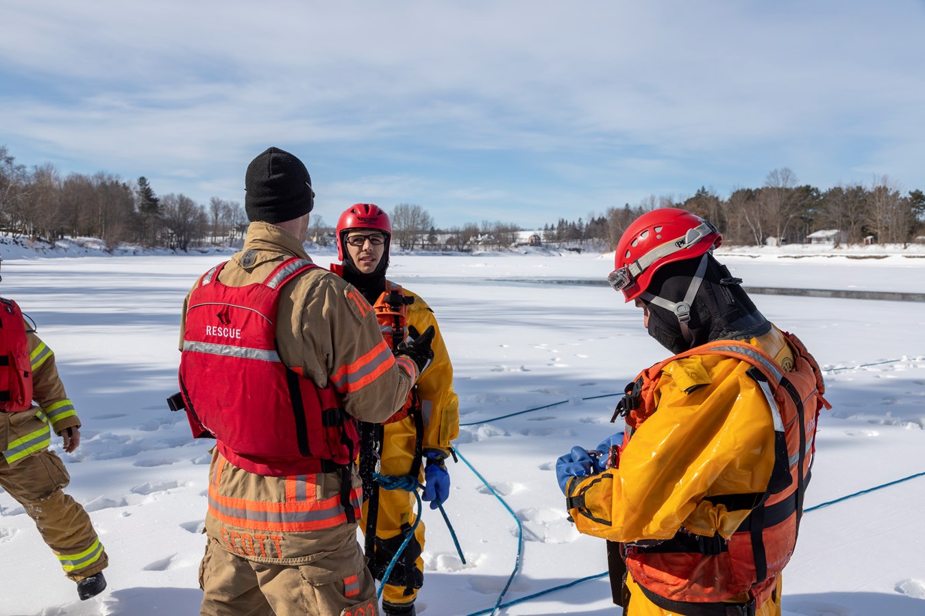 Comme explique Frédérick Marcoux, adjoint-directeur du SSI de Scott, à EnBeauce.com, « on a eu une belle journée. Hier, on a pratiqué des manœuvres spéciales un peu. On a fait comme une approche rapide de victime. On fait nos exercices tous les ans pour se tenir à jour. Ça très bien été. La température était de notre côté, l’épaisseur de glace était bonne encore aussi pour la période de l’année c’était encore super bien. »