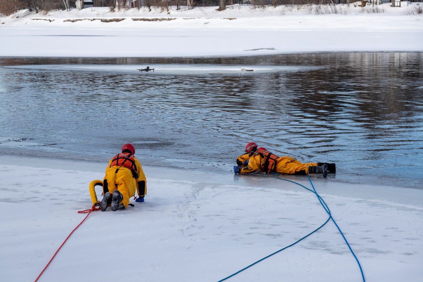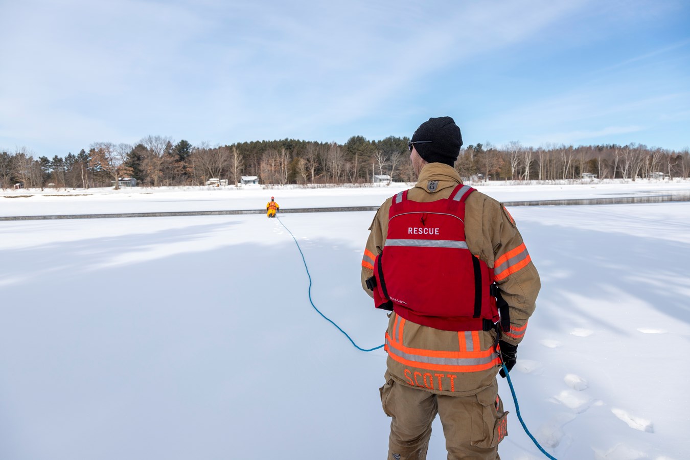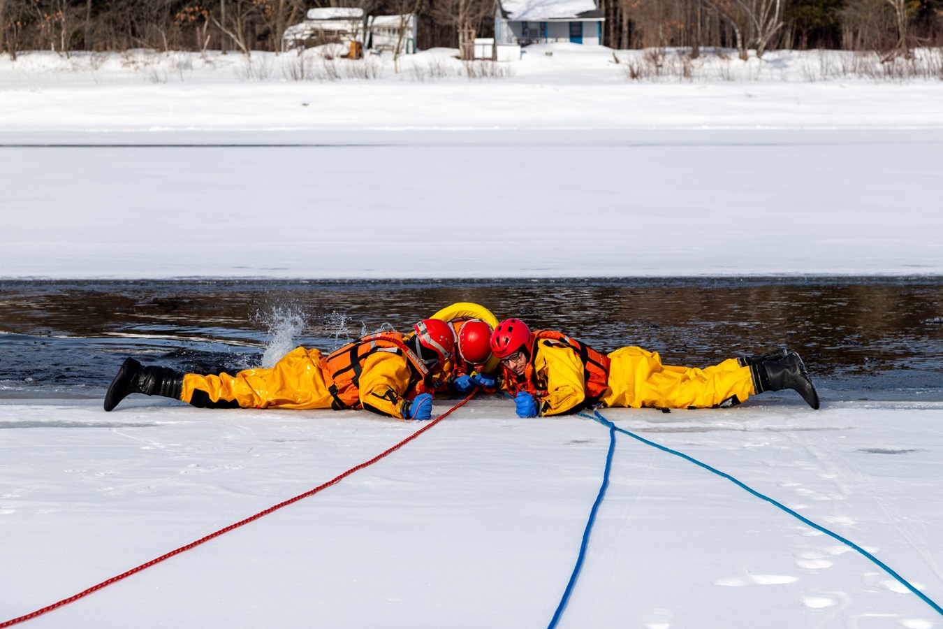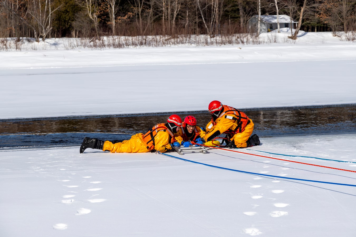 Comme explique Frédérick Marcoux, adjoint-directeur du SSI de Scott, à EnBeauce.com, « on a eu une belle journée. Hier, on a pratiqué des manœuvres spéciales un peu. On a fait comme une approche rapide de victime. On fait nos exercices tous les ans pour se tenir à jour. Ça très bien été. La température était de notre côté, l’épaisseur de glace était bonne encore aussi pour la période de l’année c’était encore super bien. »