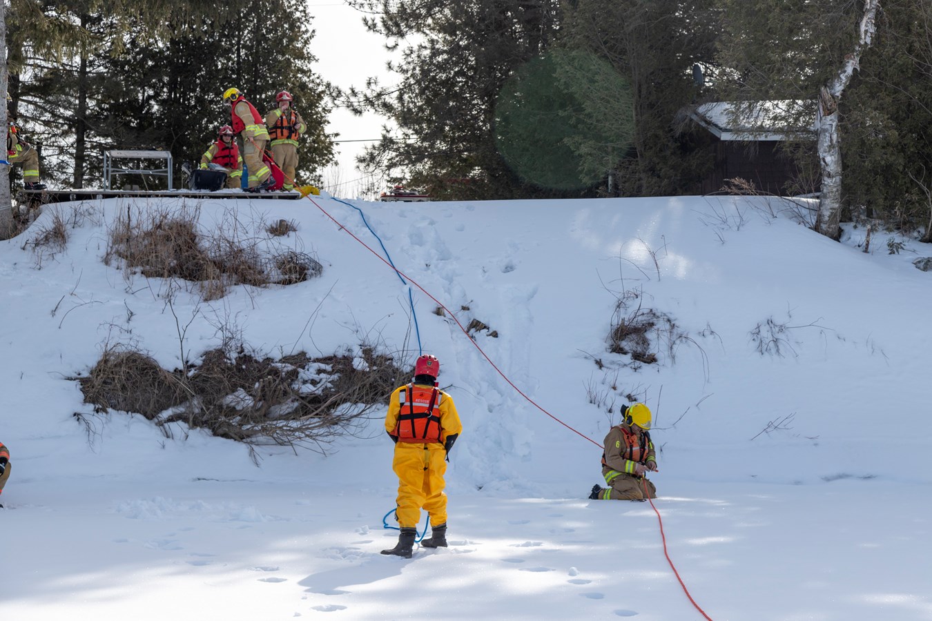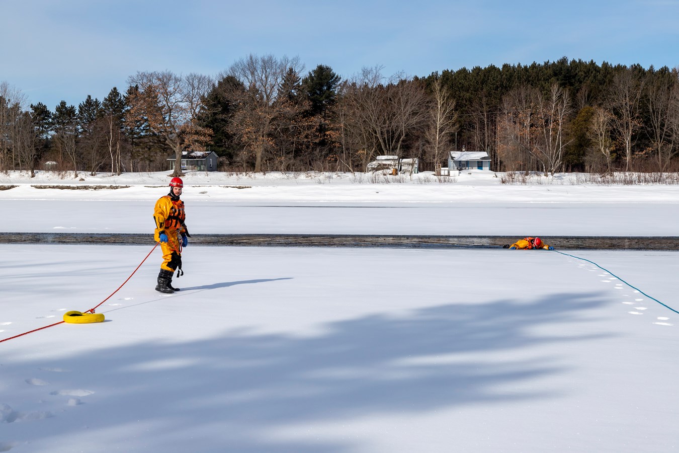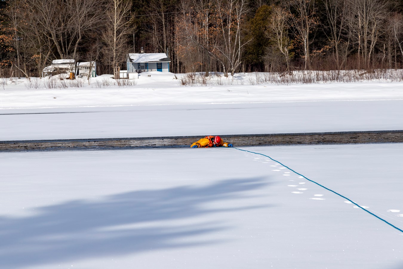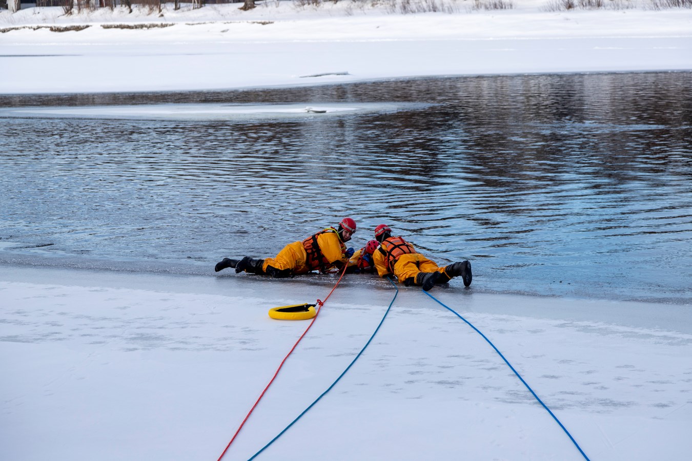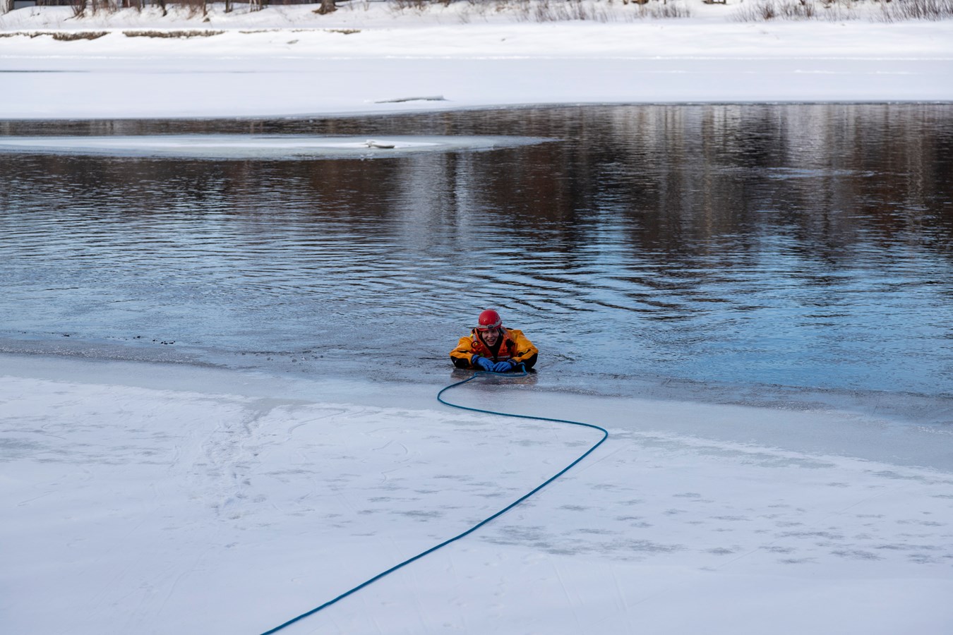 Comme explique Frédérick Marcoux, adjoint-directeur du SSI de Scott, à EnBeauce.com, « on a eu une belle journée. Hier, on a pratiqué des manœuvres spéciales un peu. On a fait comme une approche rapide de victime. On fait nos exercices tous les ans pour se tenir à jour. Ça très bien été. La température était de notre côté, l’épaisseur de glace était bonne encore aussi pour la période de l’année c’était encore super bien. »