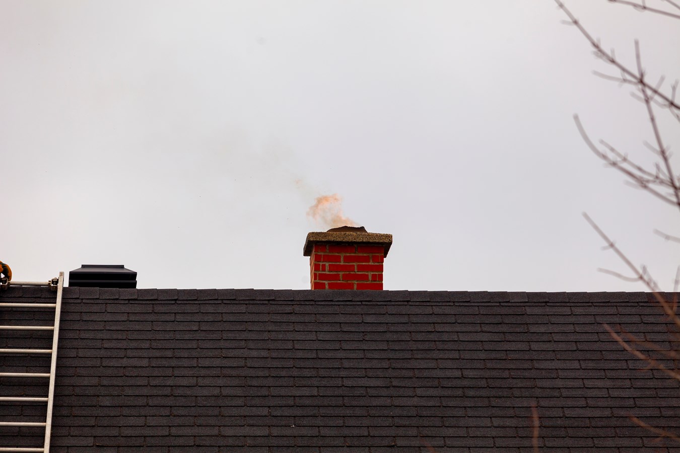 À l'arrivée des pompiers, des flammes étaient visibles en haut de la cheminée du bâtiment de deux étages.