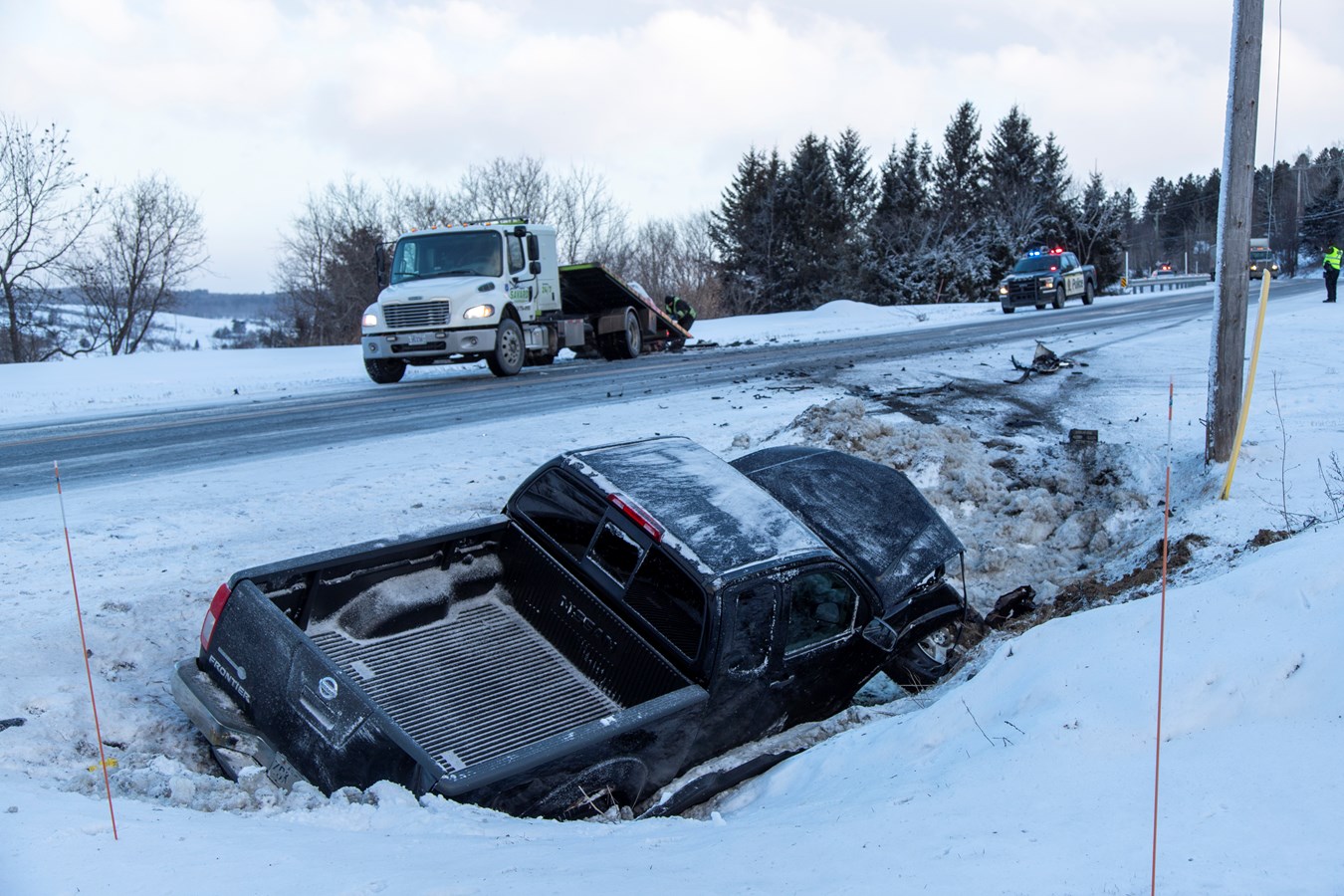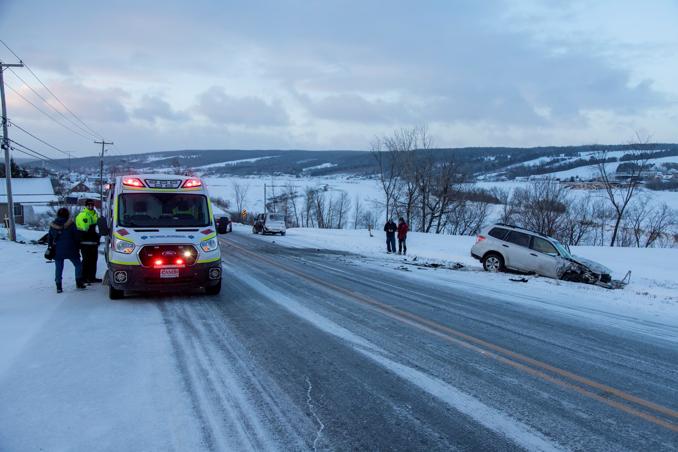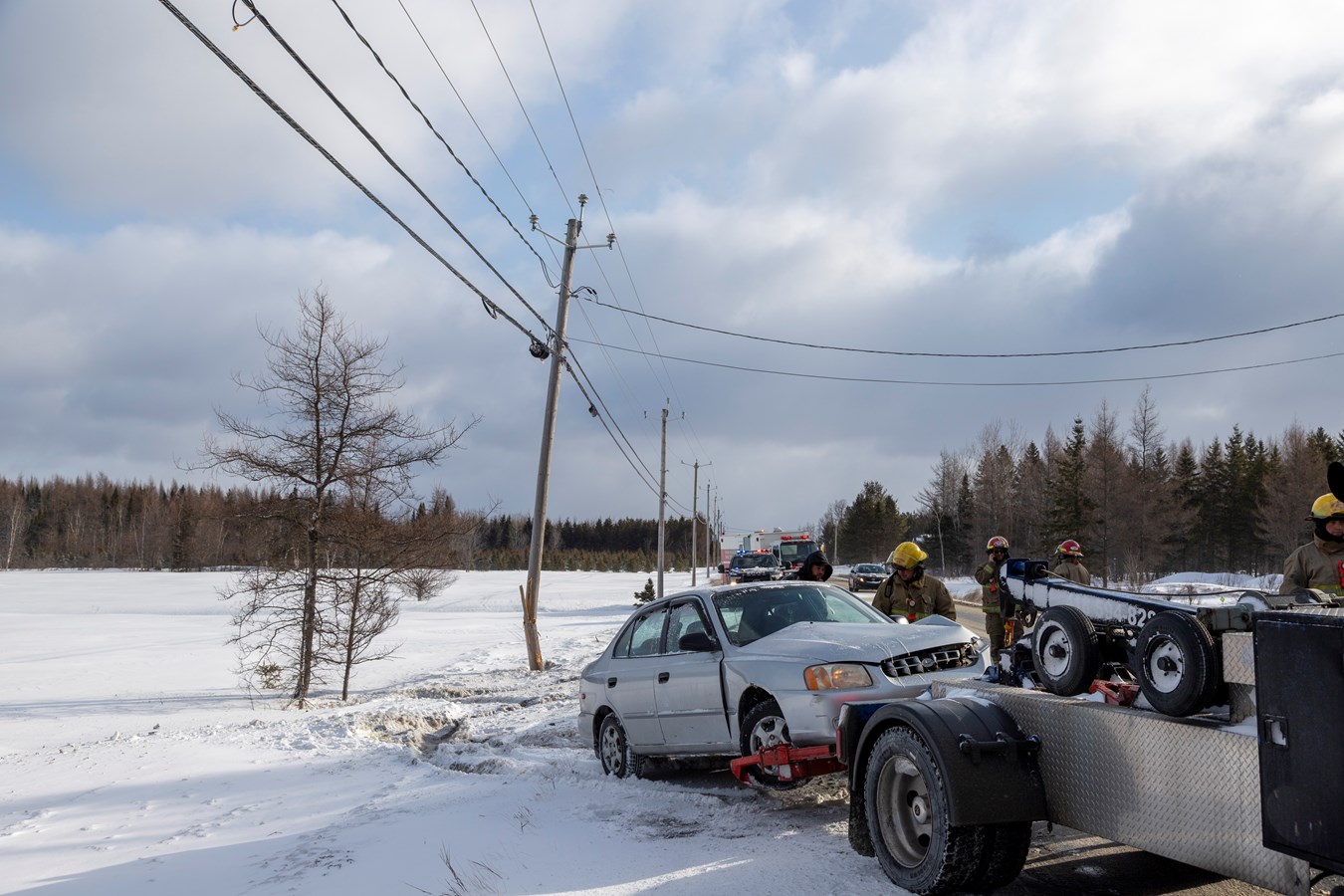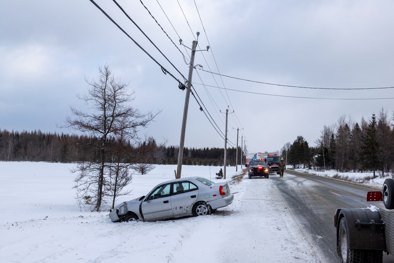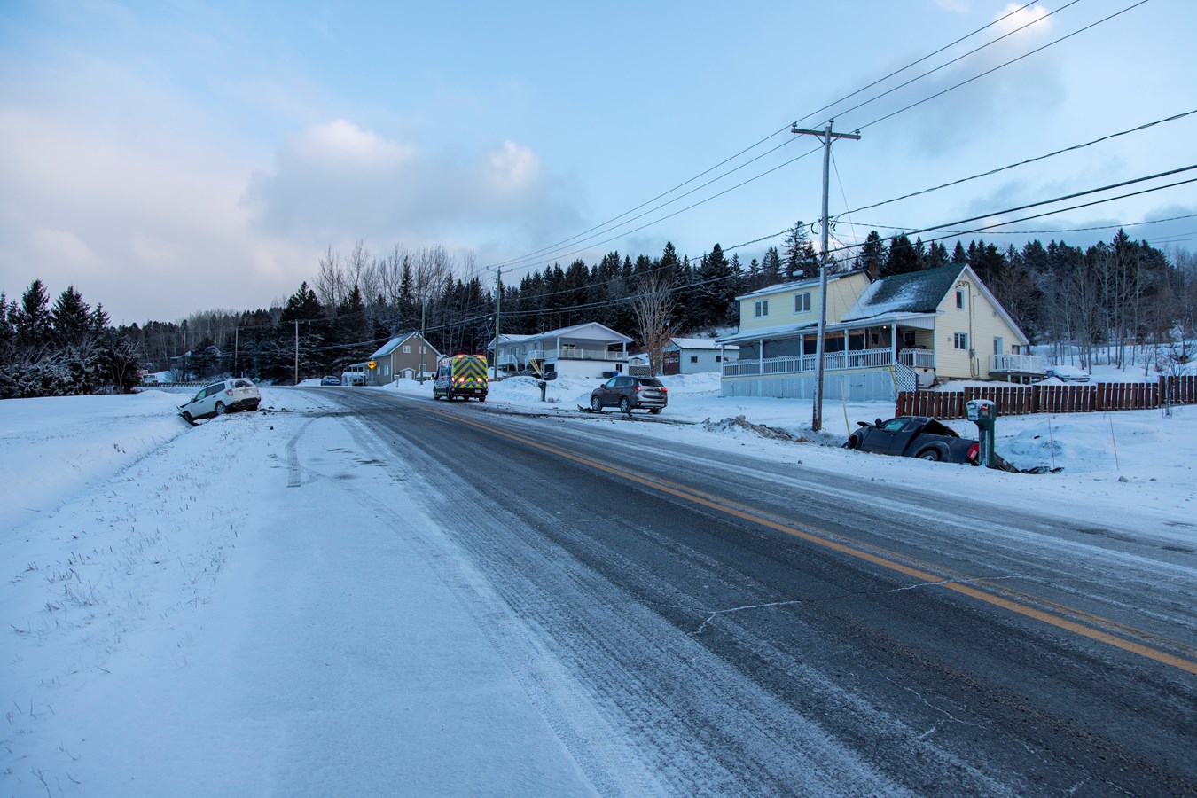 Un peu plus tard vers 7 h 50, le SSI de Saint-Prosper a été appelé au niveau de du 456 sur la 8e rue pour une sortie de route. Un véhicule a en effet terminé sa course dans un poteau d'Hydro-Québec.