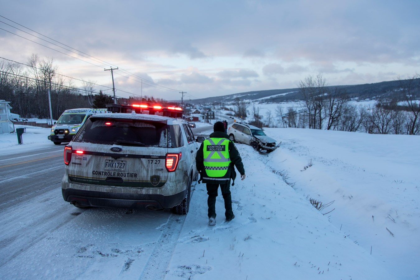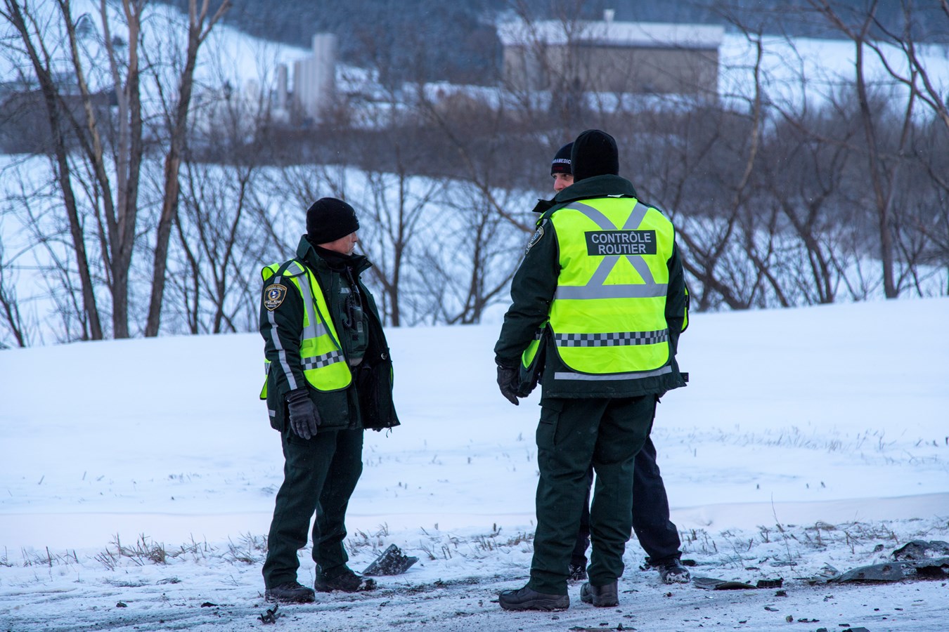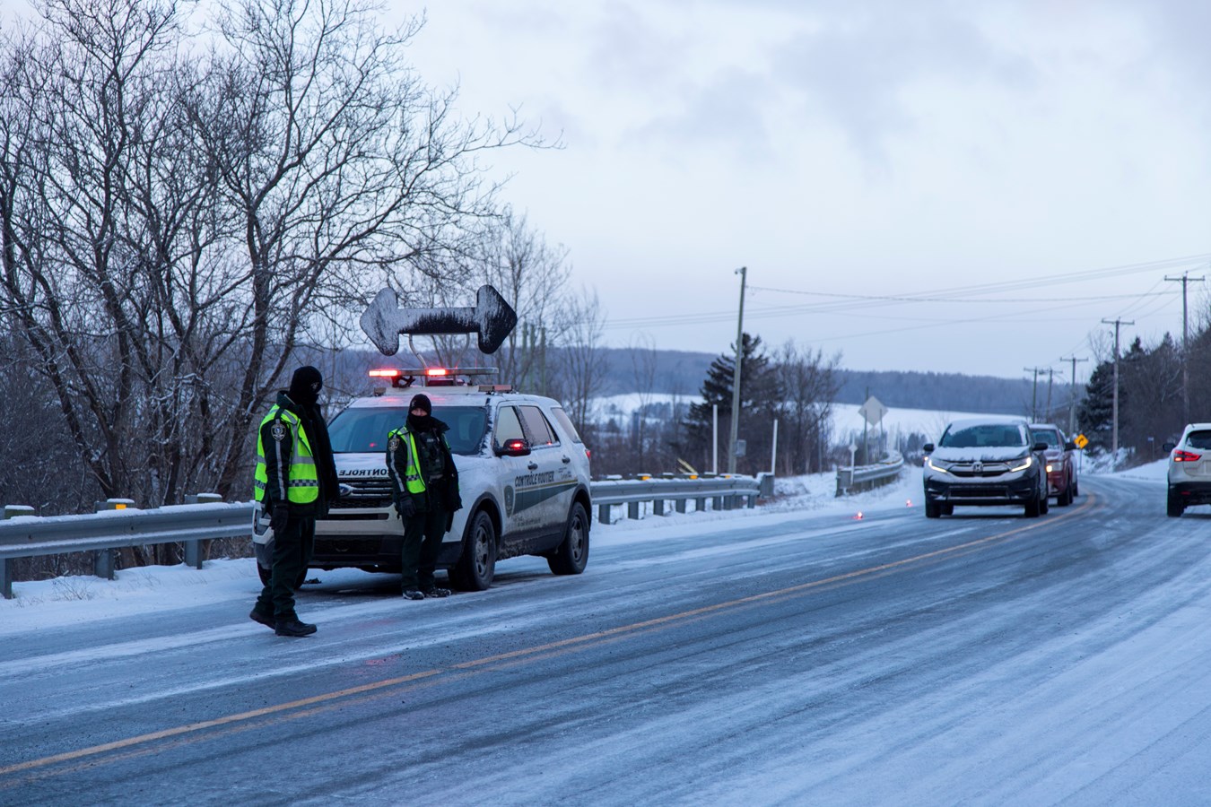 Les contrôleurs de la SAAQ qui passaient par là, ont aidés la Sûreté du Québec pour effectuer la circulation en alternance durant le remorquage des véhicules.