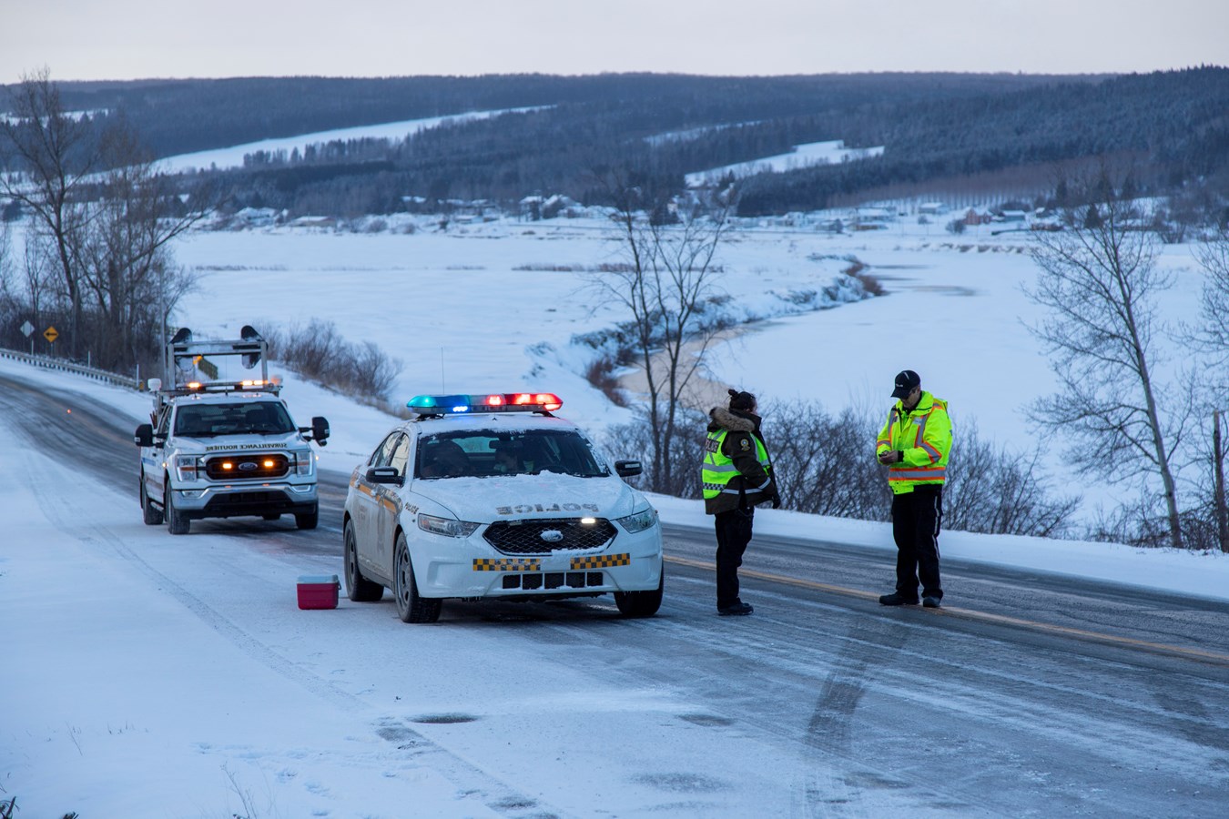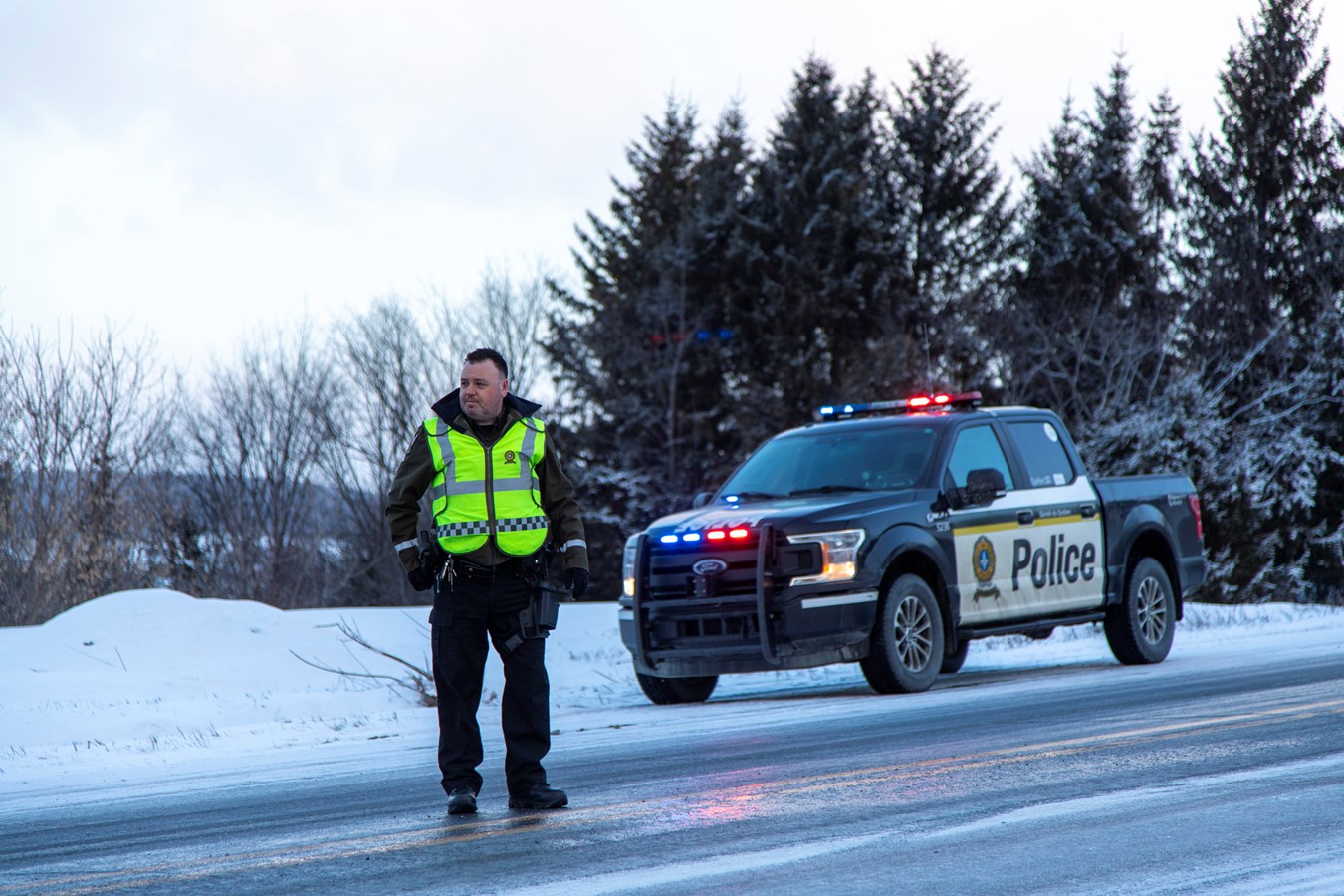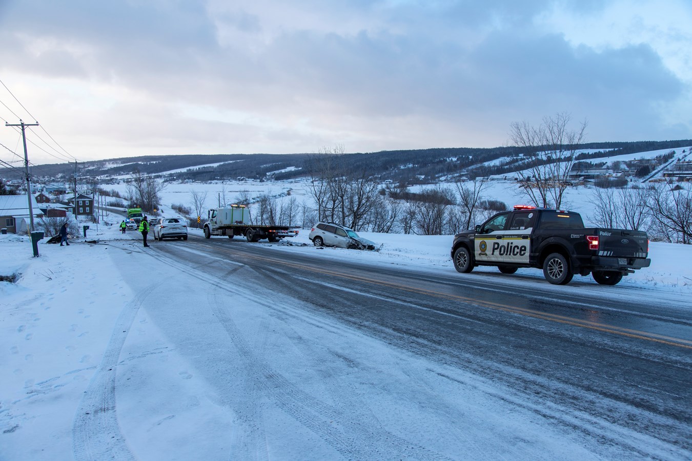 Les contrôleurs de la SAAQ qui passaient par là, ont aidés la Sûreté du Québec pour effectuer la circulation en alternance durant le remorquage des véhicules.