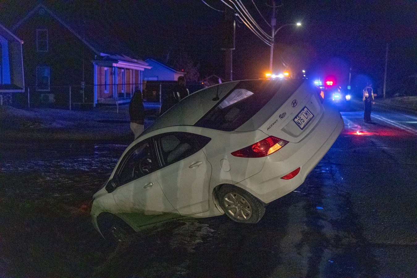 C'est d'abord une conductrice qui a voulu entrer dans une cour qui a raté son passage. Par conséquent, son véhicule est tombé dans le fossé.