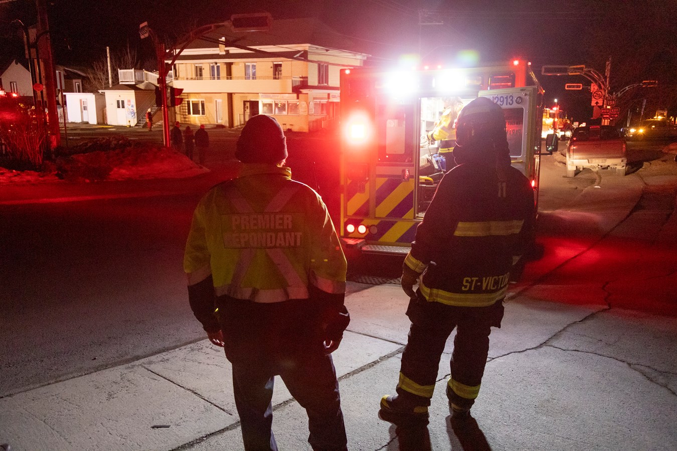 Le ministère des Transports s'est rendu sur place pour fermer la route 108 le temps de l'intervention et des ambulanciers ont évalué les résidents.