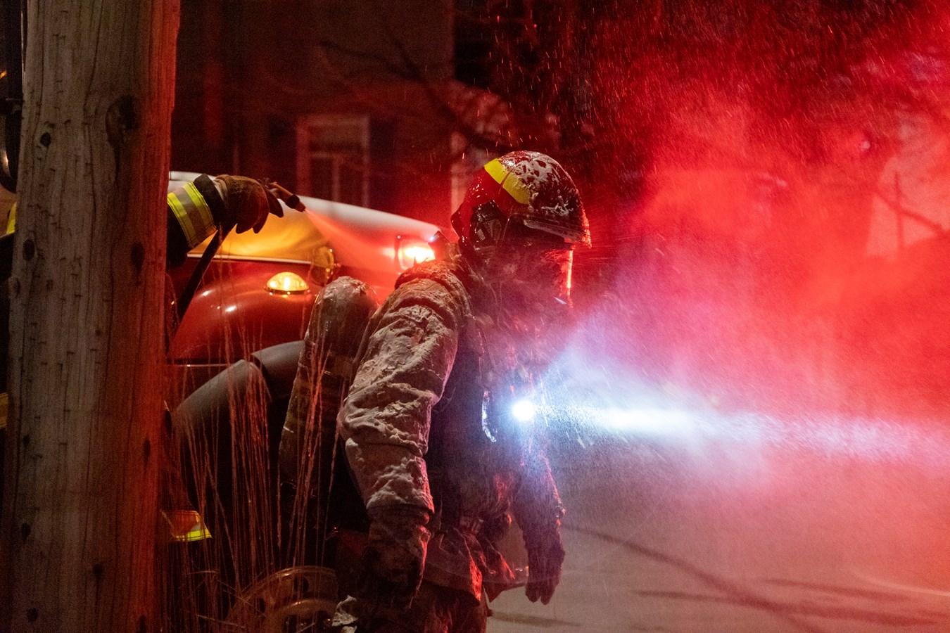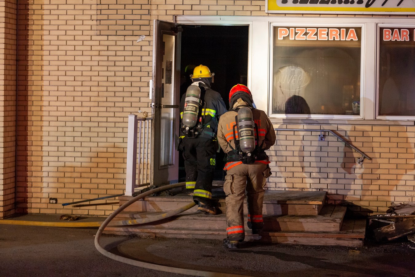 Les pompiers sont entrés dans la pizzeria pour procéder à l'extinction du feu et faire les vérifications d'usages.