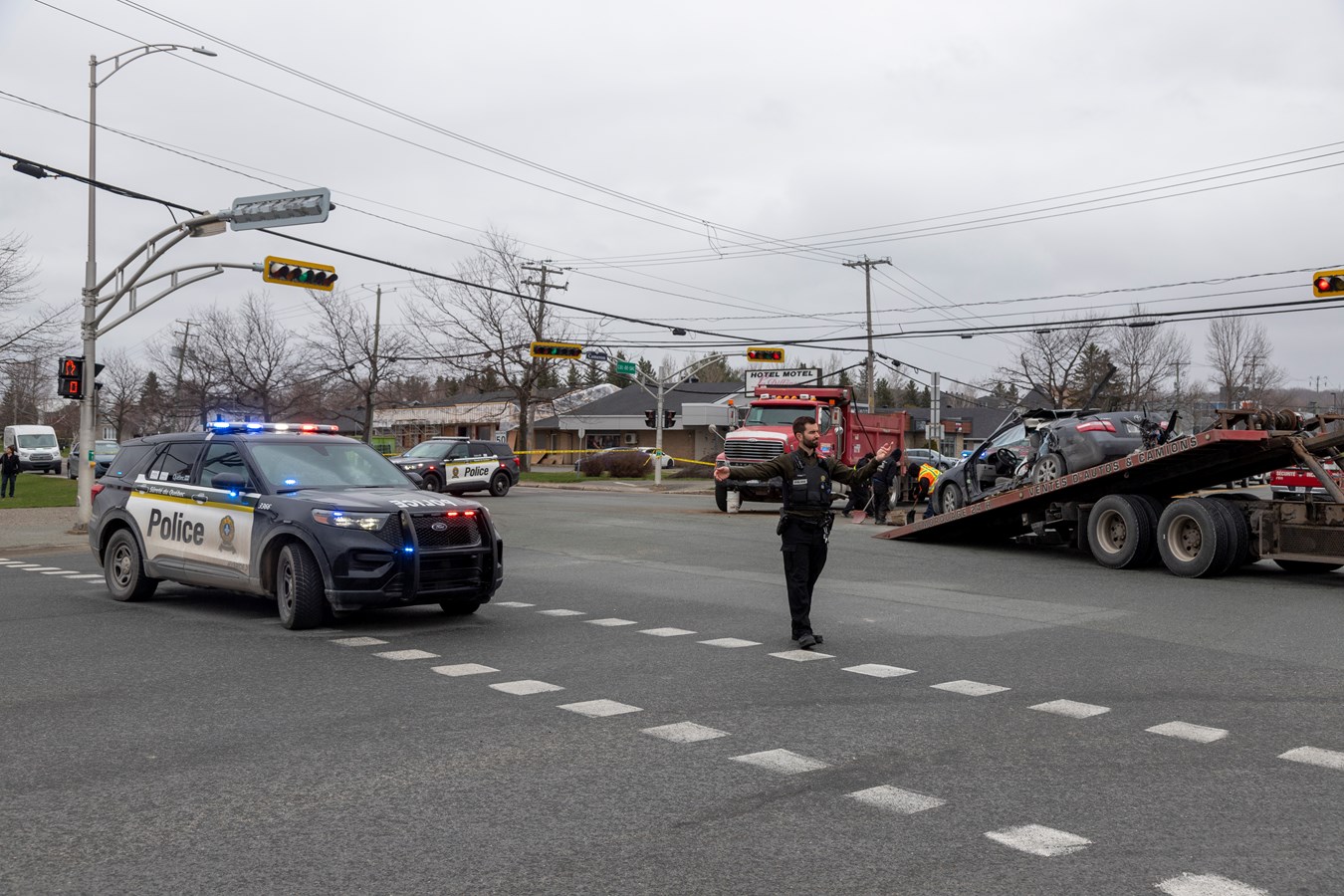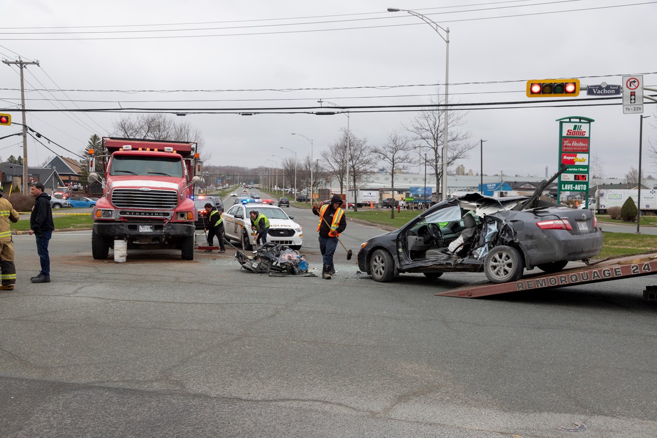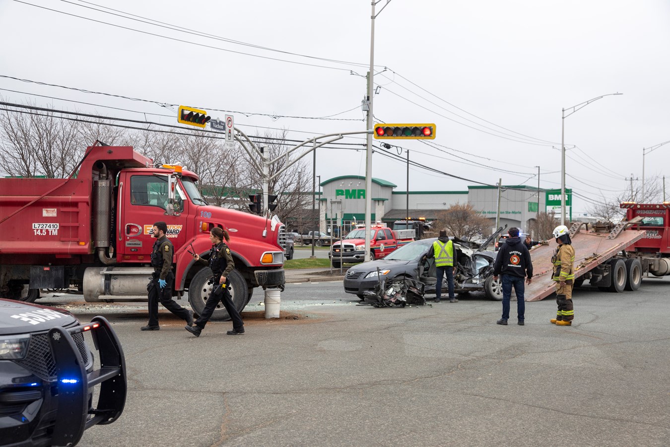 Le Service de sécurité incendie (SSI) de Sainte-Marie est aussi intervenu sur place pour la désincarcération de la personne qui conduisait la voiture. Le directeur du SSI, Serge Fecteau, qui passait par hasard sur les lieux, a constaté que la porte de la voiture était brisée et a pu facilement confirmer la nécessité des pinces de désincarcération avant même que l'appel entre à la caserne. Grâce à son intervention, le sauvetage a été plus rapide.