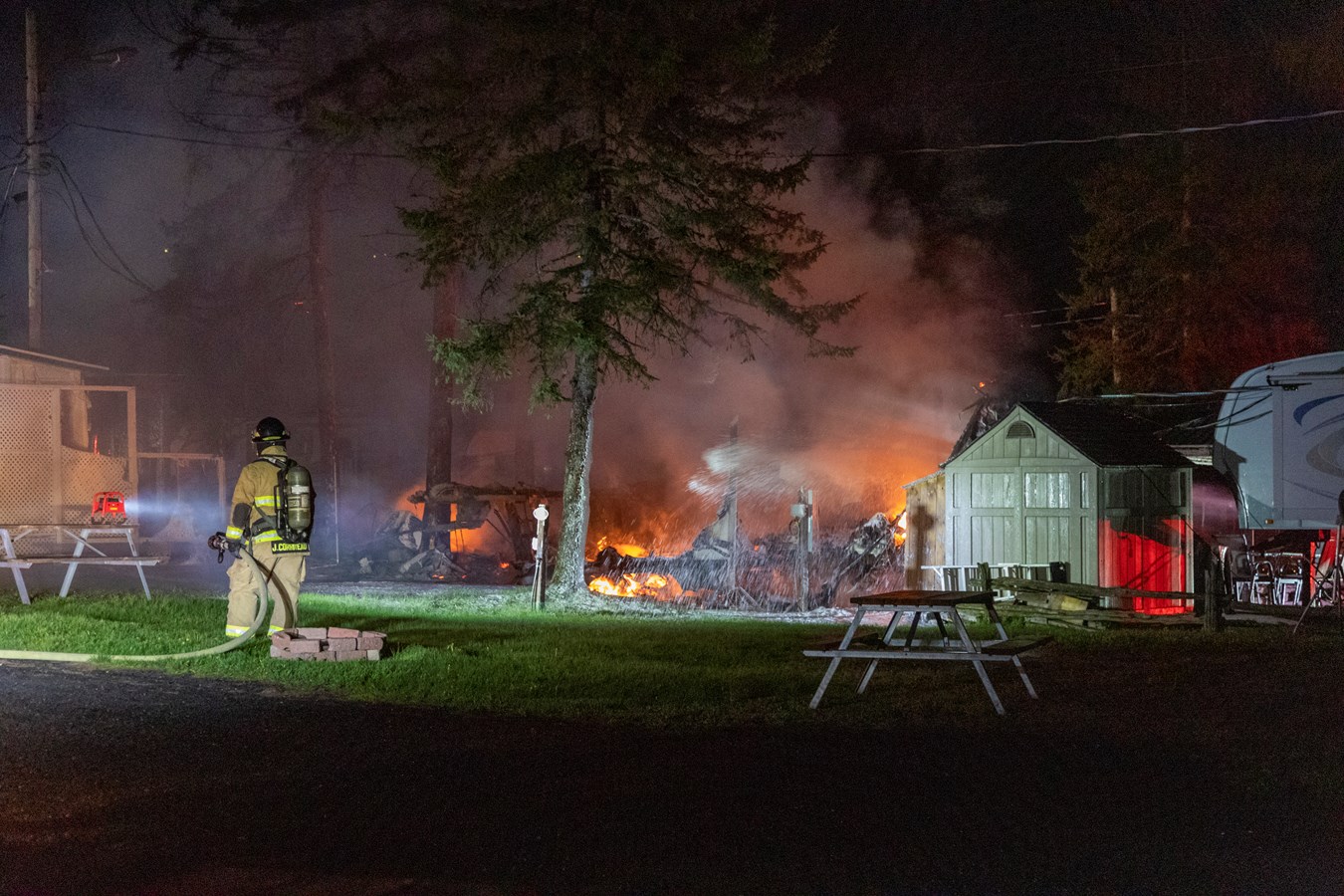Arrivé sur place, les pompiers ont pu découvrir une roulotte complètement embrasée qui menaçait également les roulottes voisines. Selon Frédéric Morin, chef de division aux opérations, les pompiers ont dû mettre en place une approche défensive à cause de la présence de bonbonne de propane à l'intérieur de la roulotte.