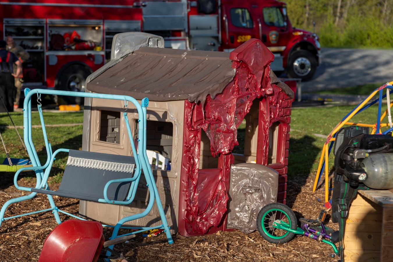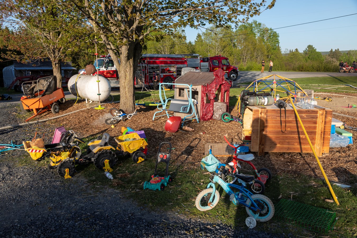 L'intervention n'était plus requise à partir de 21h30. Des dommages ont été notés sur du matériel à l'extérieur, notamment des jeux à proximité qui ont fondu par la chaleur de l'incendie.