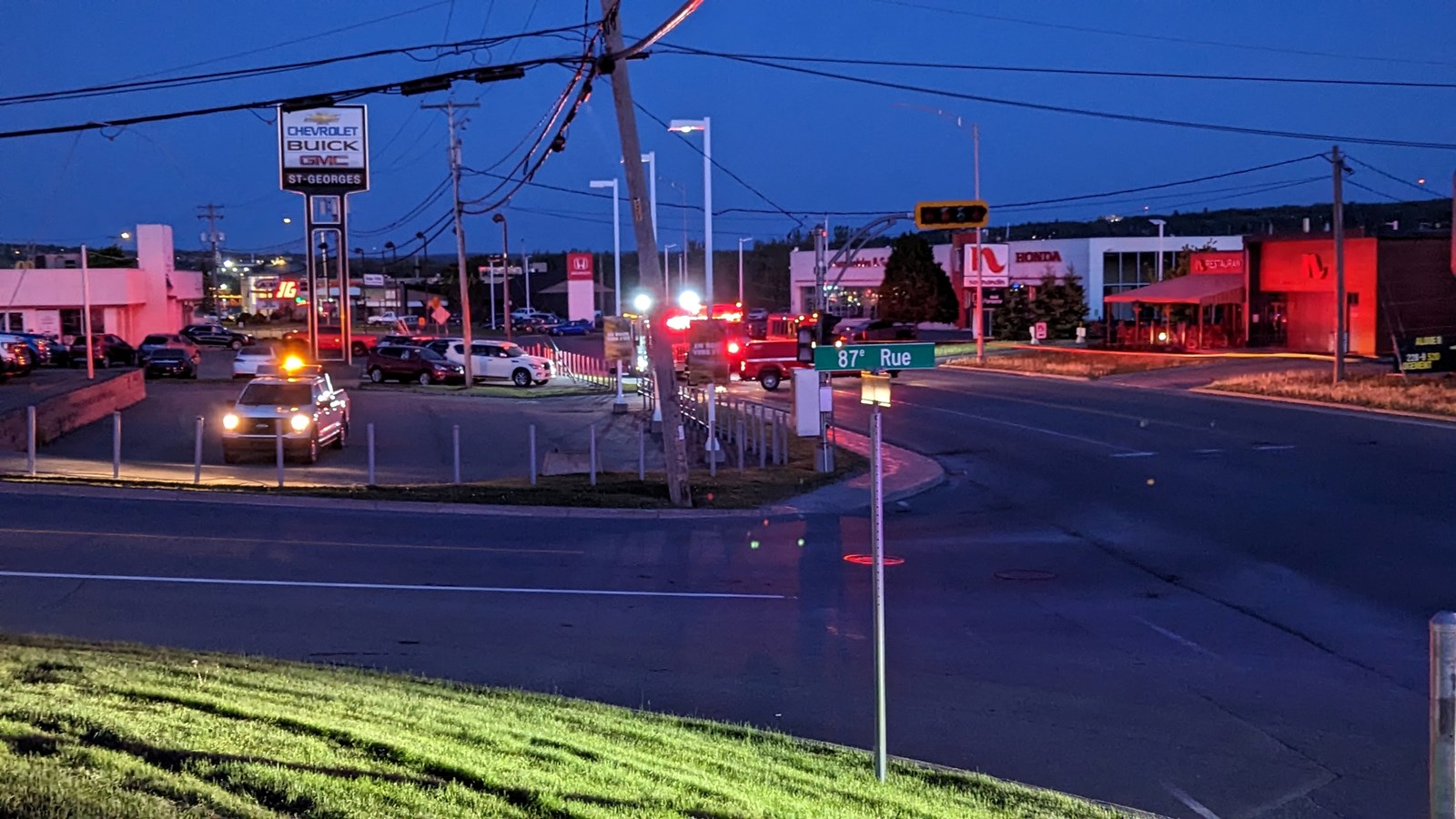 Le Service de sécurité incendie de Saint-Georges a reçu un appel vers 17 h 30 ce dimanche, qui mentionnait qu’un poteau était brisé et qu’un fil électrique serait au sol. Sur place, les pompiers ont constaté que c’était plusieurs poteaux qui étaient endommagés avec plusieurs fils tombés entre le boulevard Lacroix et le concessionnaire Toyota dans la 87e rue.