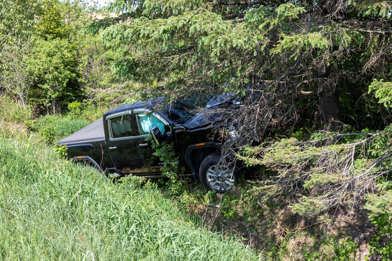 Une camionnette a fait une sortie de route et percuté un arbre. L'incident s'est déroulé dans le 6e rang de la municipalité de Saint-Benoit-Labre, vers 14h45.