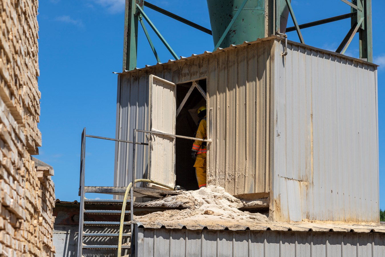 Le Service de sécurité incendie de la municipalité a été appelé pour intervenir sur l'incendie qui se trouvait dans la chambre à bran de scie.