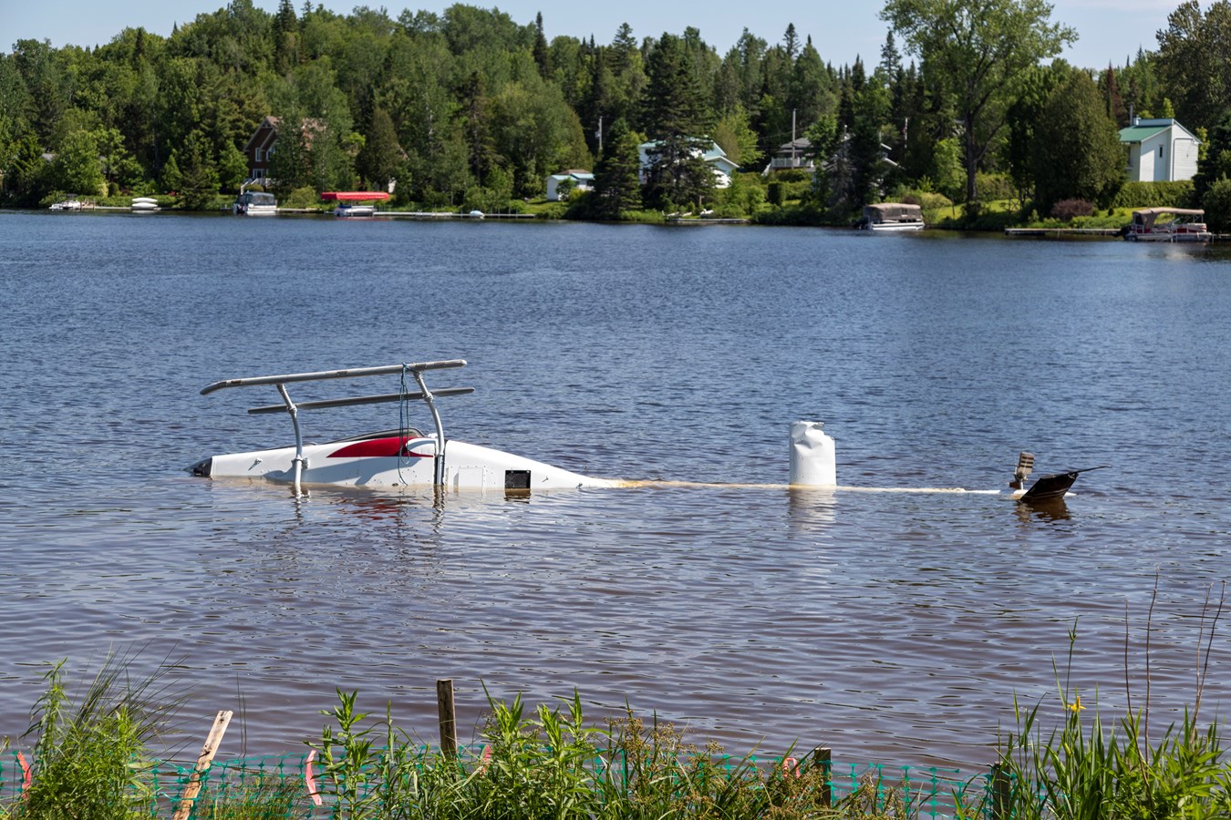 Par ailleurs, le Bureau de la Sécurité des Transports et Urgence Environnement ont été informés de la situation, dans le cas d'un éventuel déversement de liquide de l'appareil dans le lac. Le SSI d'Adstock a également mis en place une procédure de prévention en installant des boudins pour la récupération des hydrocarbures.