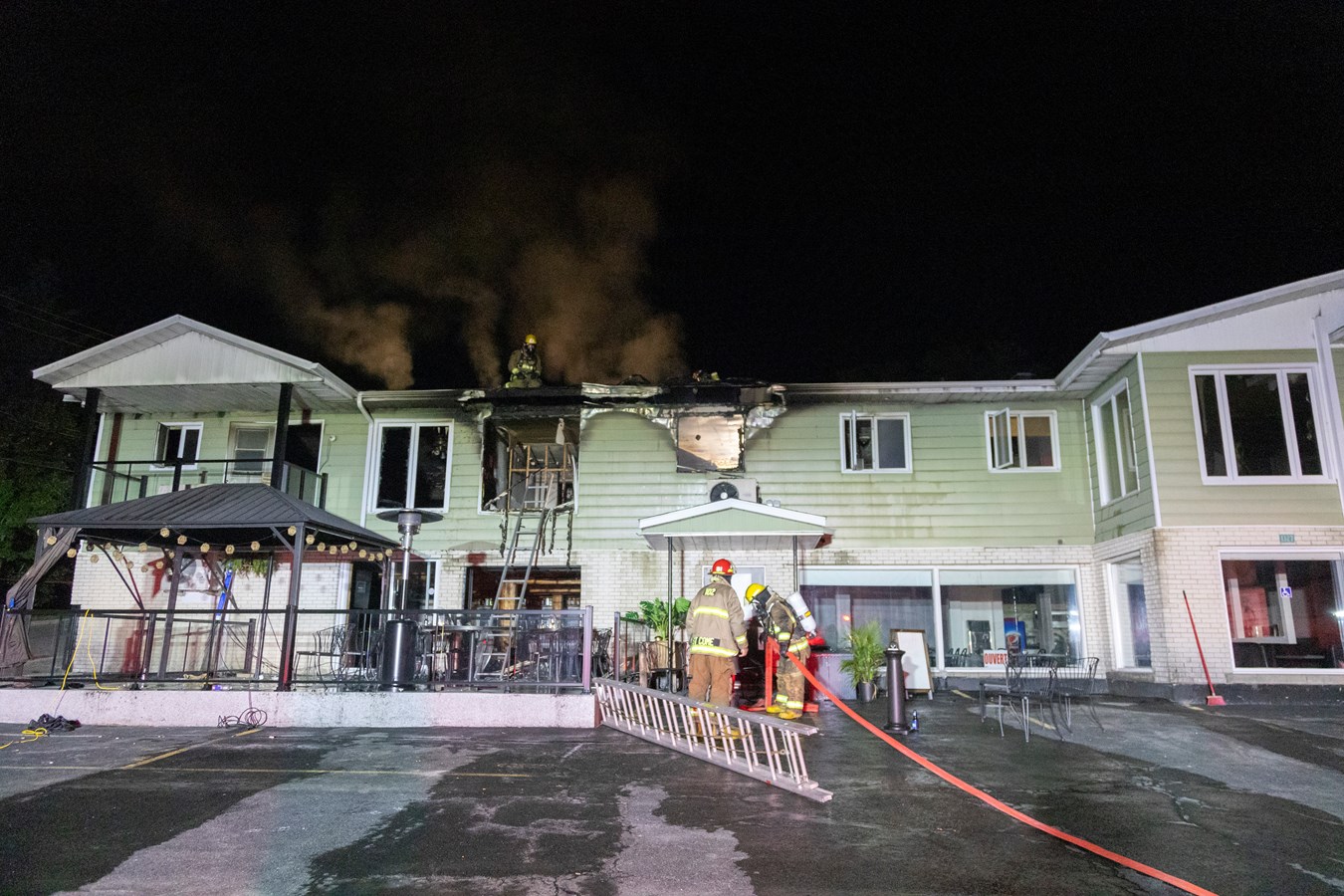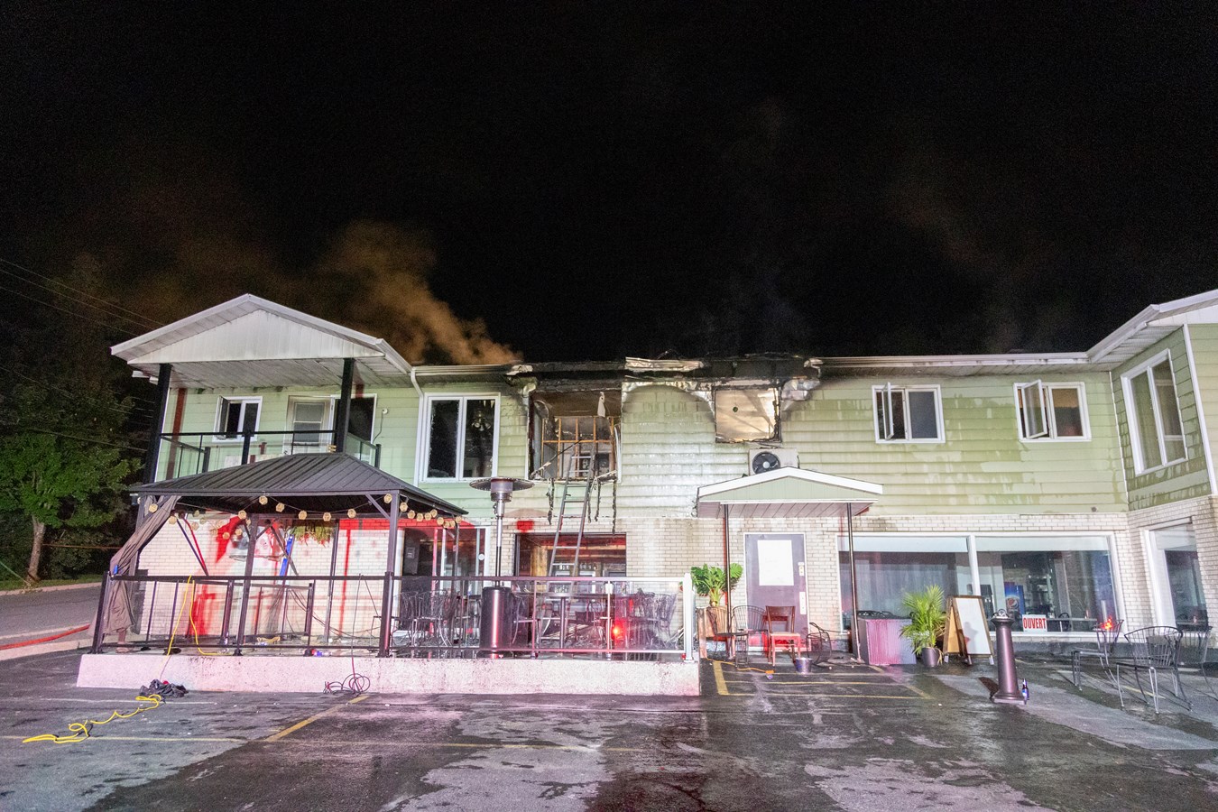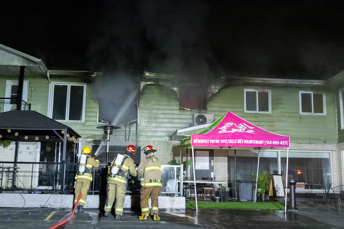 Une quinzaine de clients du bar, dont les occupants du logement, étaient déjà sortis de l'édifice lorsque les services d'urgence sont arrivés et on ne rapporte aucune blessure.