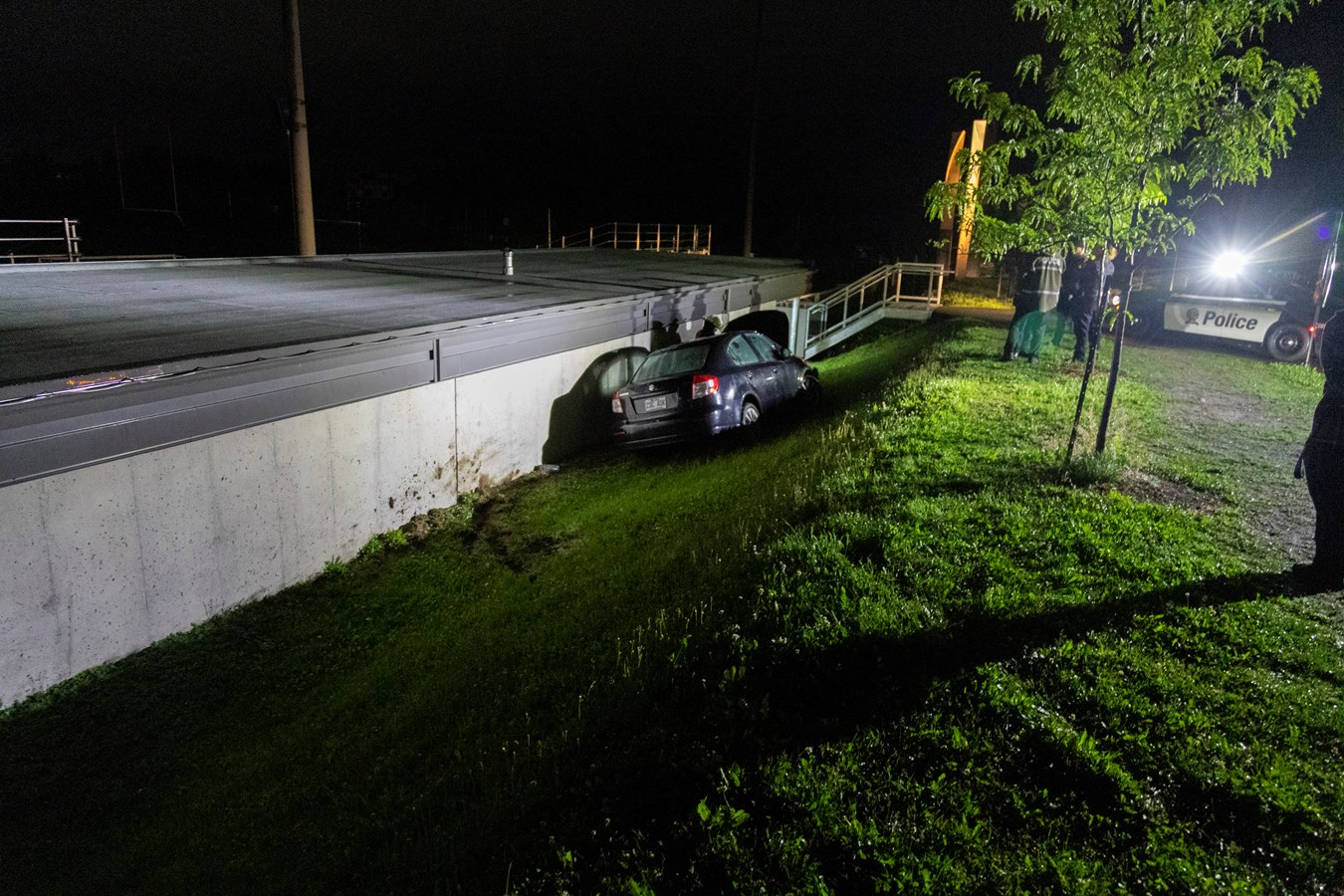 C'est vers 23 h 30 qu'un véhicule a percuté un bâtiment du Cégep Beauce-Appalaches, près du terrain synthétique. Deux ambulances Cambi de Saint-Georges ont été appelé à une vérification sur les lieux, dont l'incident impliquait cinq personnes.