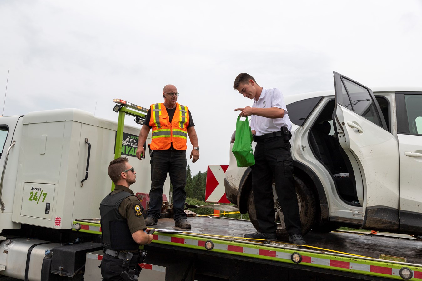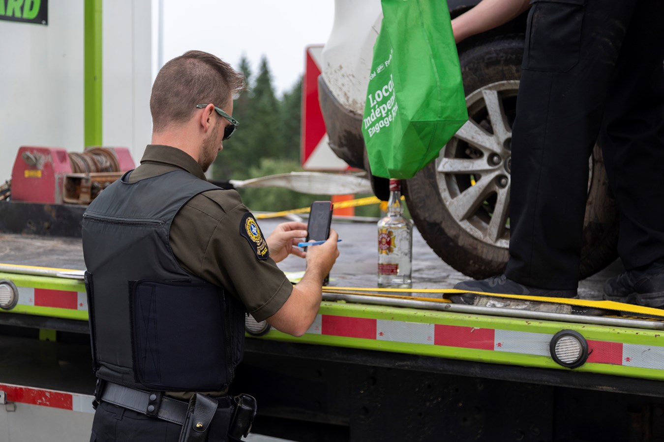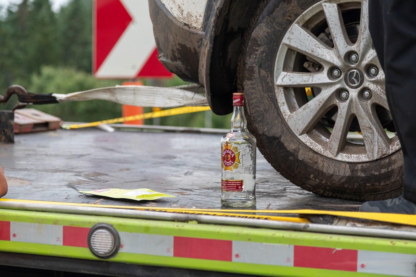 Les policiers de la MRC Beauce-Centre ont pris charge le conducteur. Ce dernier fait l'objet d'une arrestation pour conduite avec facultés affaiblies. Une bouteille d'alcool fort aurait été trouvée dans le véhicule.