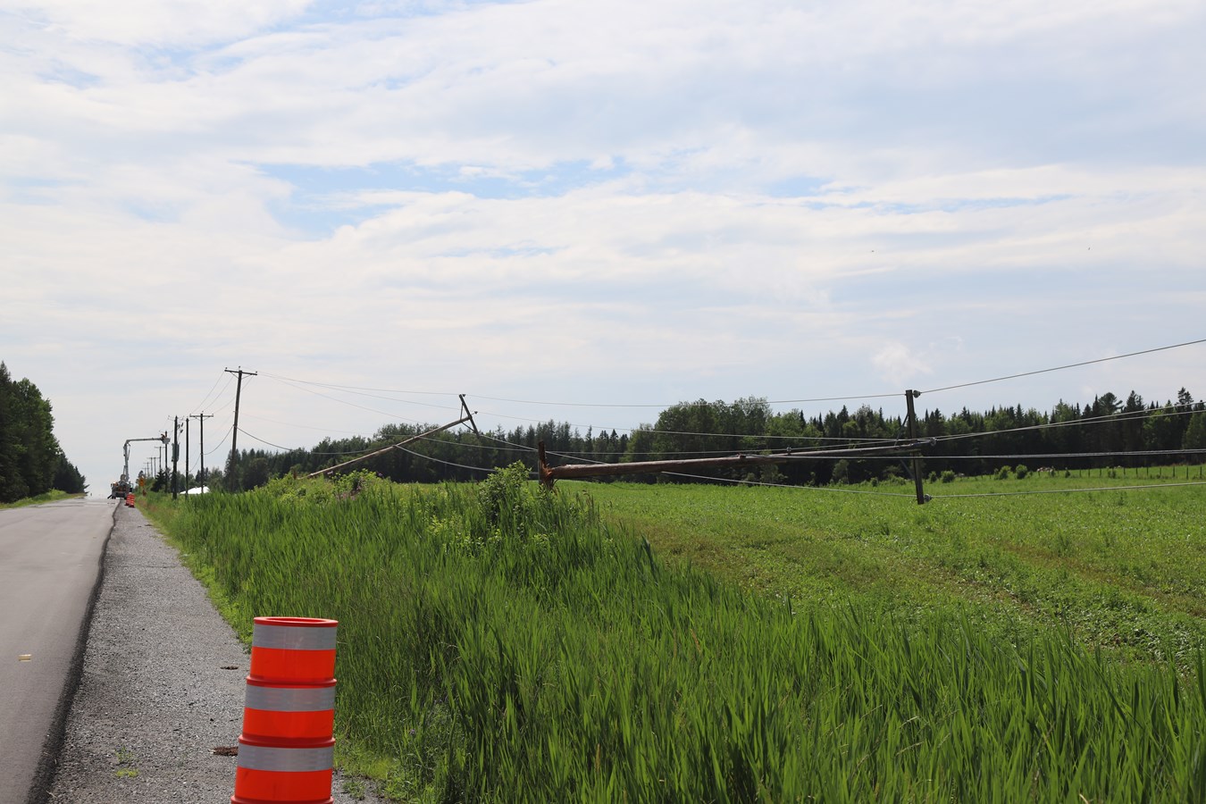 En raison de vents violents plus tôt dans l'après-midi, des installations électriques ont été endommagés à Saint-Joseph-des-Érables. C'est sur la route des Fermes que quatre poteaux sont tombés.