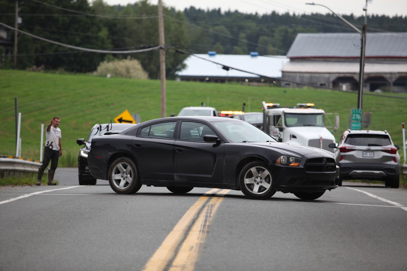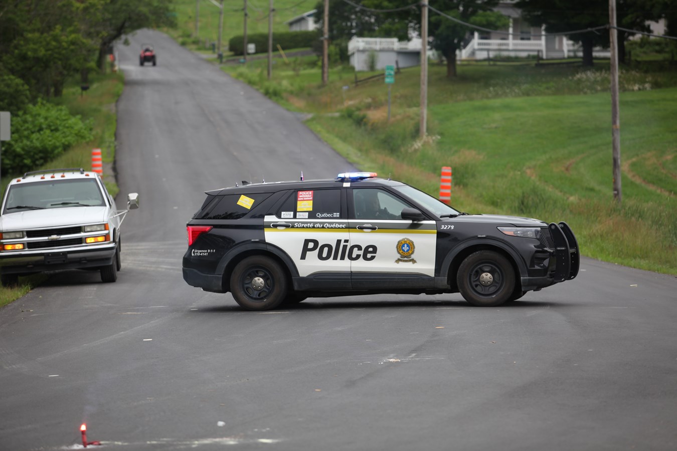 Cette même journée vers 16 h 40, les policiers et les cadets de la Sûreté du Québec du poste de Beauce-Centre ainsi qu'une ambulance du groupe CAMBI se sont déplacés à l'intersection de la route des fermes et le rang des érables pour un face à face entre deux véhicules.
