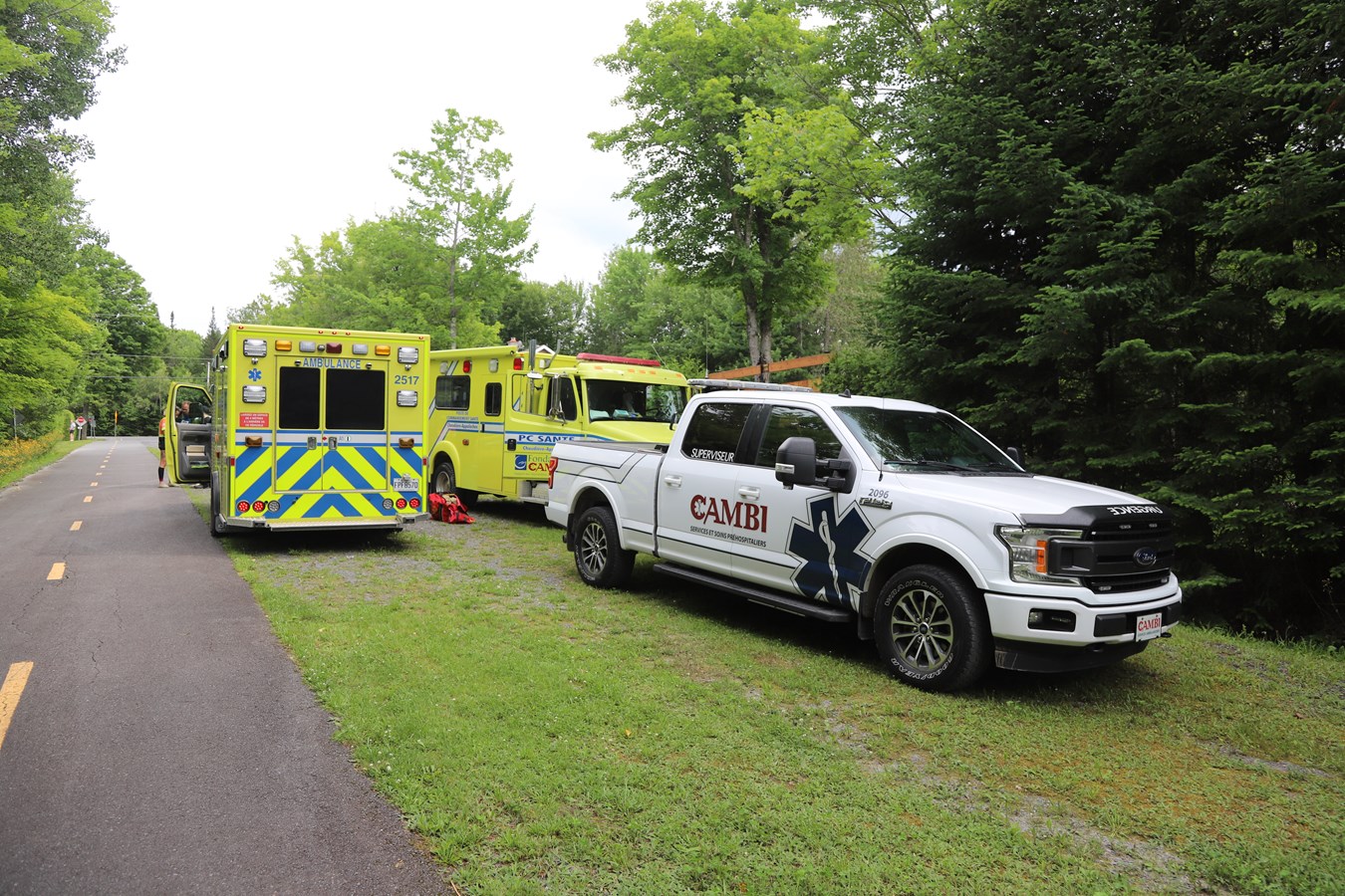 Également un peu plus tôt, vers 15 h, l'équipe de sauvetage et désincarcération du groupe CAMBI a été demandée au Parc des Sept Chutes à Saint-Georges.