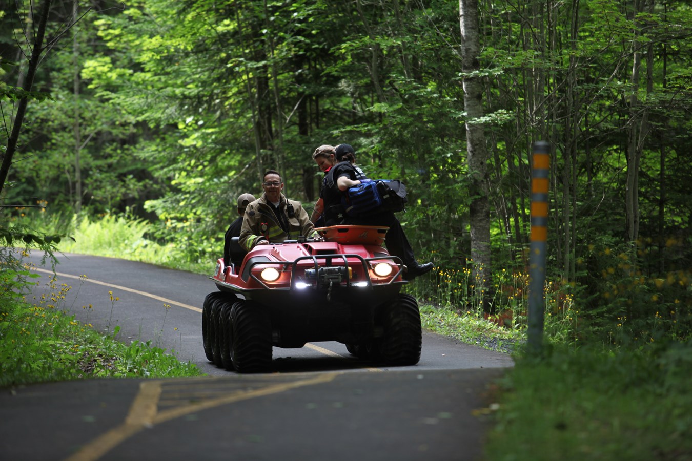Ces derniers sont venus en aide à des jeunes qui faisaient du vélo de montage en dehors des sentiers. Une des personnes du groupe a fait une chute et s'est blessée. Les paramédics ont alors procédé à son évacuation.