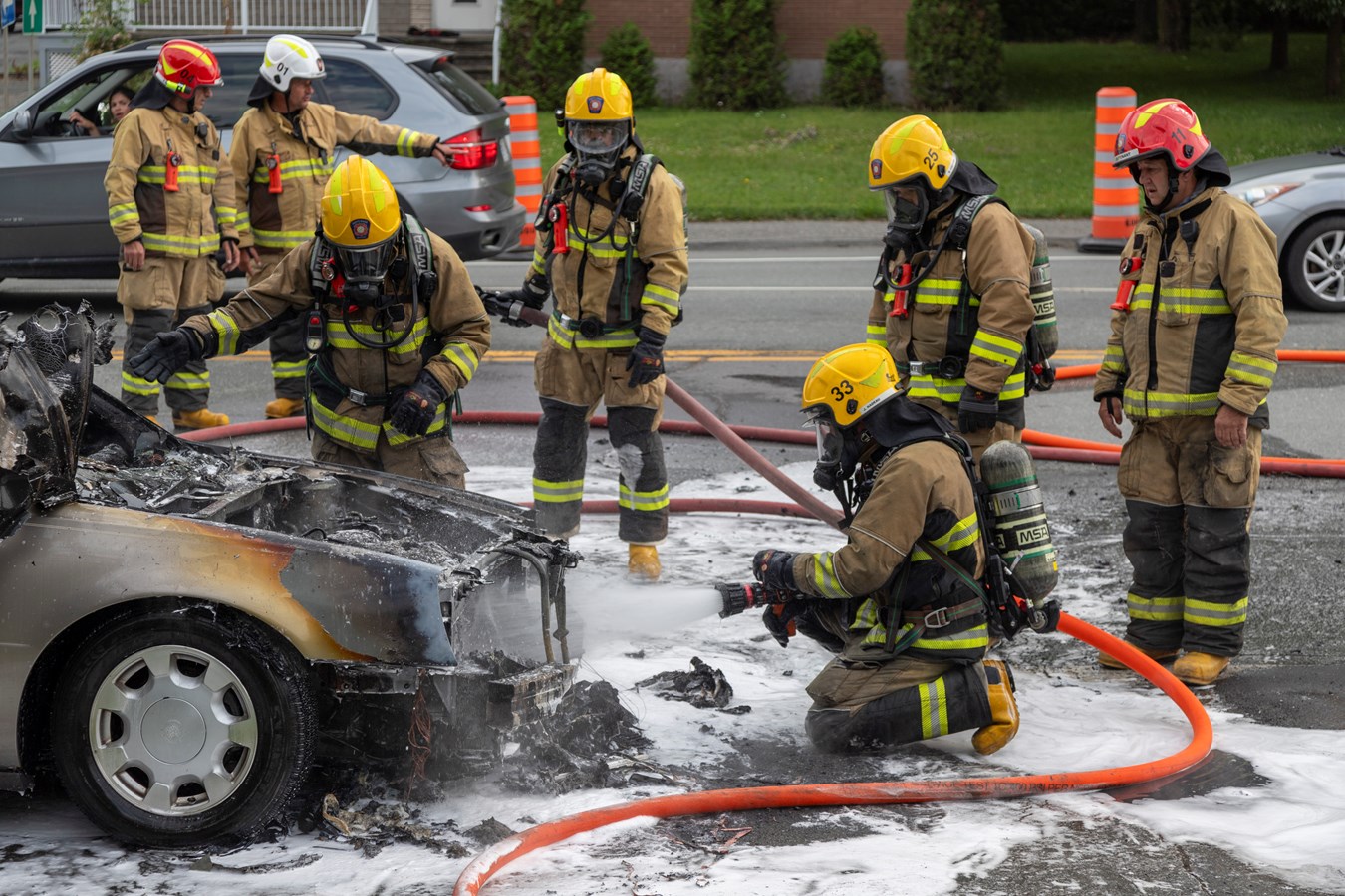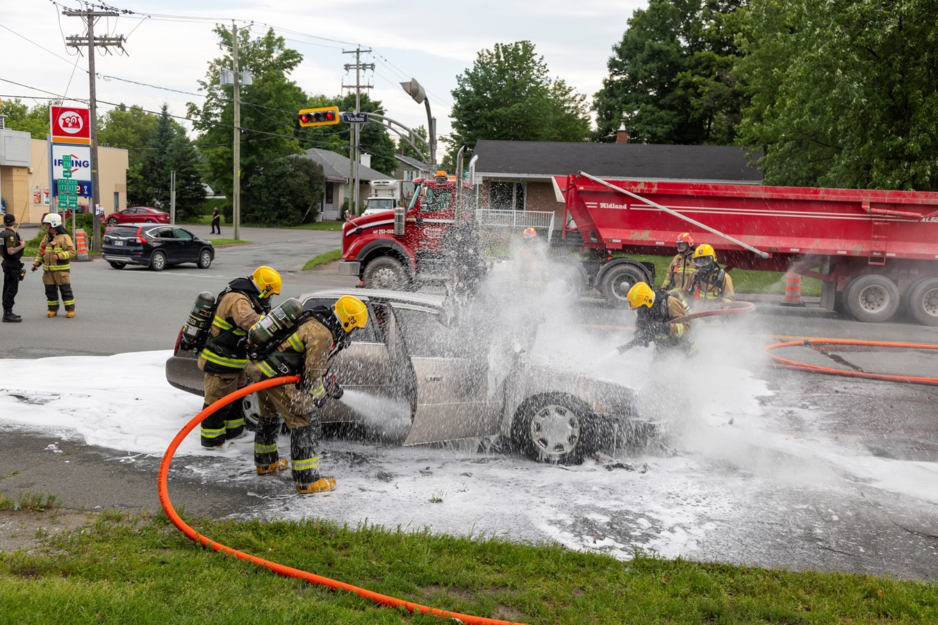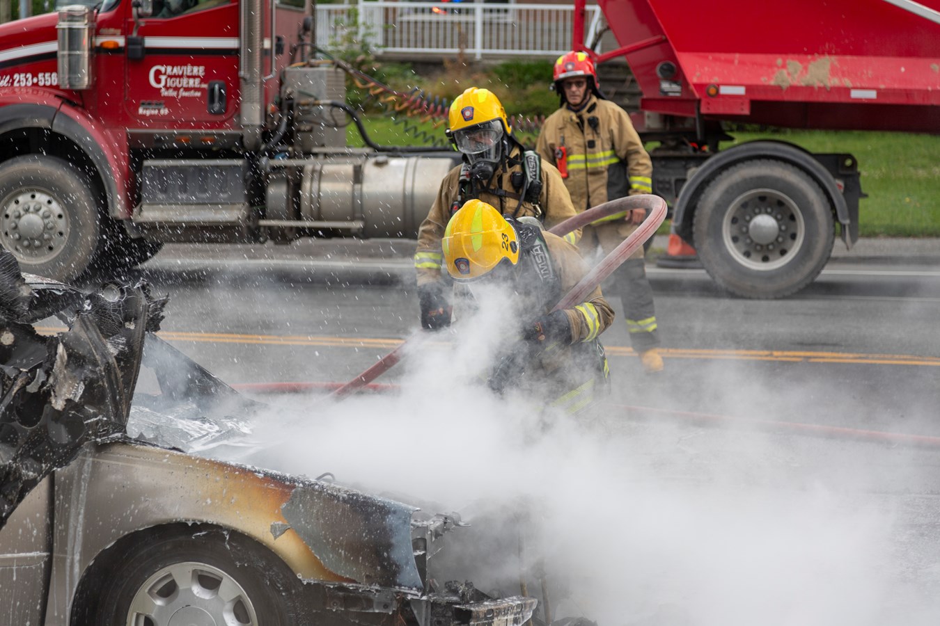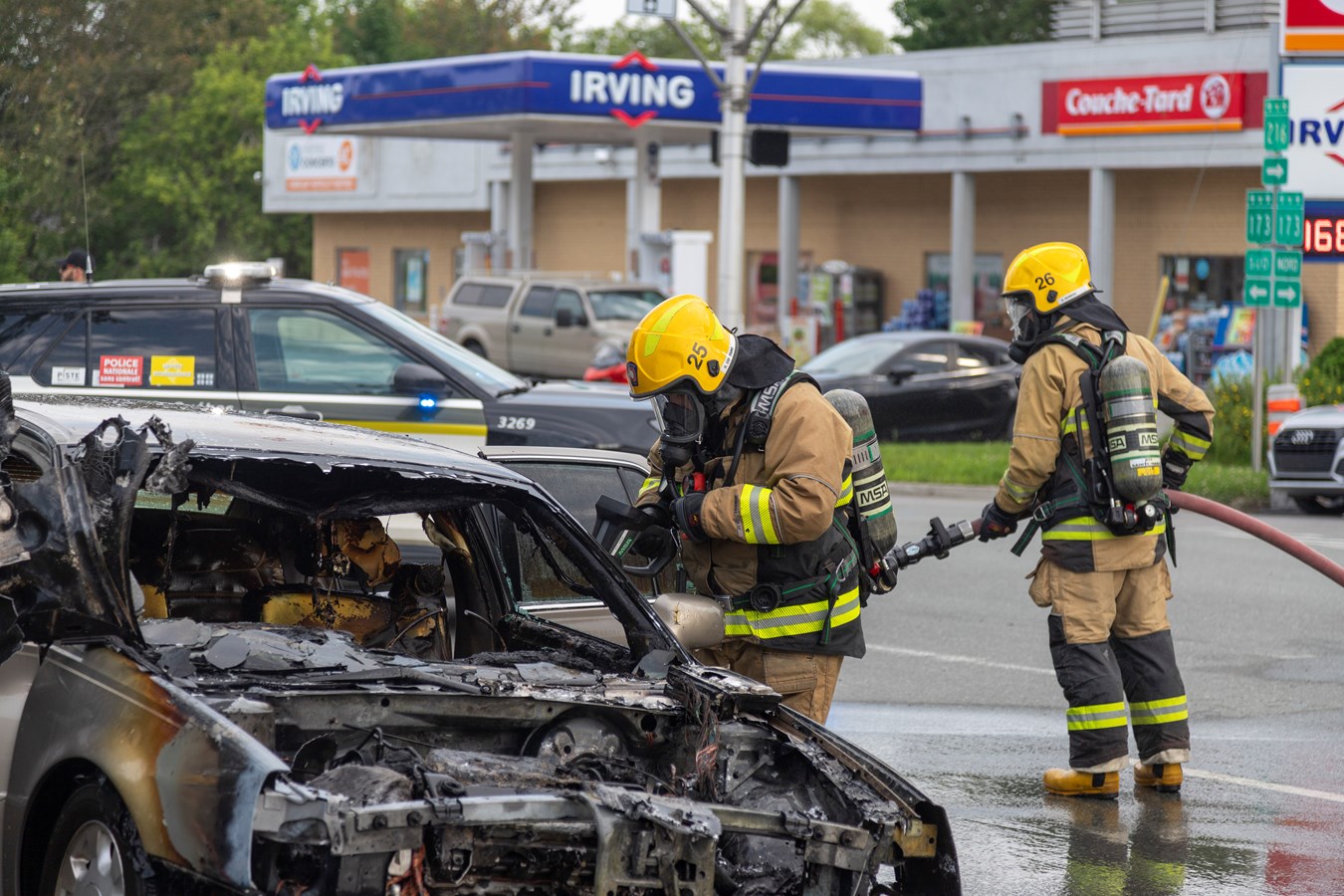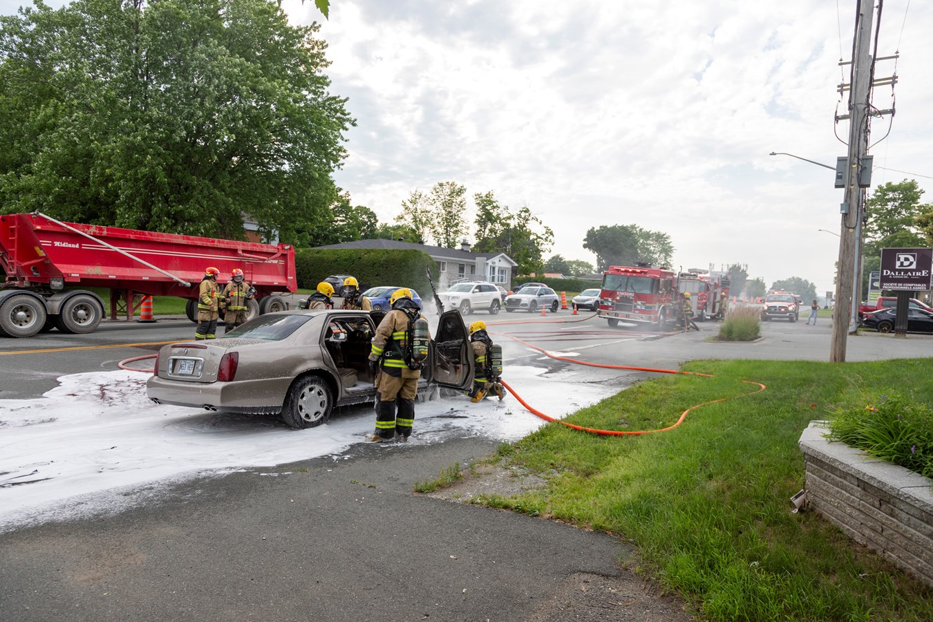 Les pompiers ont procédé à l'extinction de l'auto, pendant que des policiers de la SQ se sont chargés de fermer le Boulevard Vachon Sud. L'intervention a duré près de 45 minutes.