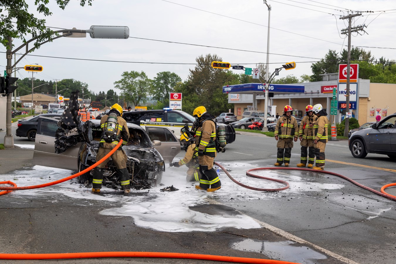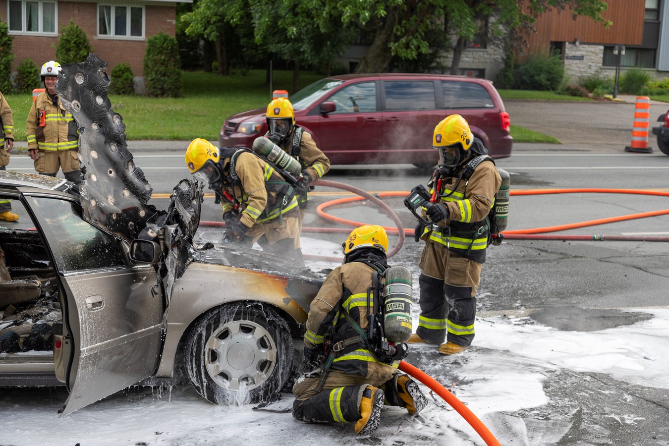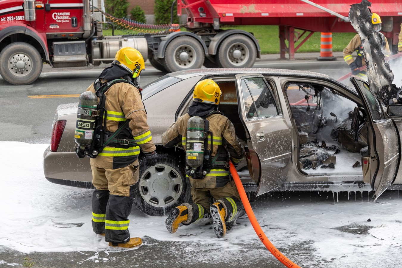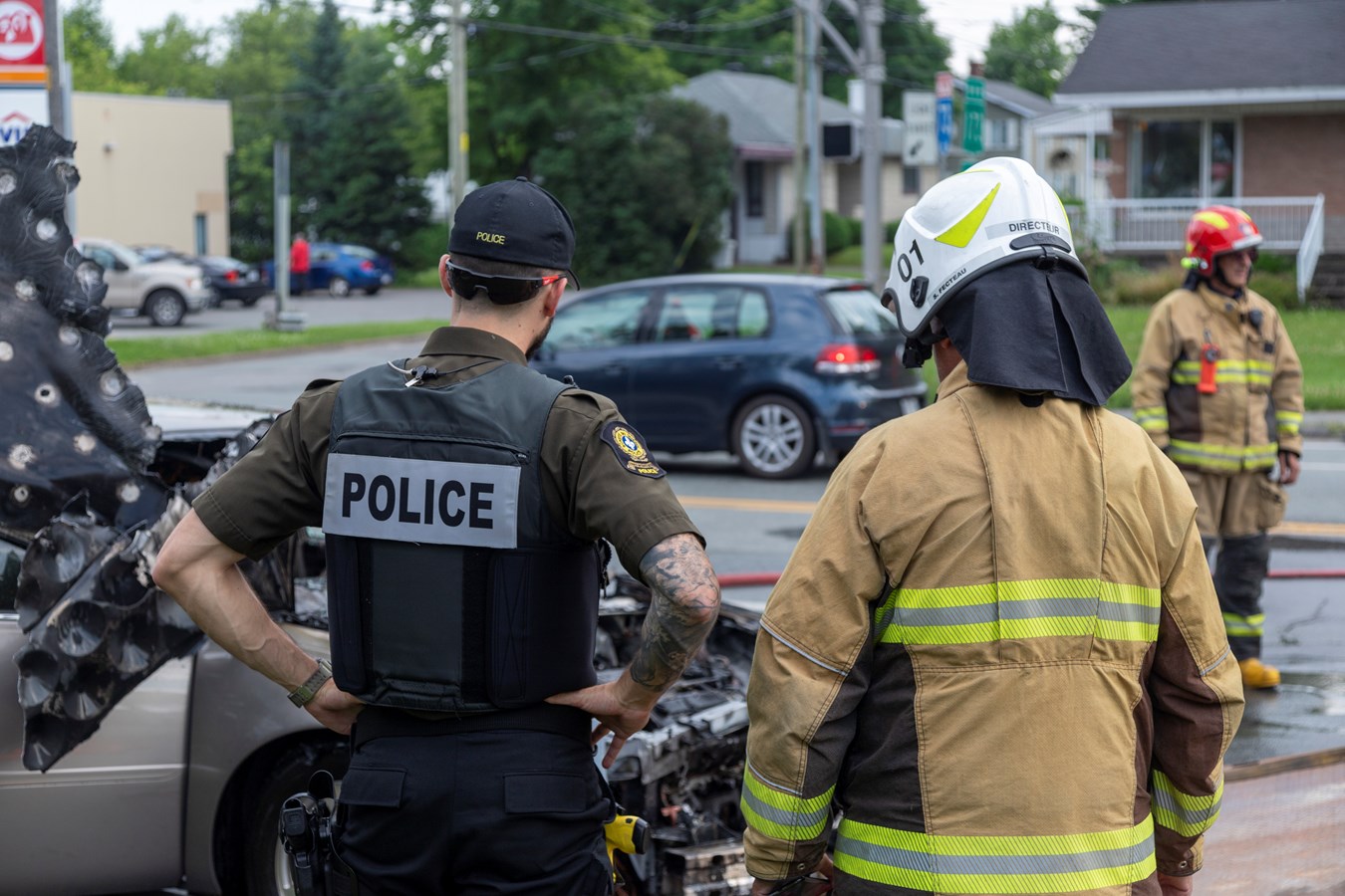 Les pompiers ont procédé à l'extinction de l'auto, pendant que des policiers de la SQ se sont chargés de fermer le Boulevard Vachon Sud. L'intervention a duré près de 45 minutes.