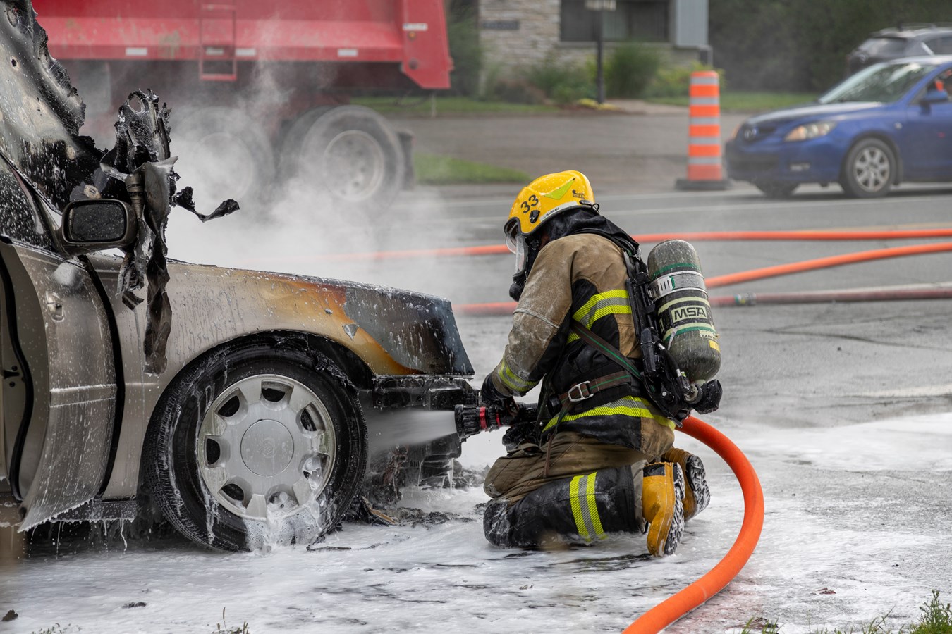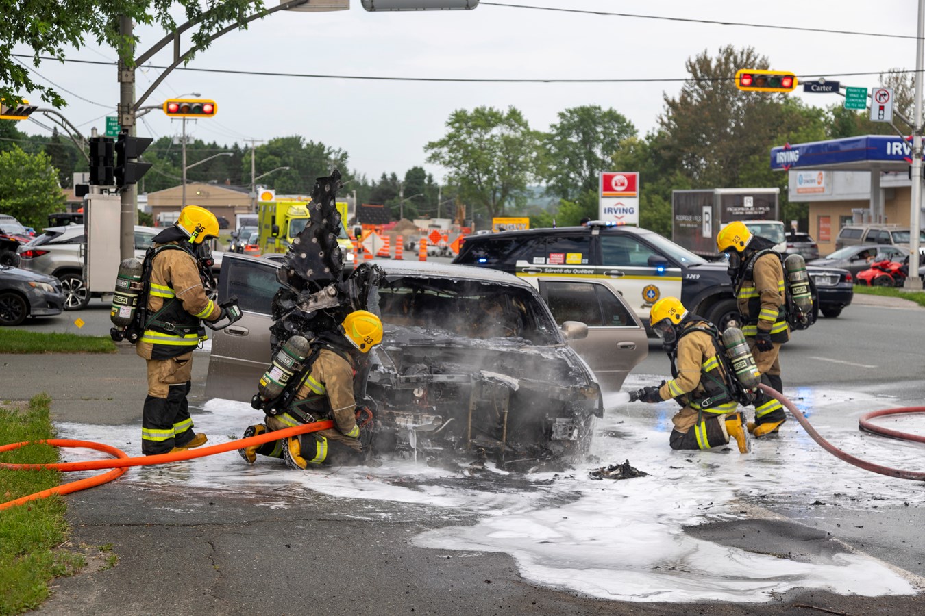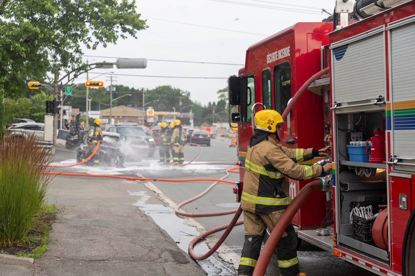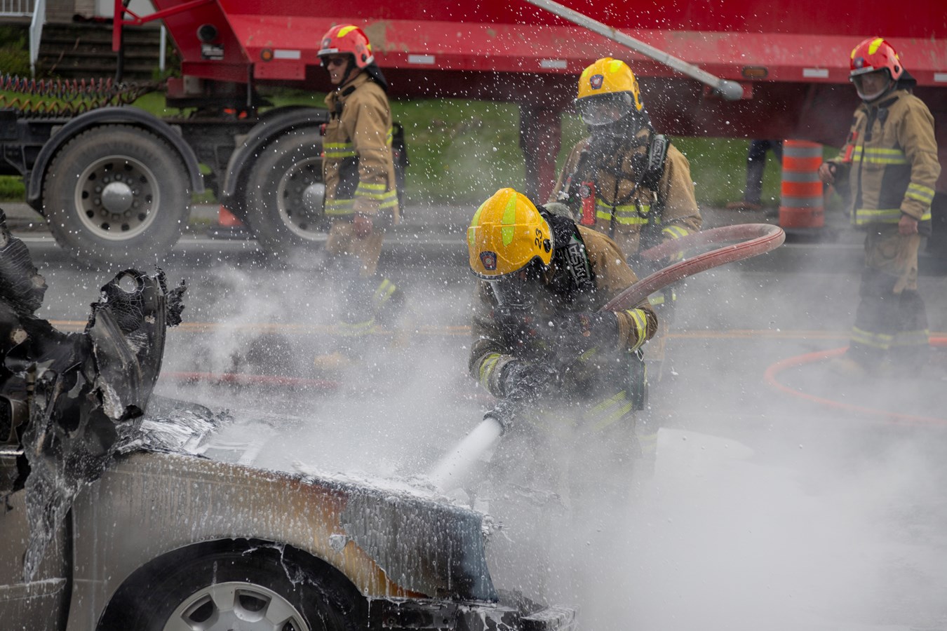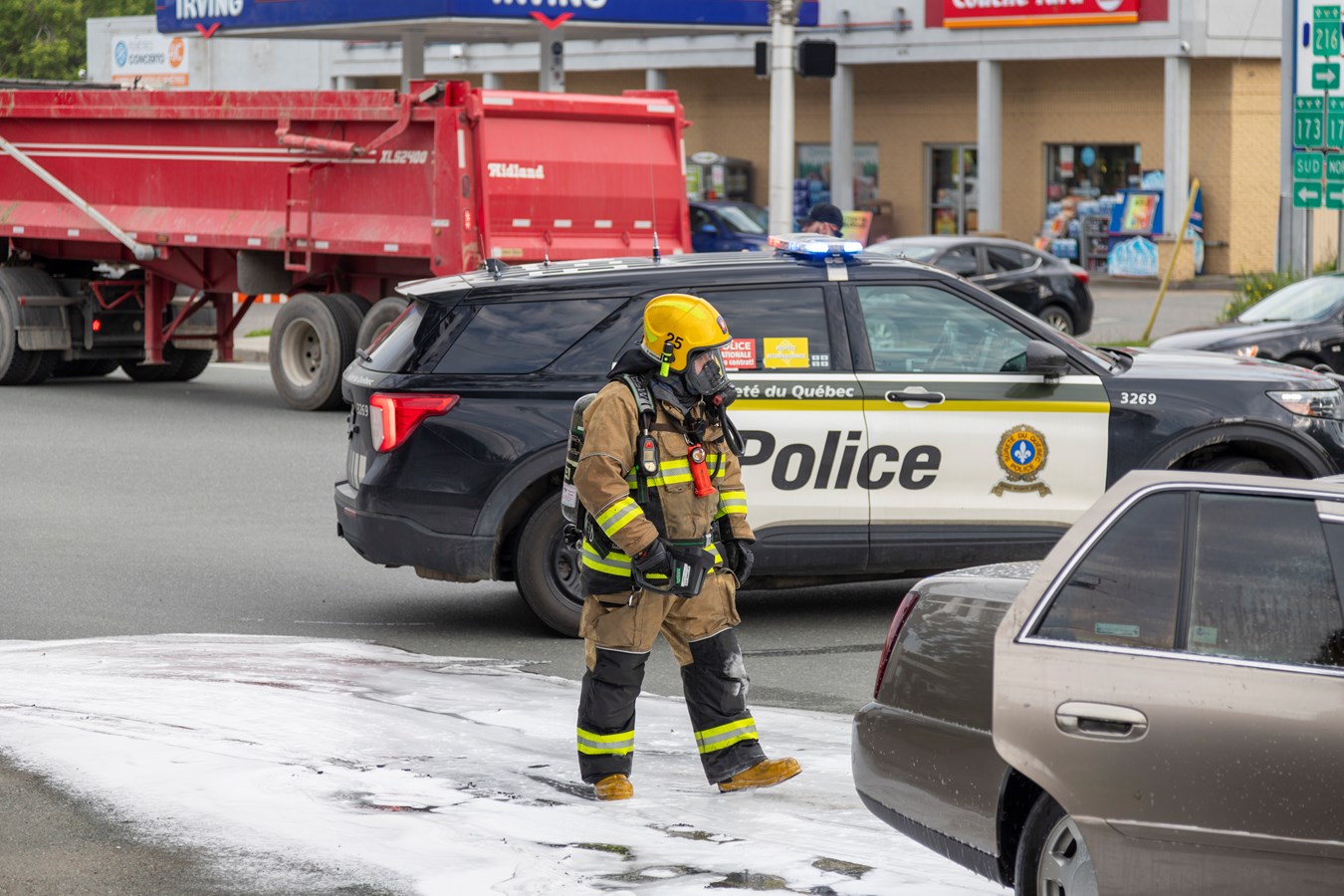 Les pompiers ont procédé à l'extinction de l'auto, pendant que des policiers de la SQ se sont chargés de fermer le Boulevard Vachon Sud. L'intervention a duré près de 45 minutes.