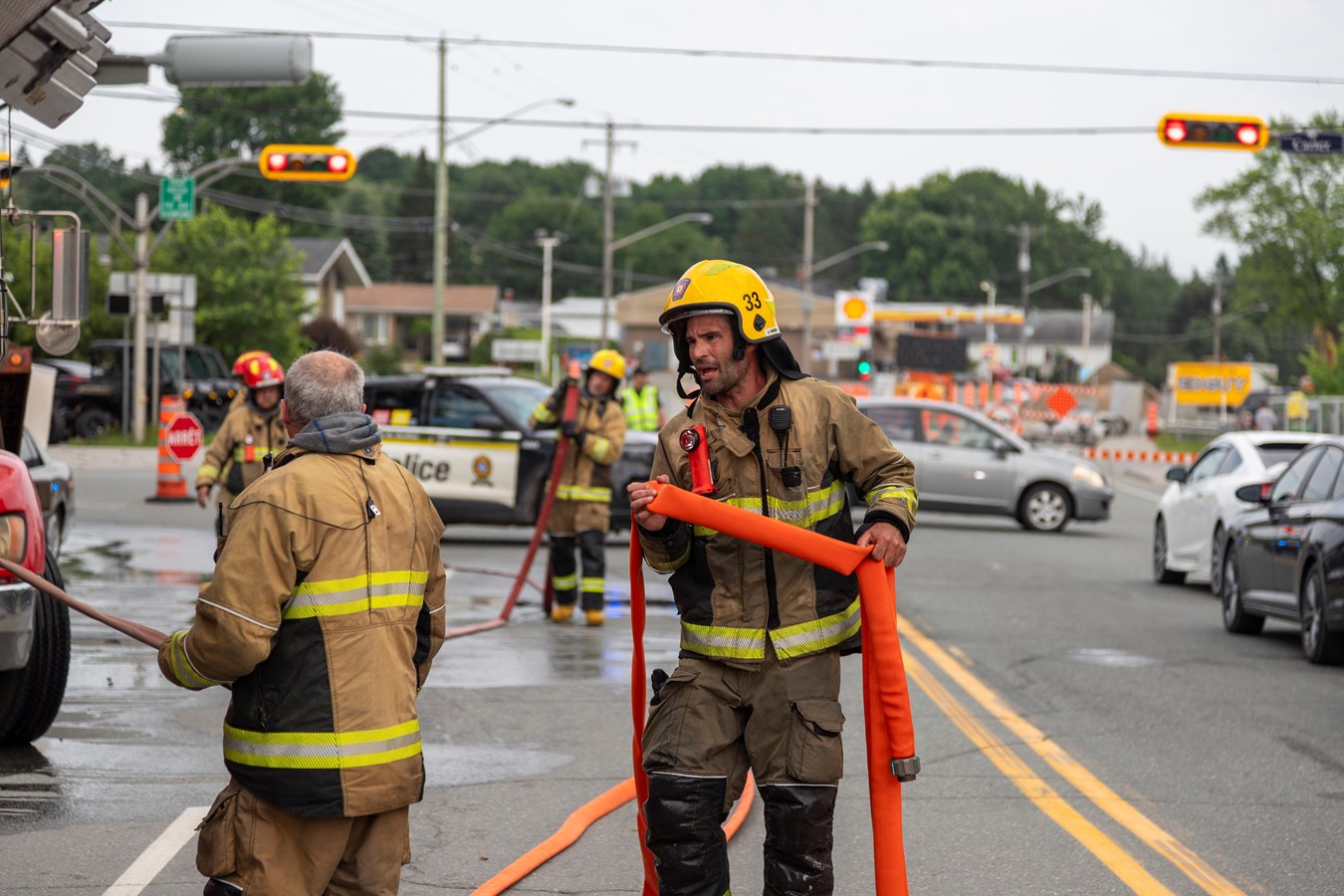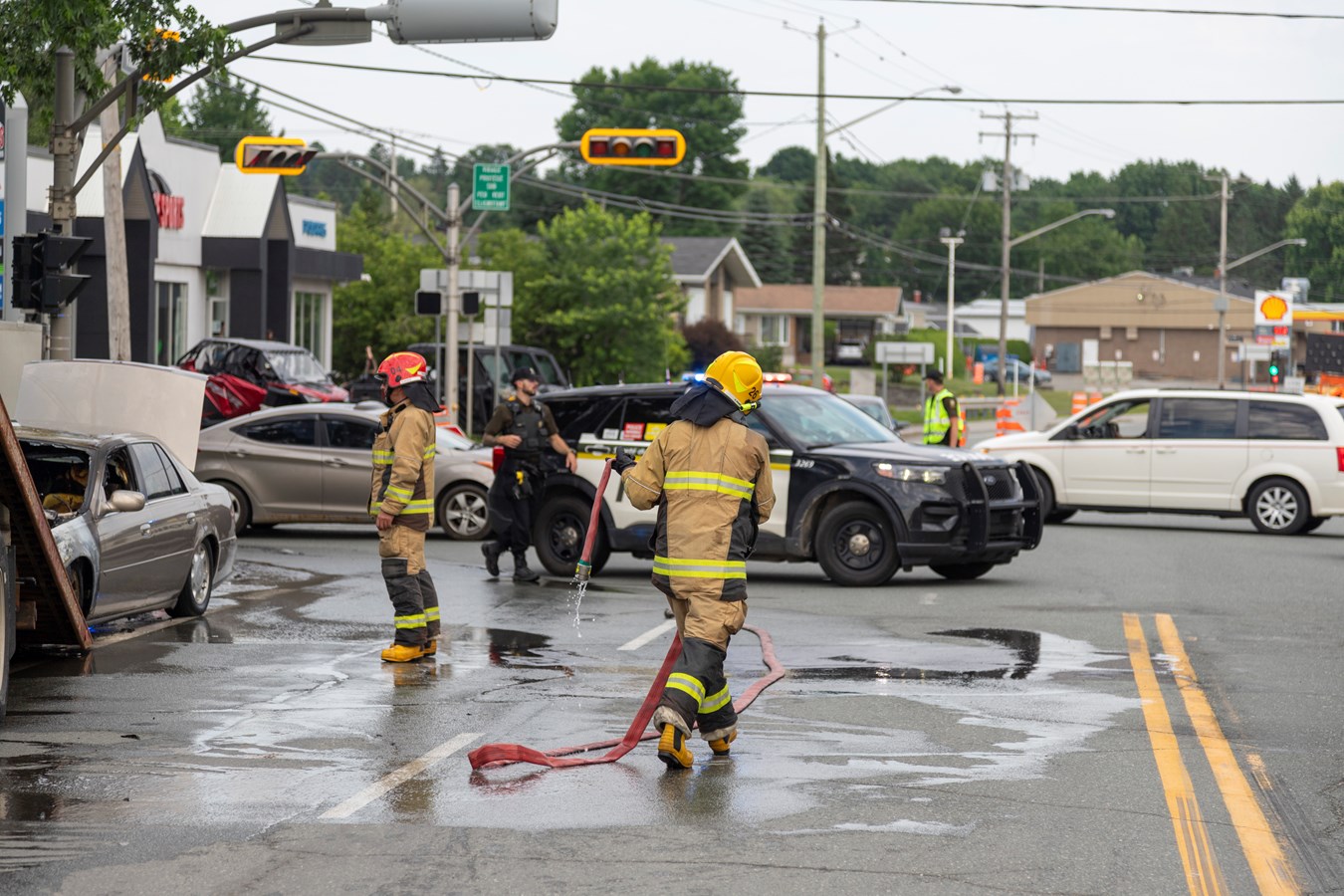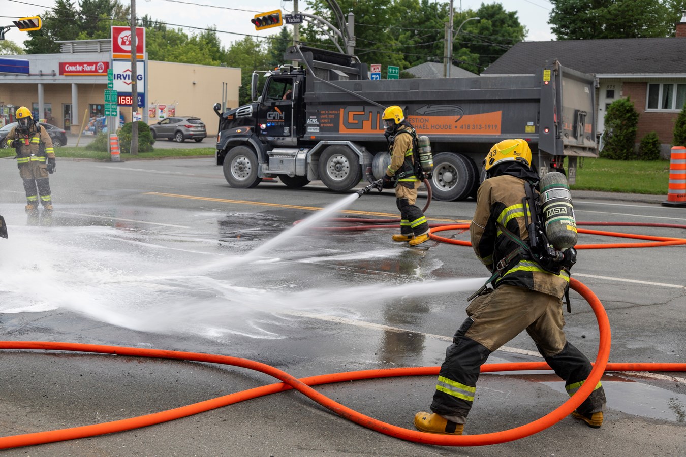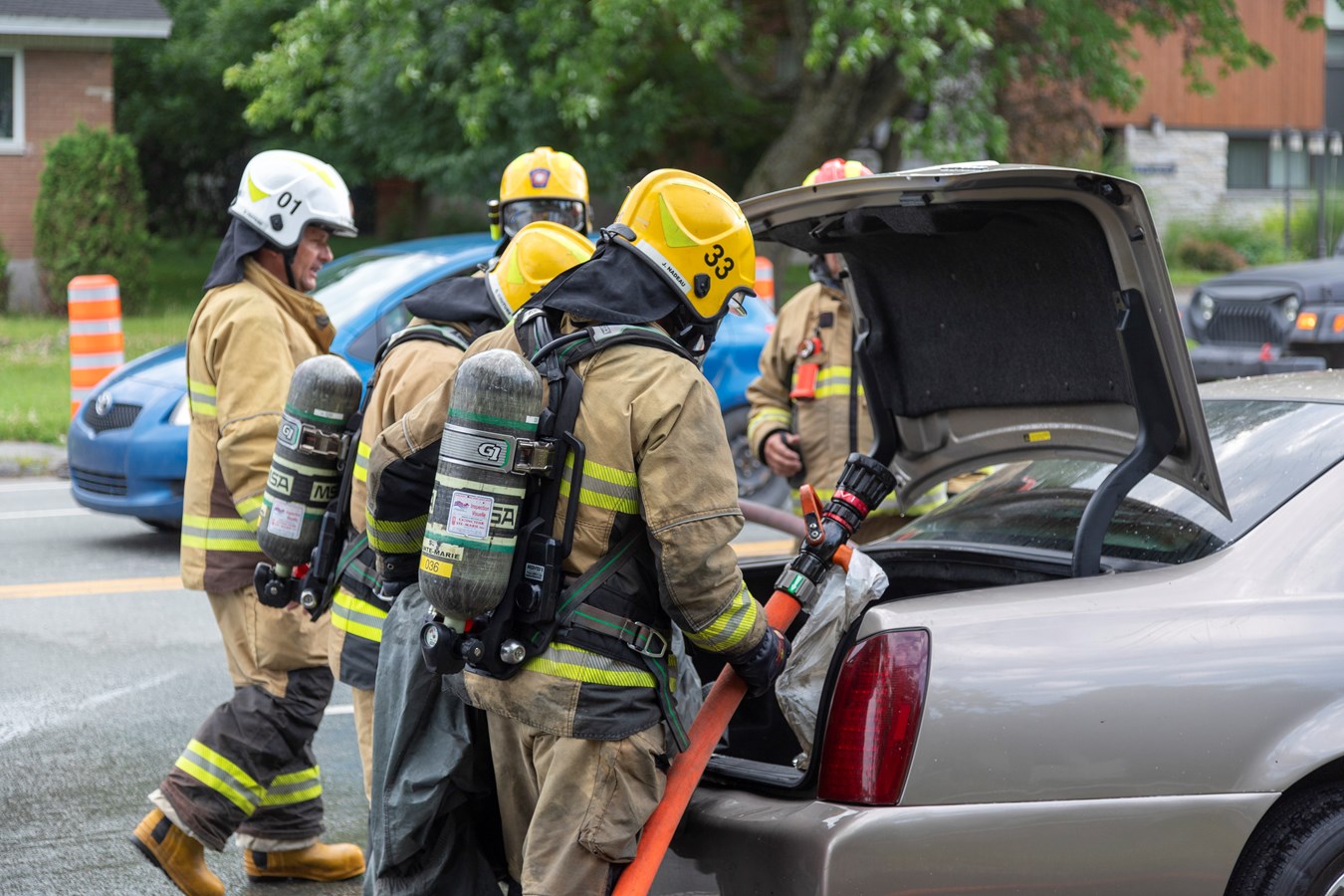 Les pompiers ont procédé à l'extinction de l'auto, pendant que des policiers de la SQ se sont chargés de fermer le Boulevard Vachon Sud. L'intervention a duré près de 45 minutes.