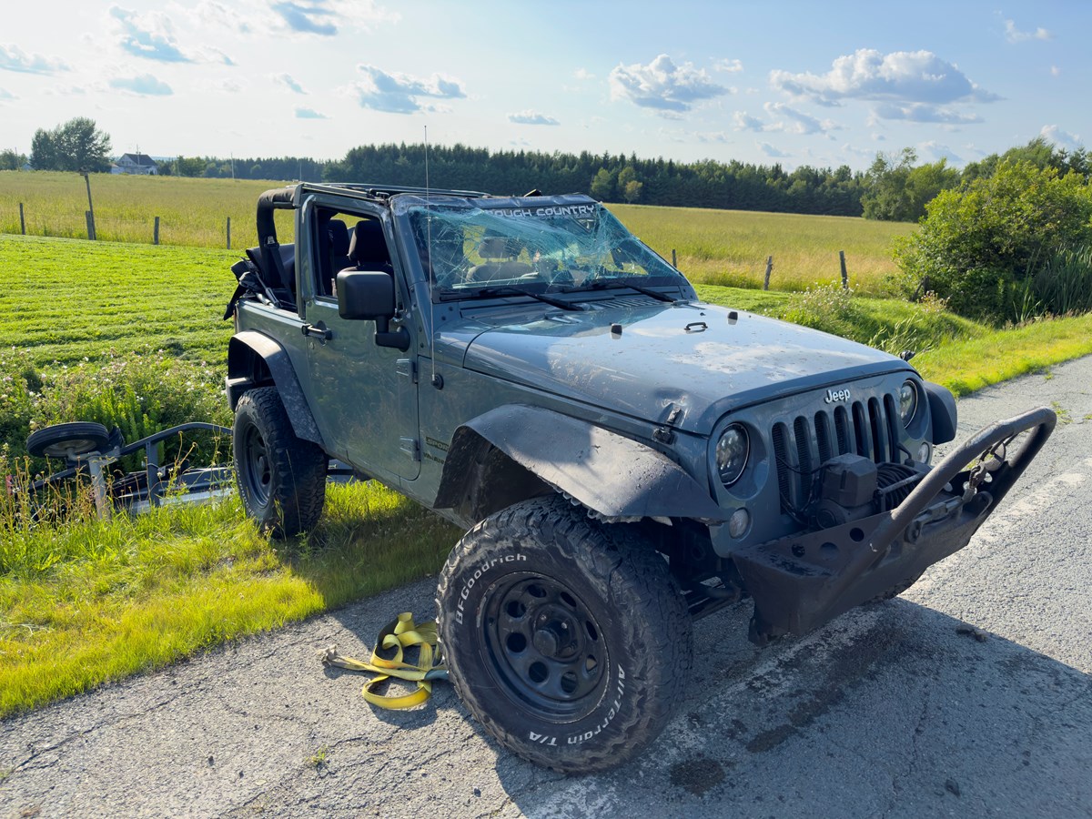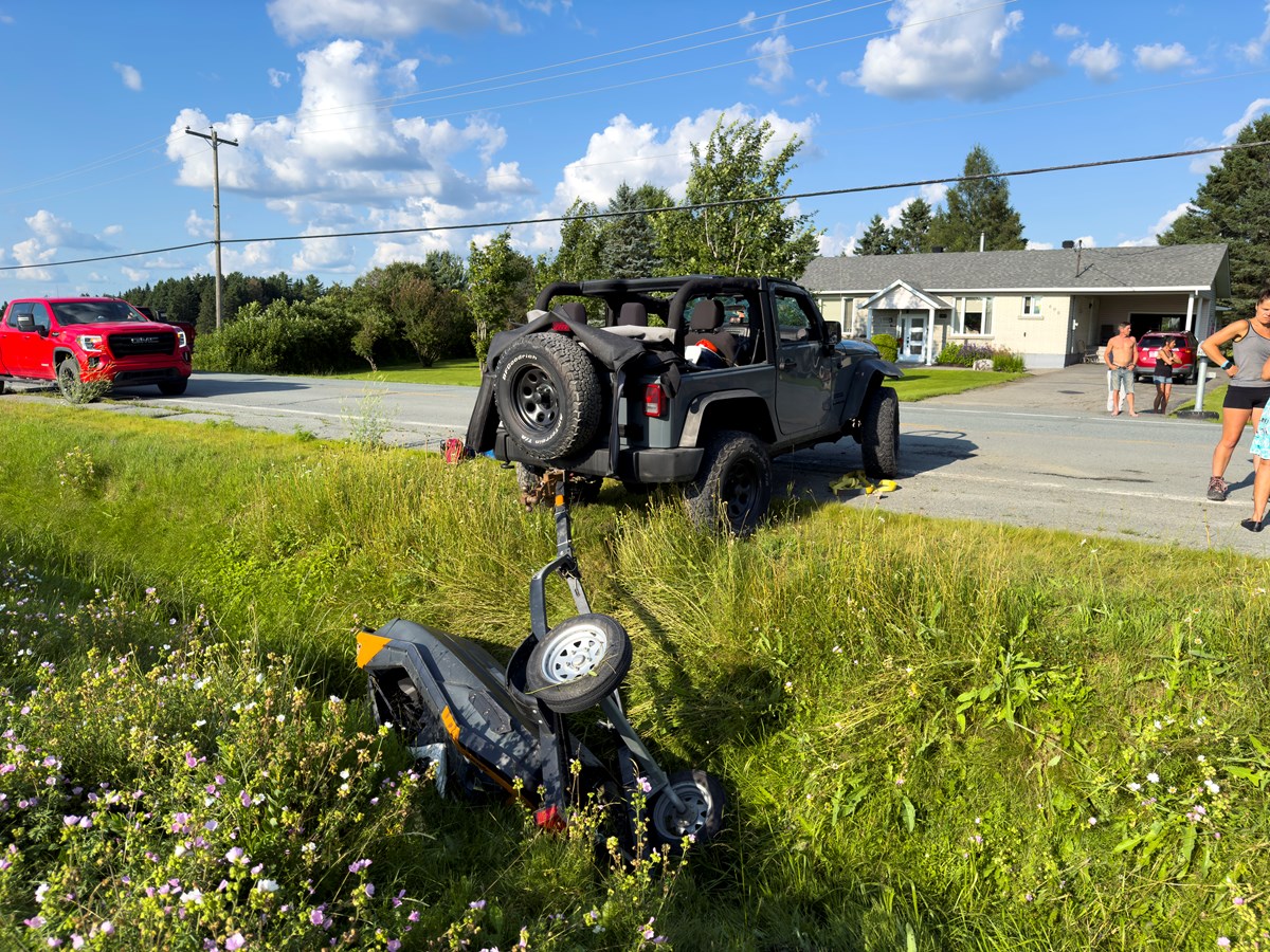 C'est une voiture et un Jeep transportant une motomarine qui sont entrés en collision.