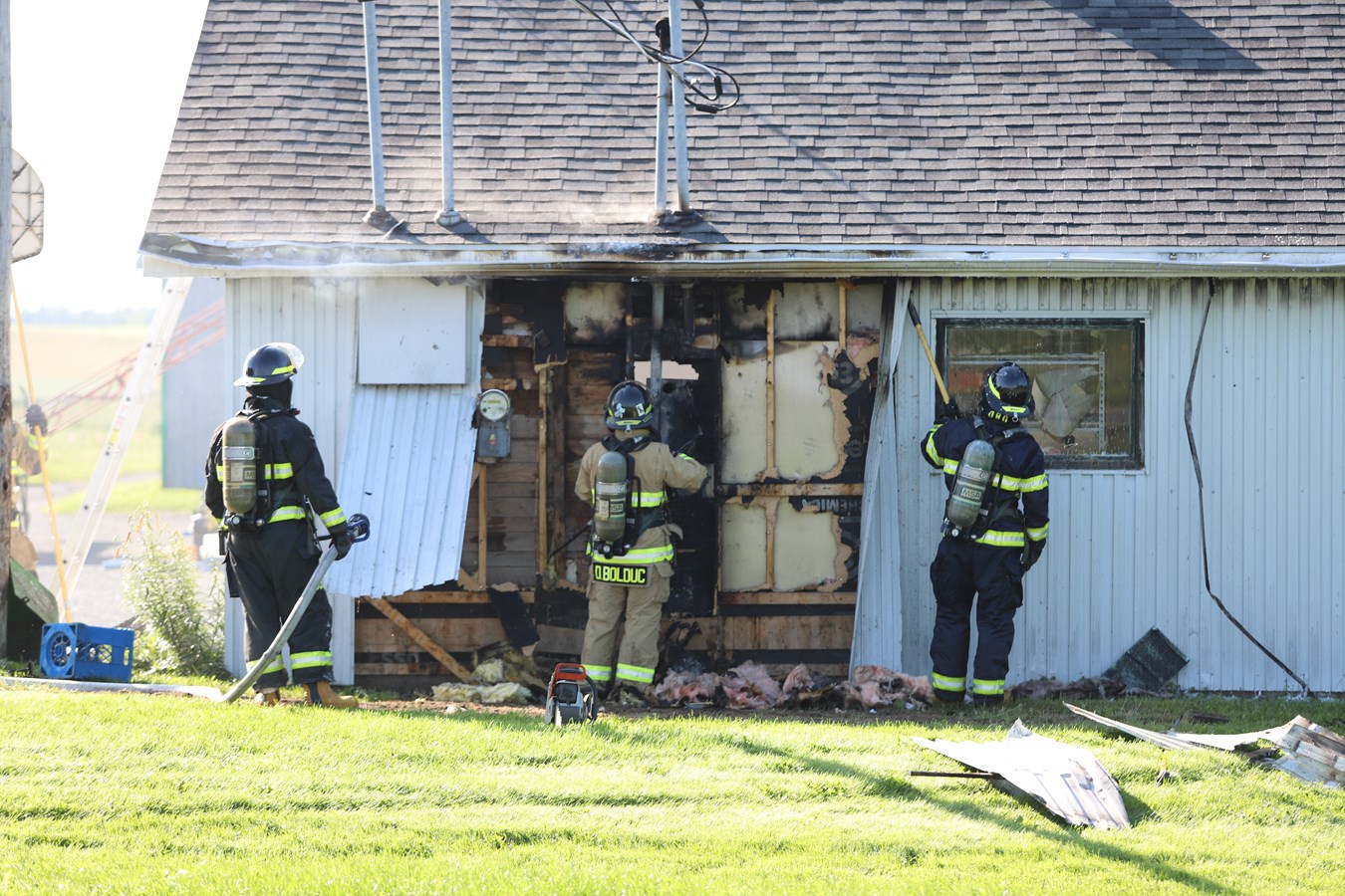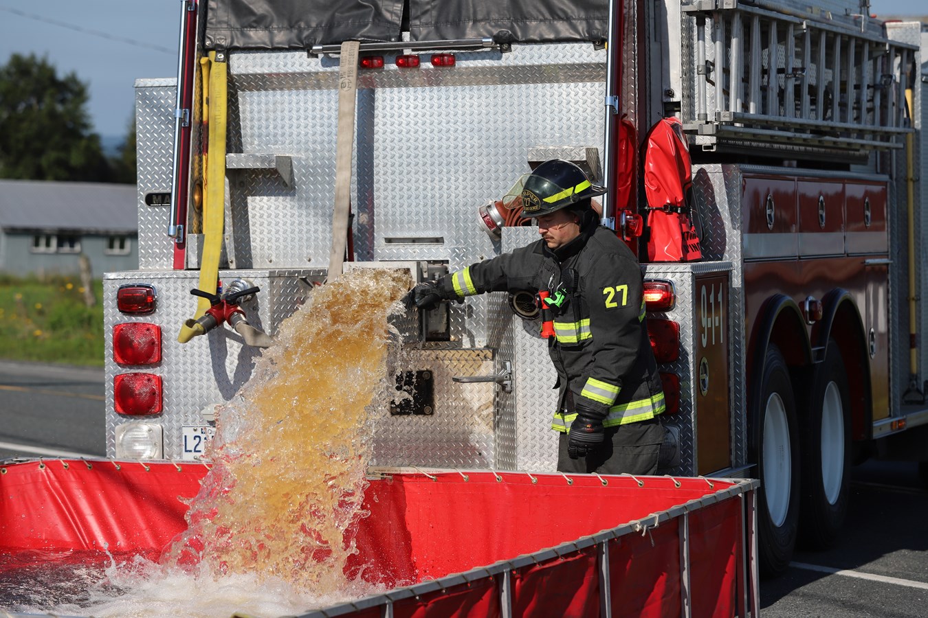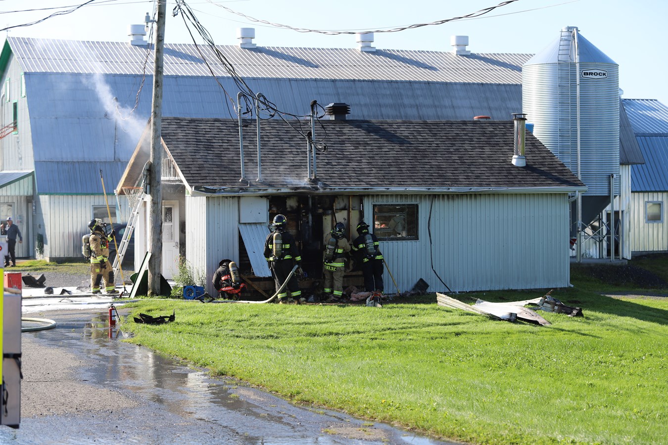 Comme ce secteur rural n'est pas desservi par un réseau de bornes fontaine, les pompiers ont effectué du transport d'eau.