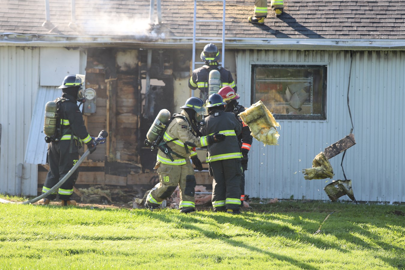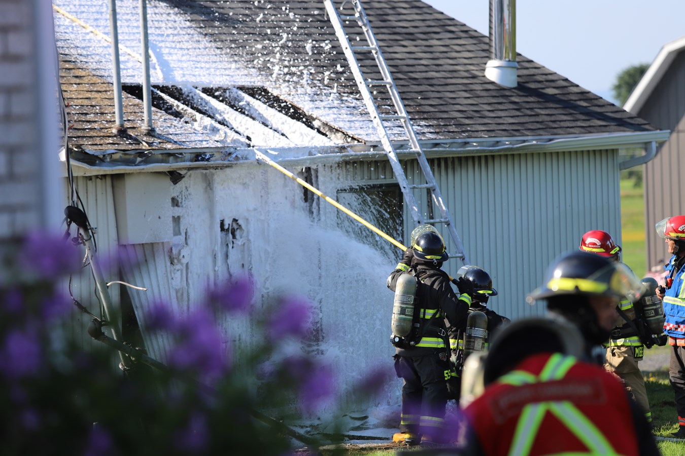 Les pompiers du service incendie de Saint-Georges ont été appelés sur les lieux vers 8 h ce matin. À leur arrivée, de la fumée et des flammes s'élevaient du petit garage.