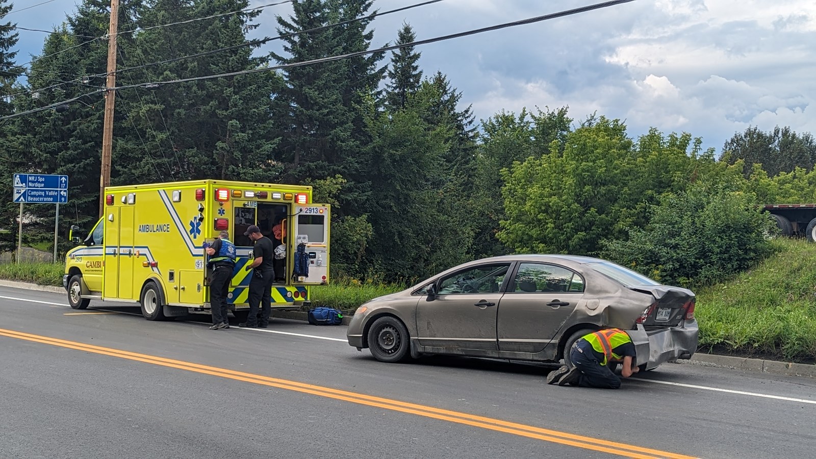 Une femme a été transportée au centre hospitalier pour des douleurs, mais sans blessures graves, a confirmé l'agente Béatrice Dorsainville de la Sûreté du Québec.