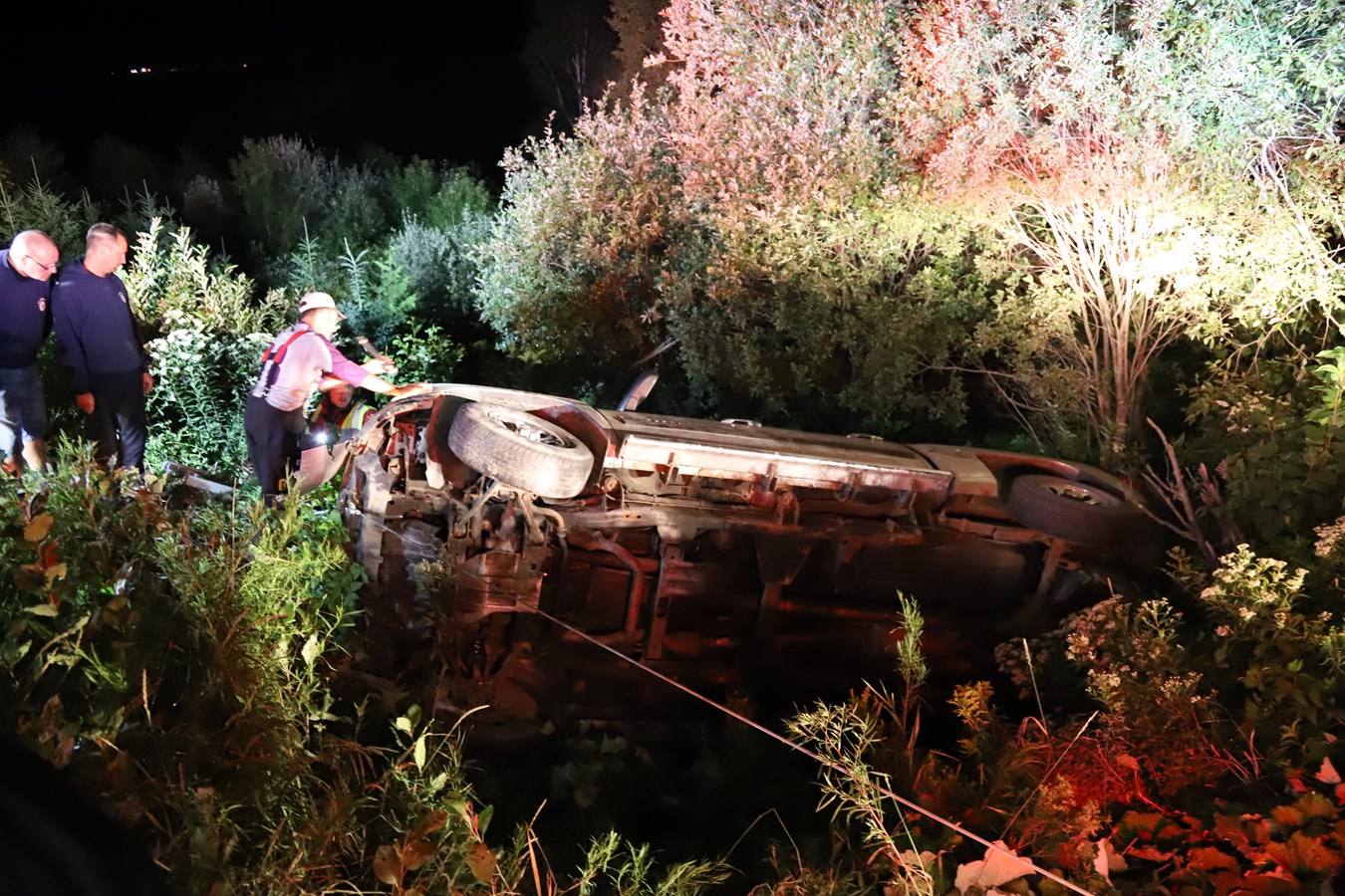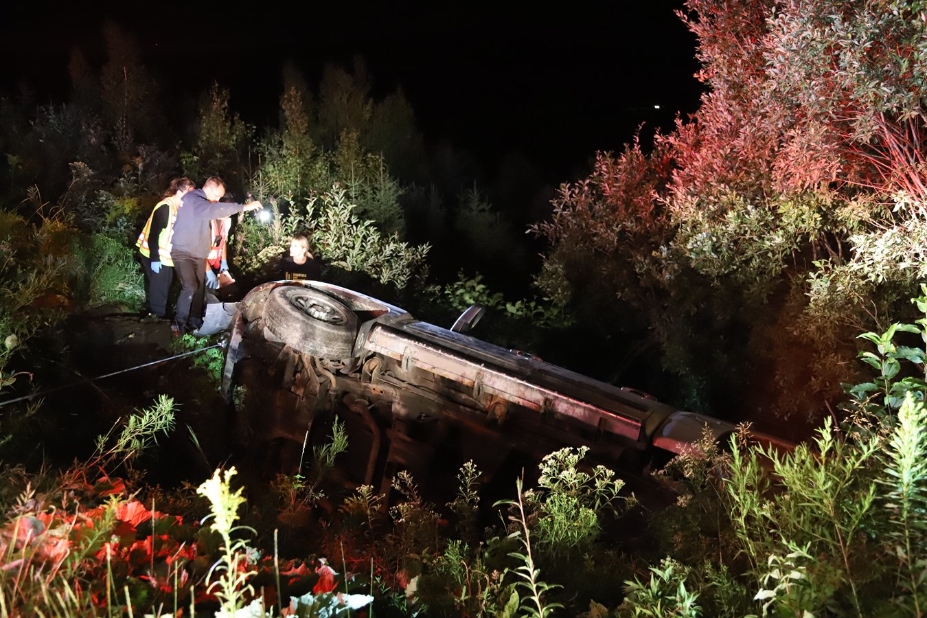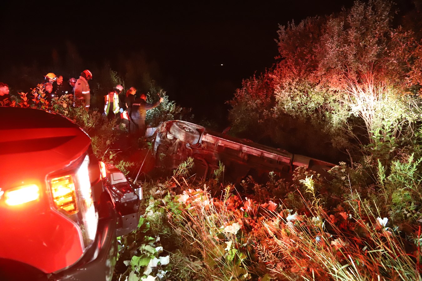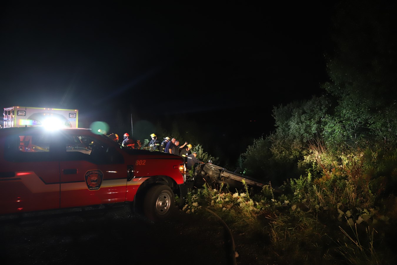 À leur arrivée sur les lieux et au bon endroit, l'équipe de Beauceville a procédé à la désincarcération du véhicule qui était renversé dans le fossé avec le passager qui était déjà décédé. Les pompiers du SSI d'East-Brougthon étaient aussi présents pour assistance.